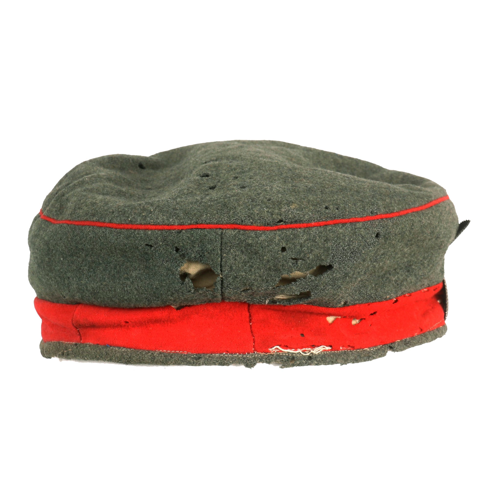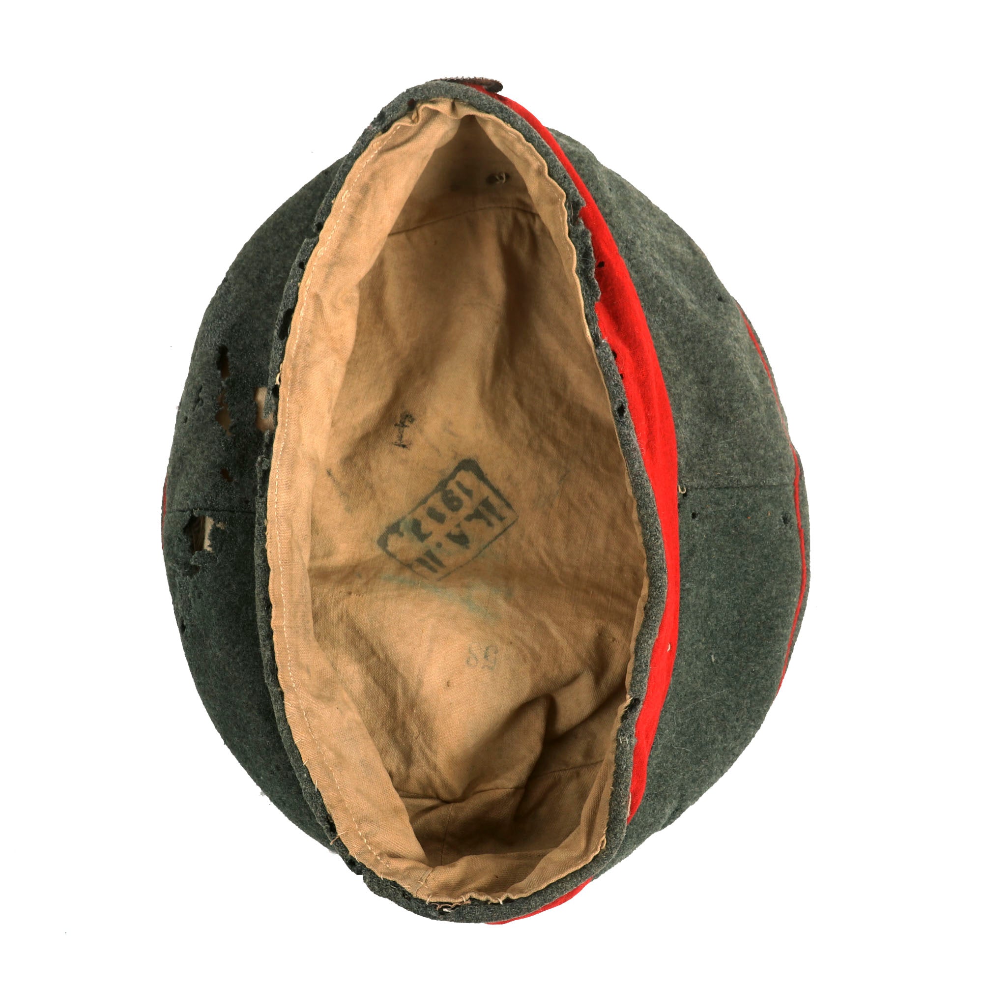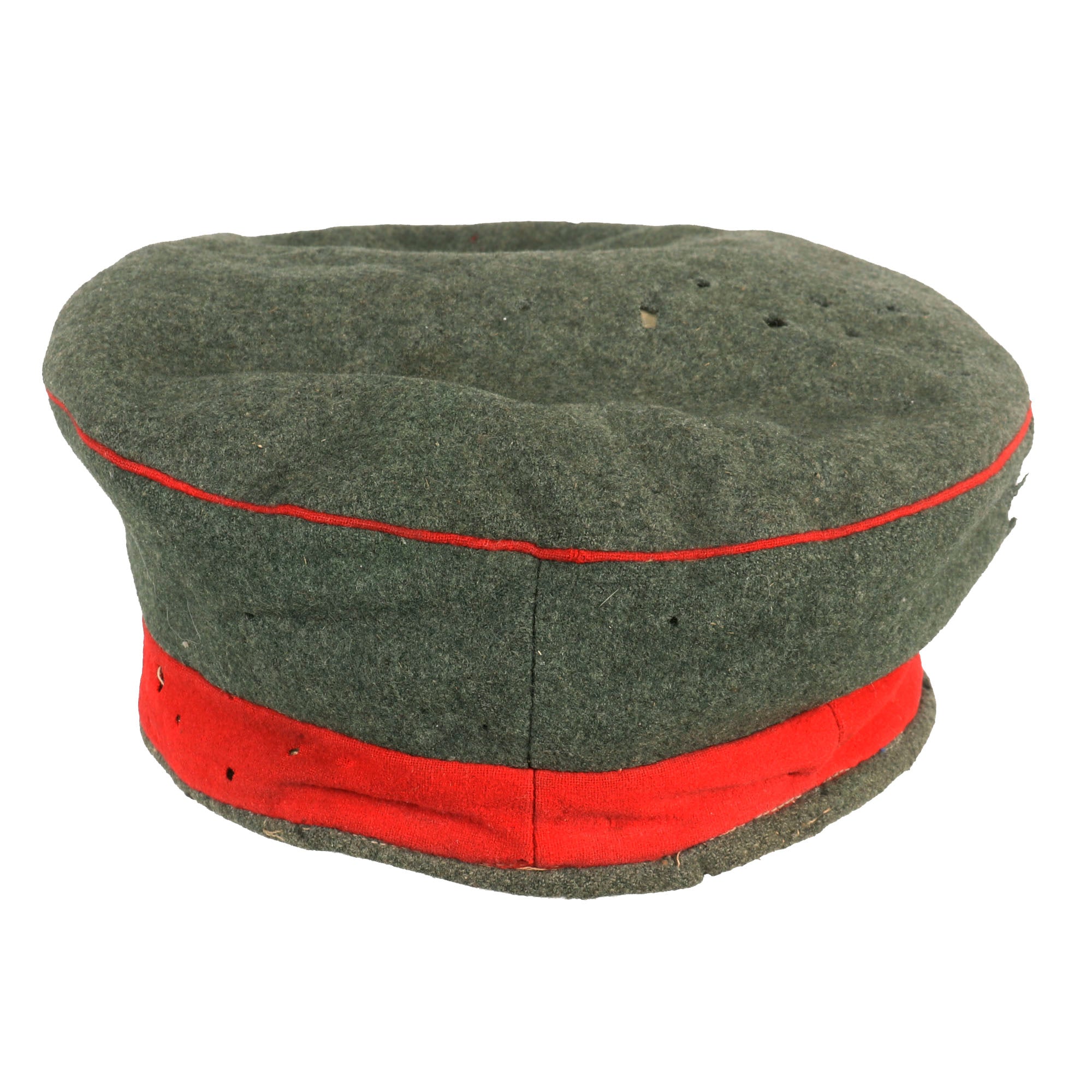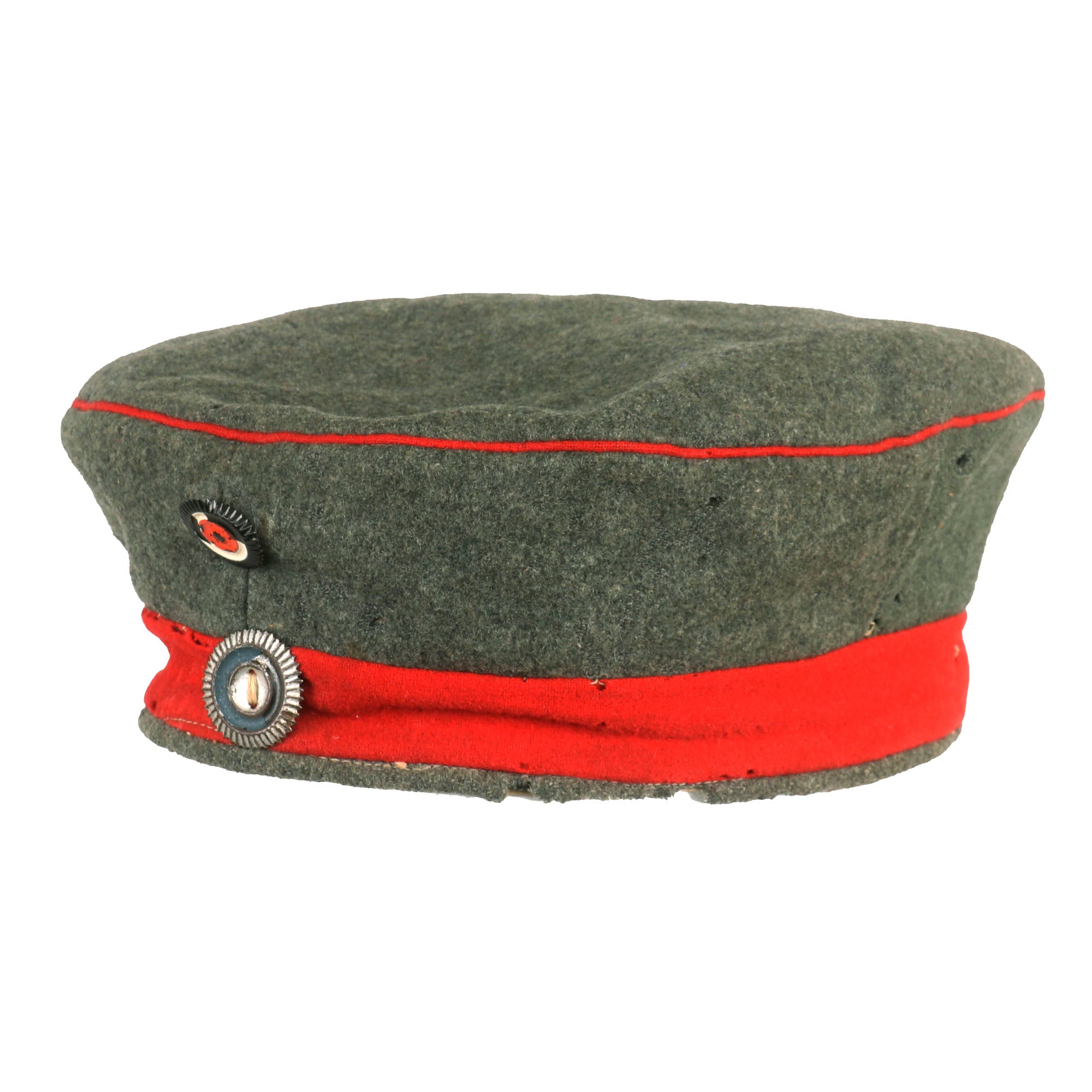 Original Item. Only One Available. For sale is a very rough but characteristic example of an exceedingly rare piece of WWI headgear, a Feldmütze with a cockade for the German state of Bavaria. It is constructed of gray/green Feldgrau (Field Gray) wool with a red wool cap band and red piping along with an interior canvas lining. These are some of the most heavily reproduced caps of the war, and to find an original in any condition with a clear depot stamp is quite a rarity in itself.