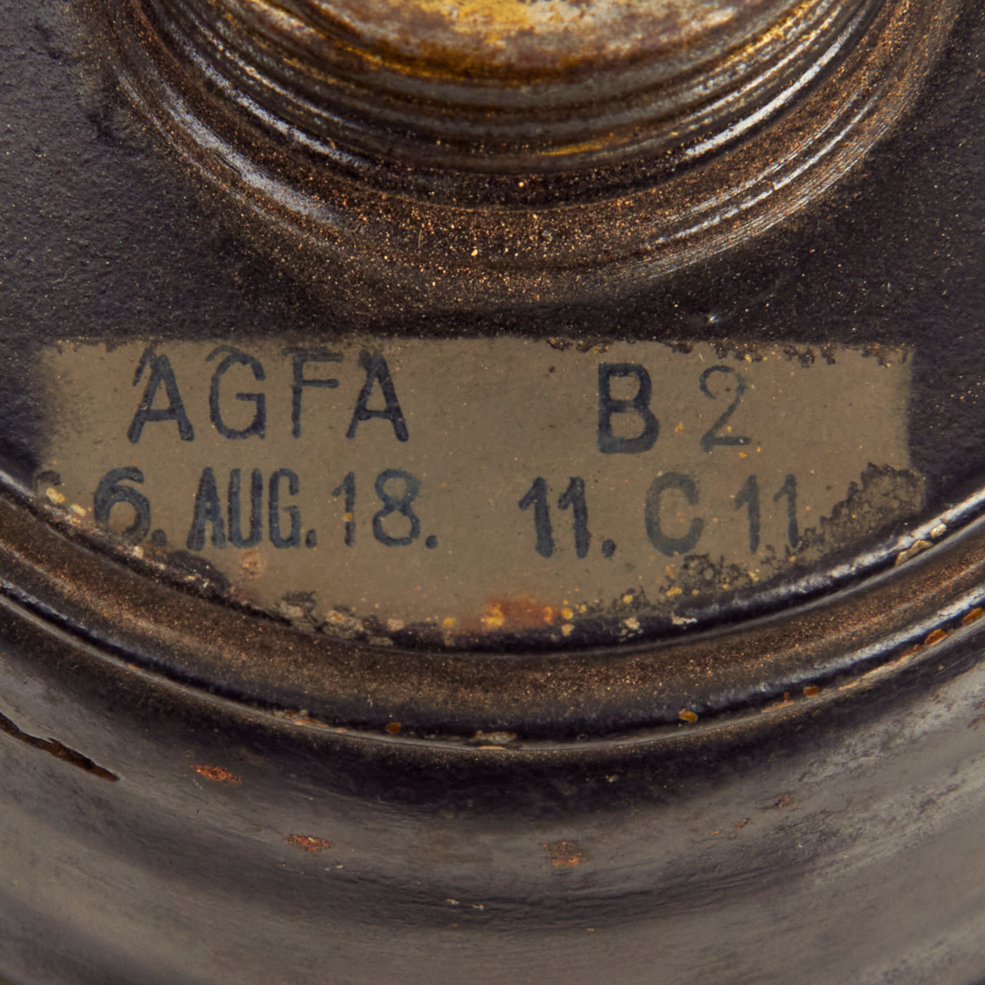Interestingly, the filter appears to have been depot repainted indicating that this may have been a battlefield salvaged gas mask which may have been depot refitted for reissue. The straps are different from the usual issue versions we have seen, and may be depot made examples as well. Inside the spare lens container is an extra lens housing.