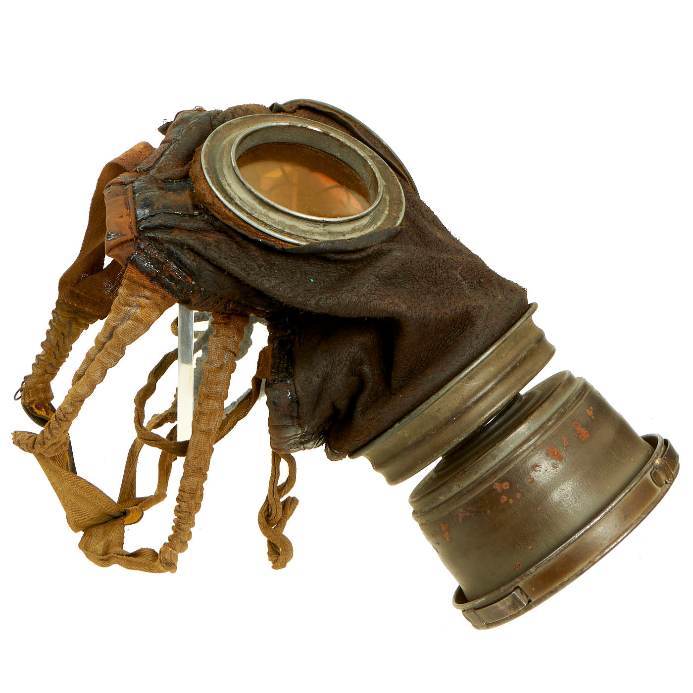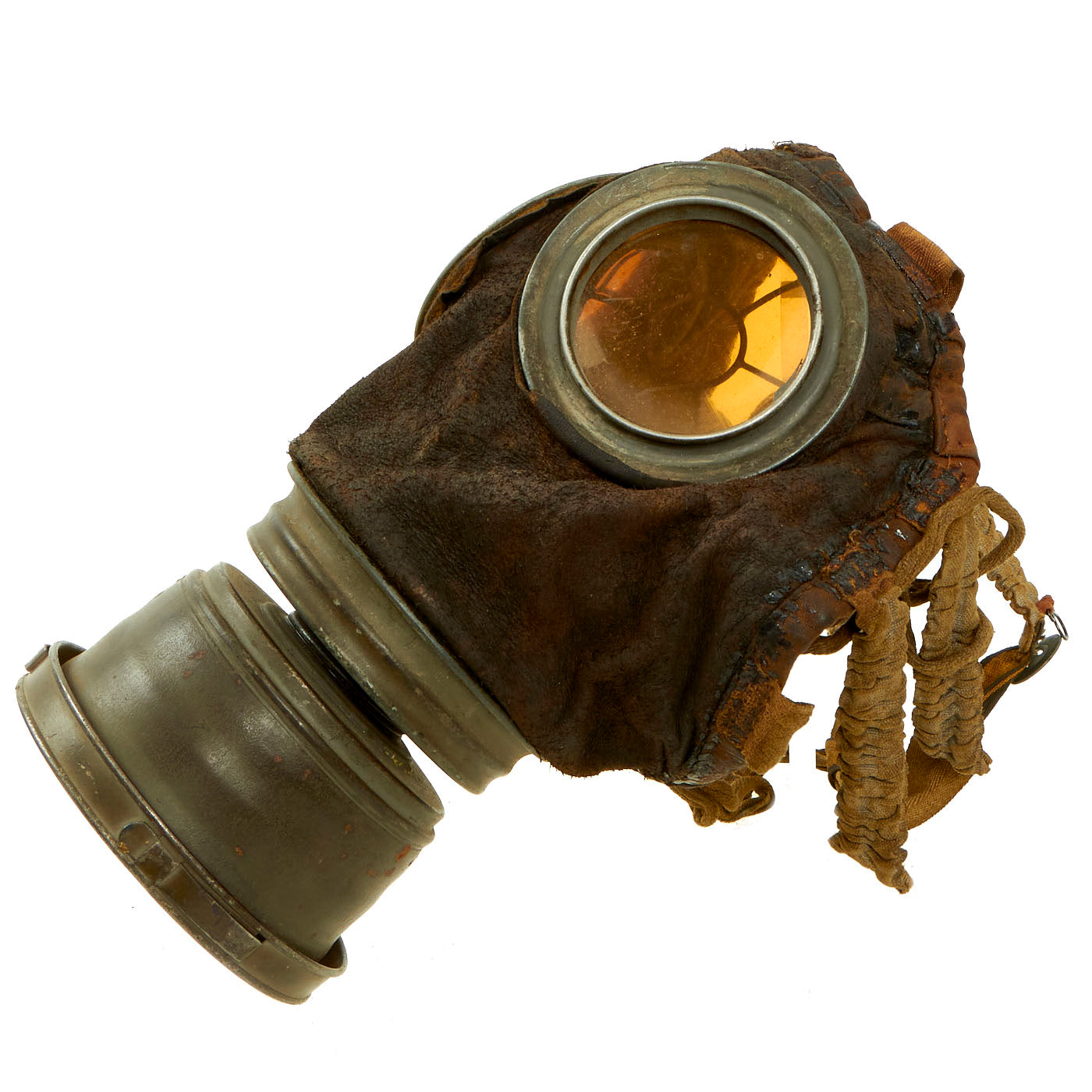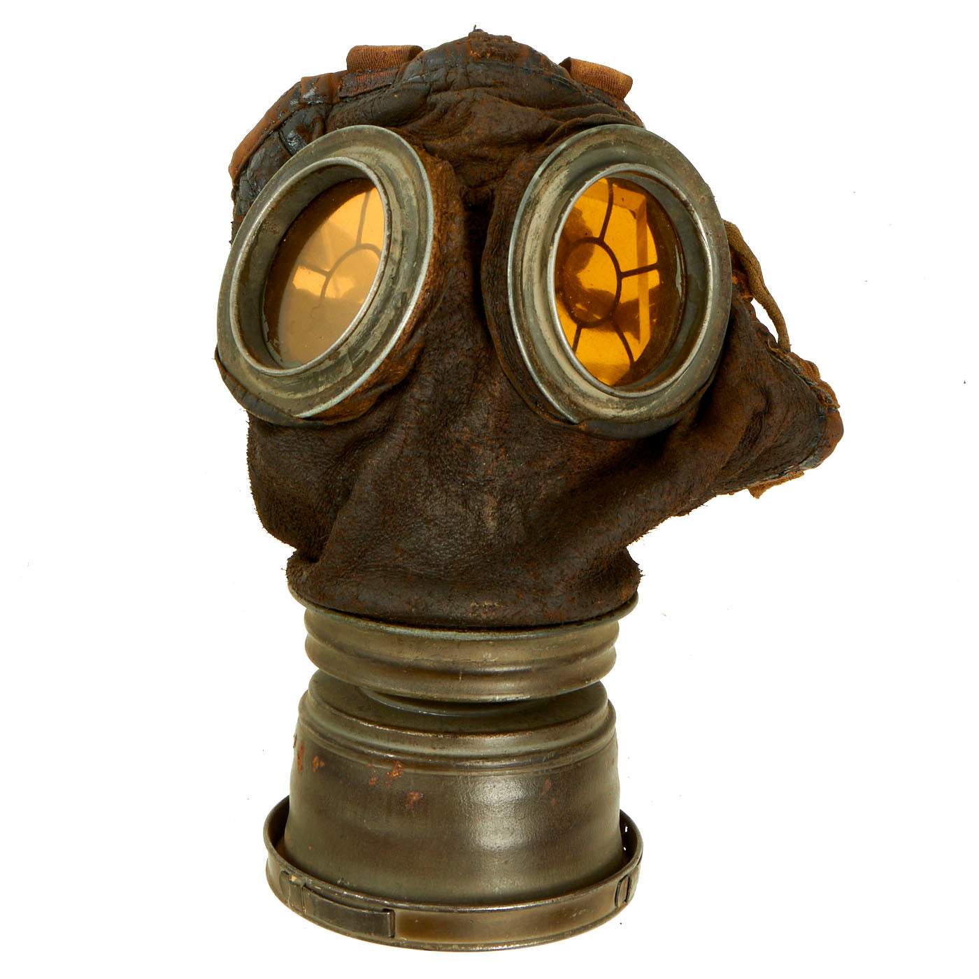 Original Item: Only One Available. This is a very good condition, totally genuine World War One issue German gas mask. This model of Gasschutzmaske (Gas Protection Mask) was introduced in 1917, and was known as the Ledermaske due to its leather body construction. The leather of this mask is still quite soft, with a great finish on the inside. There are some ink stamped markings on the gasket, however we are not quite able to make them out.