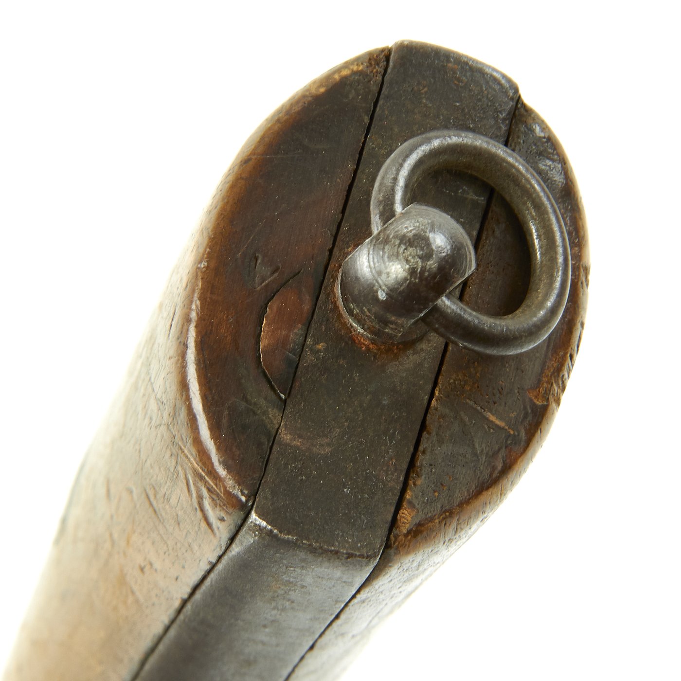 Metal finish is nice, with some areas of oxidation and light surface pitting, as shown. The wood grips have original finish and a good tight fit with some normal handling marks. Lanyard ring is still present (rare). Mechanically tight and dry fires well, with an intact functional ejector.