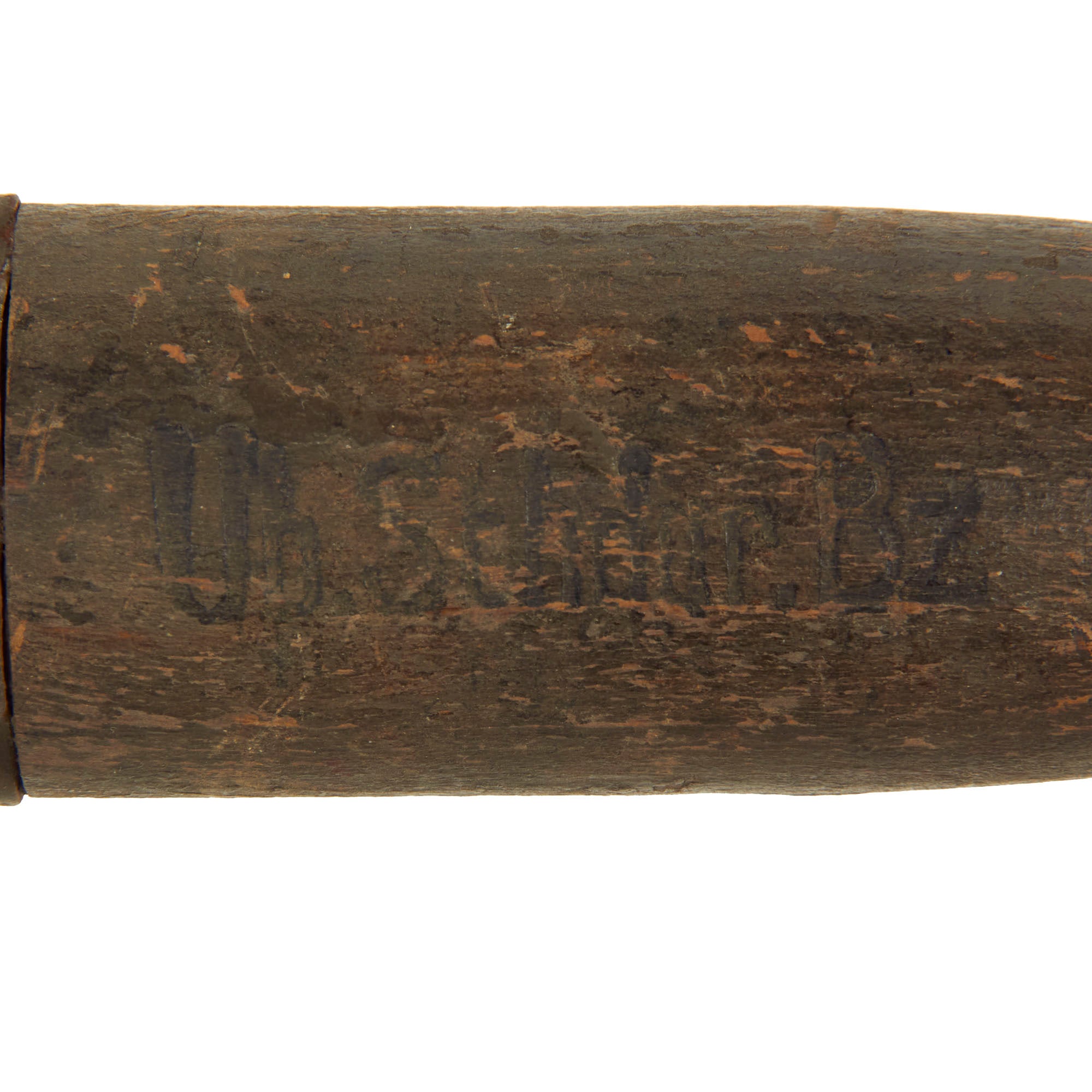 Original Item: Only One Available. This is an extremely rare excellent example of a practice training M1916, M16, or Stielhandgranate 16 ("stalk/stick hand grenade") German Stick Grenade, often called a "potato masher". They are officially called the Übung Stielhandgranate, which literally means Exercise Stick Hand Grenade. This grenade is completely inert as specified by the BATF, and cannot be converted to an explosive device. It stands 14 inches tall with a 4 1/2 inch long inert explosive head. These are exceptionally rare and far more difficult to find than the usual WWI versions.