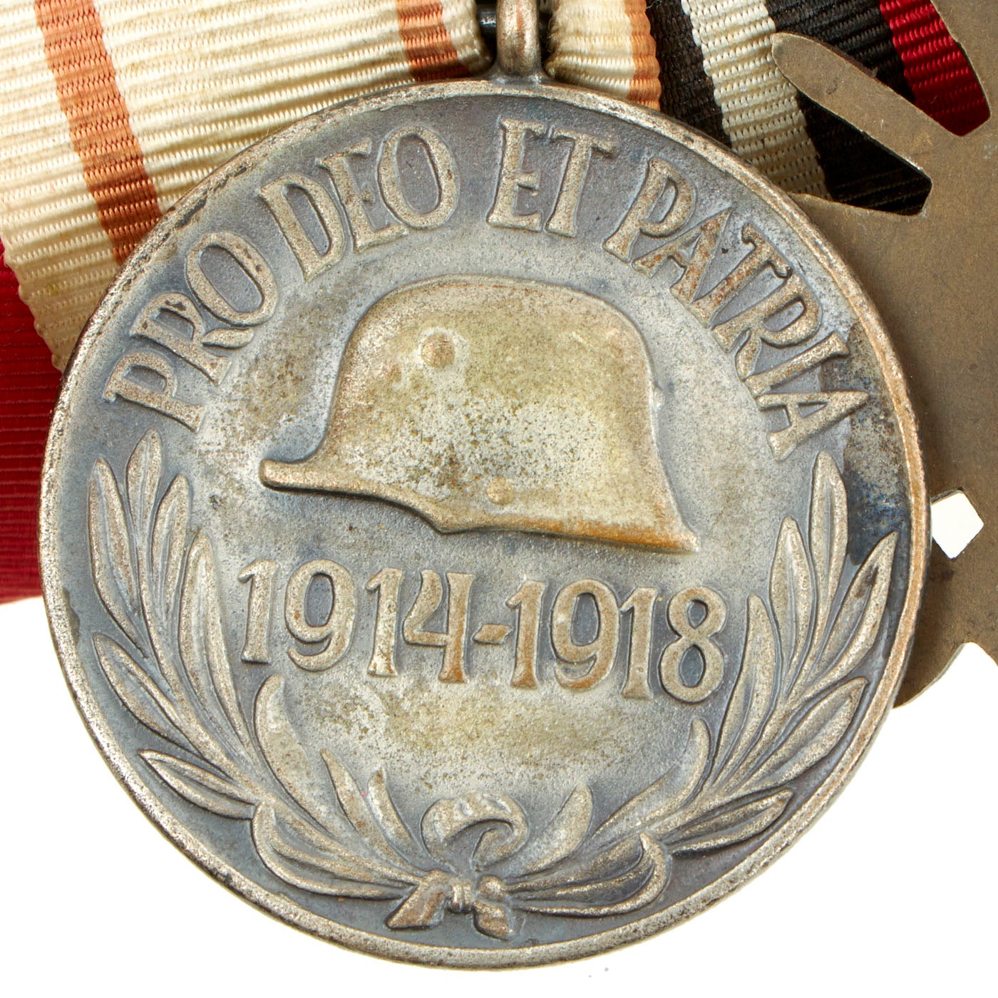 -1914/18 Austro-Hungarian Combatant's Commemorative Service Medal: After the dissolution of the Austro-Hungarian Empire, both parts of the former dual monarchy created different commemorative medals for their veterans. The Hungarian War Commemorative Medal was instituted in 1929, three years prior to Austria creating a similar medal. There were two classes of this medal. The one shown here is the combatant’s version “with swords and helmet.” Actually, the combatant’s version was awarded to all active military, regardless of where they served, as well as veterans of Hungary’s allies. The non-combatants version was the same, but without the swords behind the shield or the helmet on the back. Those went to next-of-kin and civilian officials.