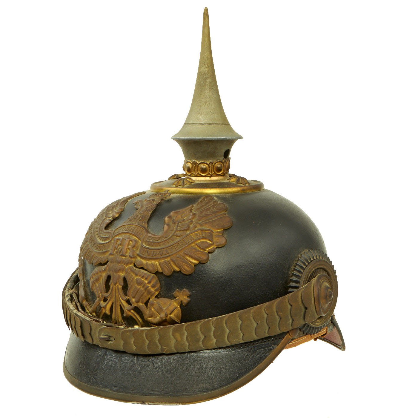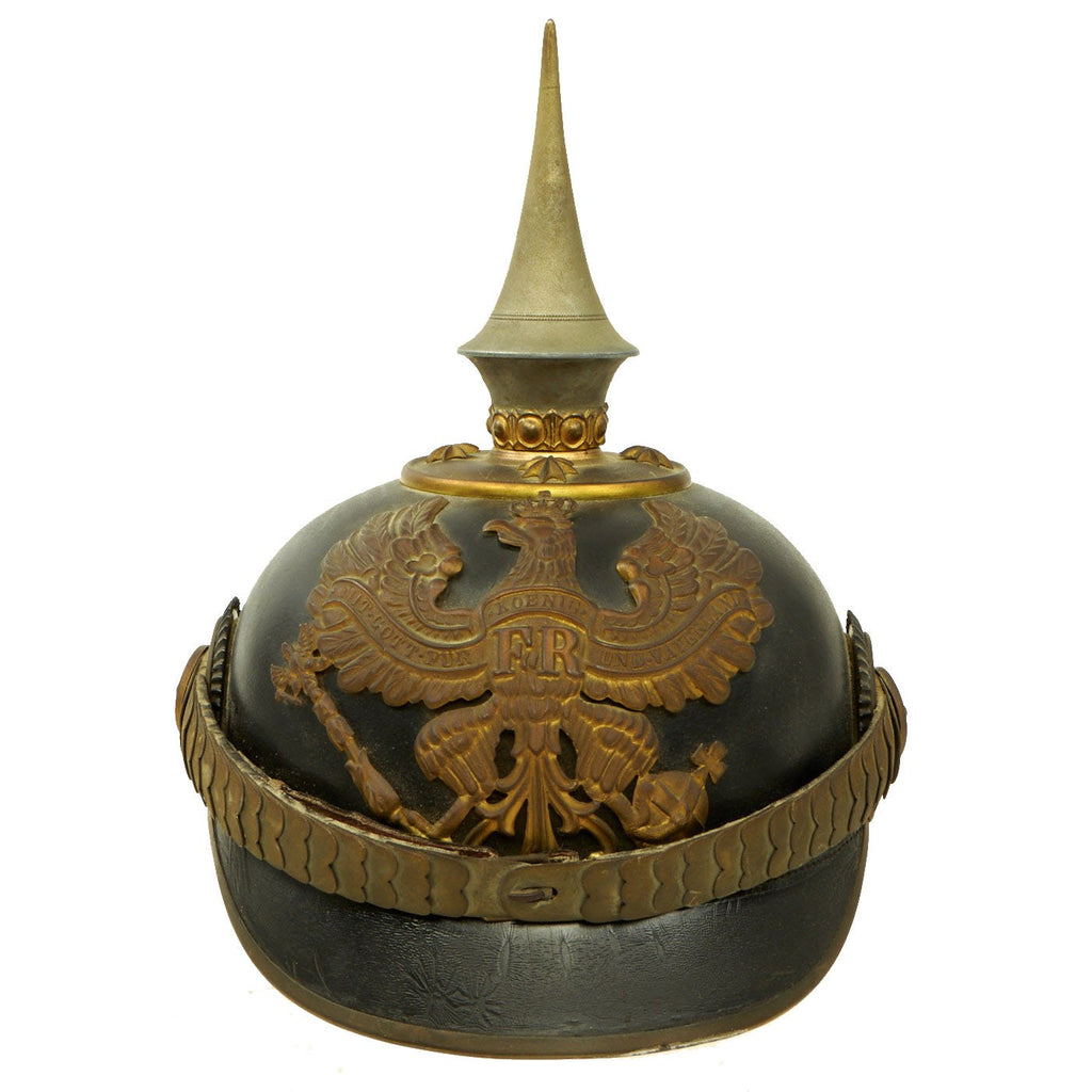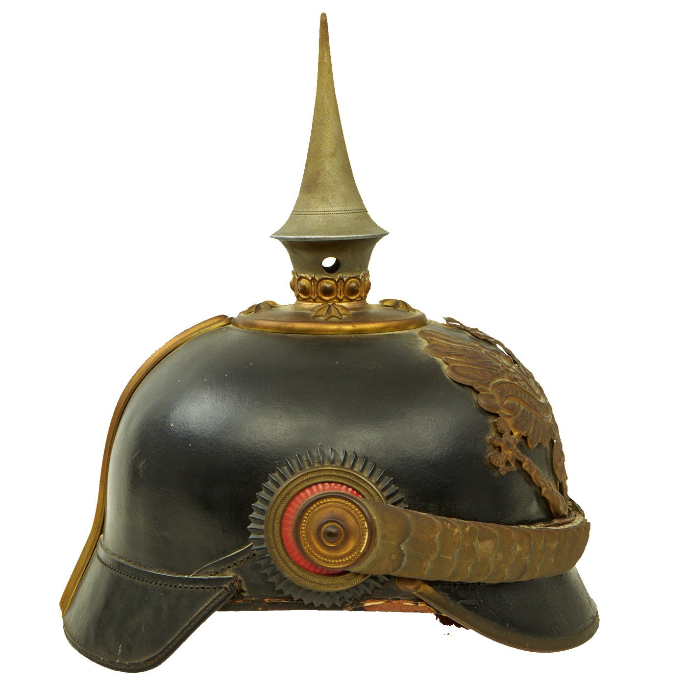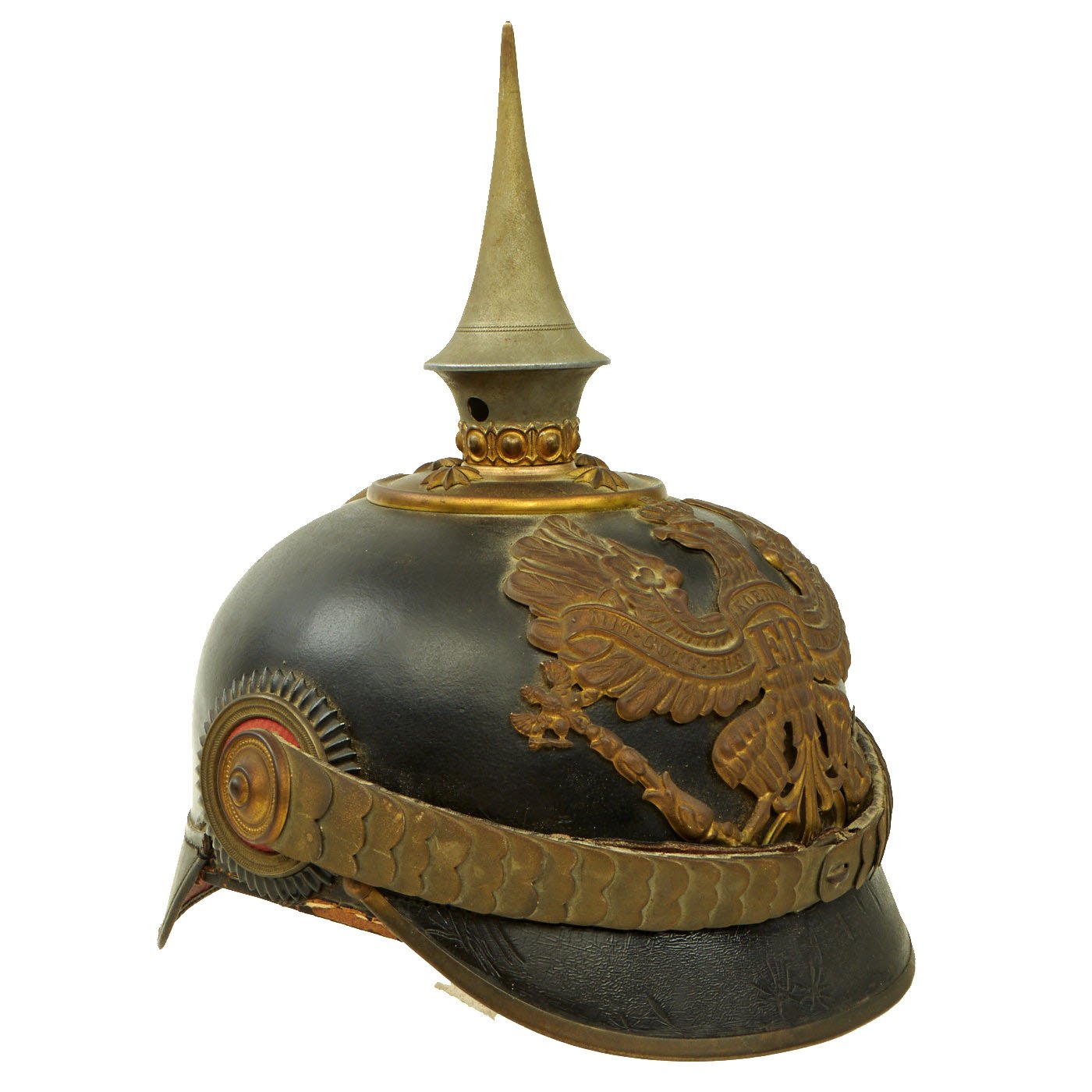 Original Item: Only One Available. This is a great condition, smart-looking high-end officer pickelhaube from a Prussian Infantry Regiment, which was most likely used during World War One. The Pickelhaube of commissioned officers holding a rank from Lieutenant to Colonel are all identical in features, but not quality. The quality of helmets within these ranks depended entirely on how much the individual wished to spend. A lowly Lieutenant's helmet may be of much higher quality than one worn by a Colonel. As expected, officer helmets were of a much higher quality than the issued version and utilized the "squared finger" liners until 1880, when the internal leather sweatband and silk skull-cap came into use.