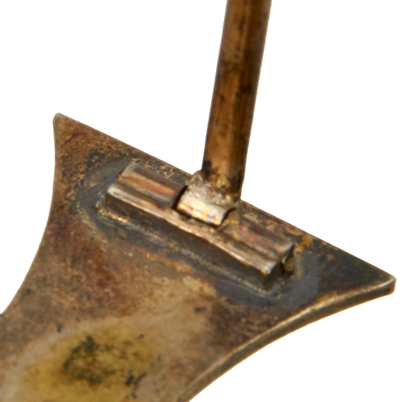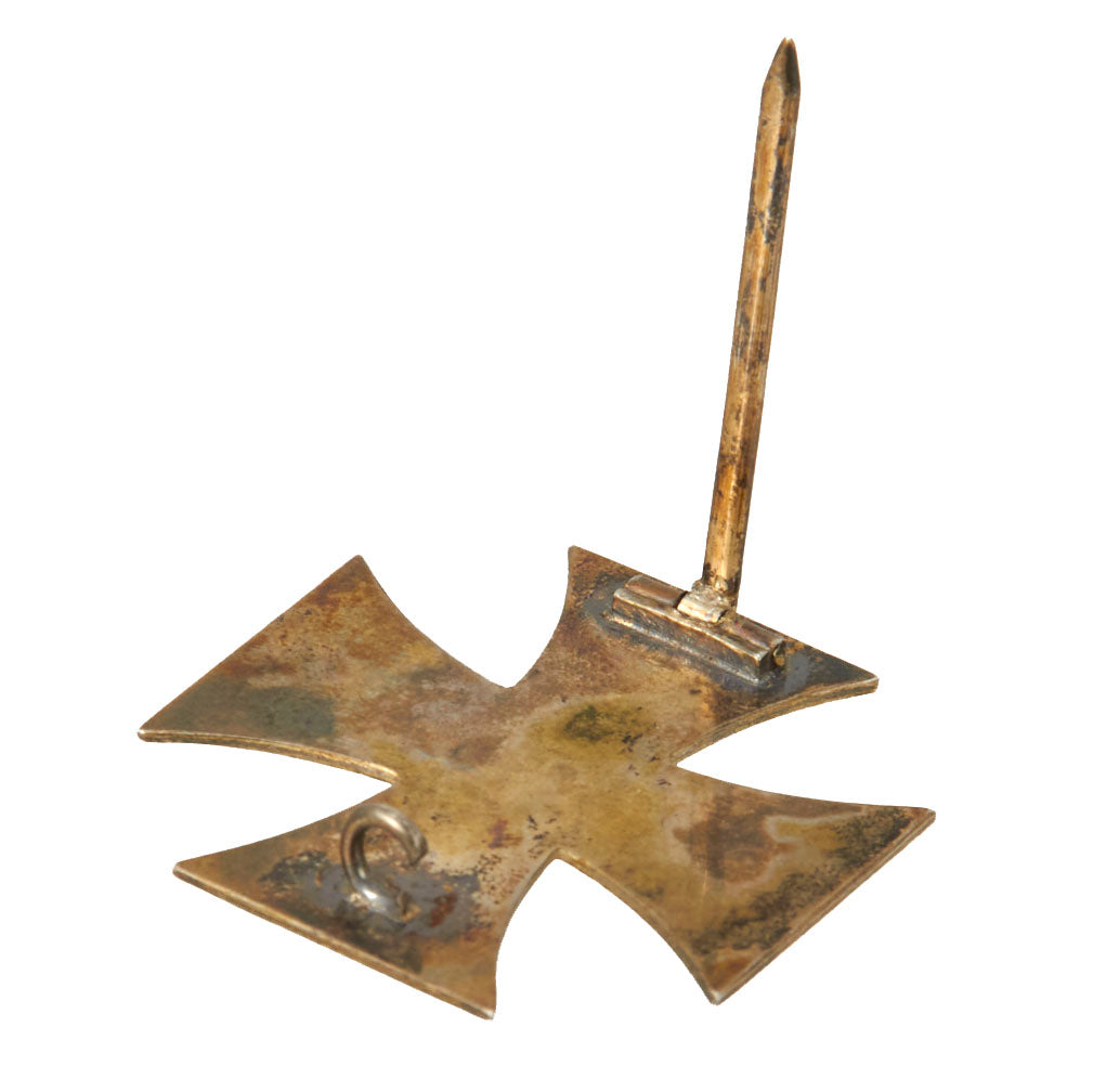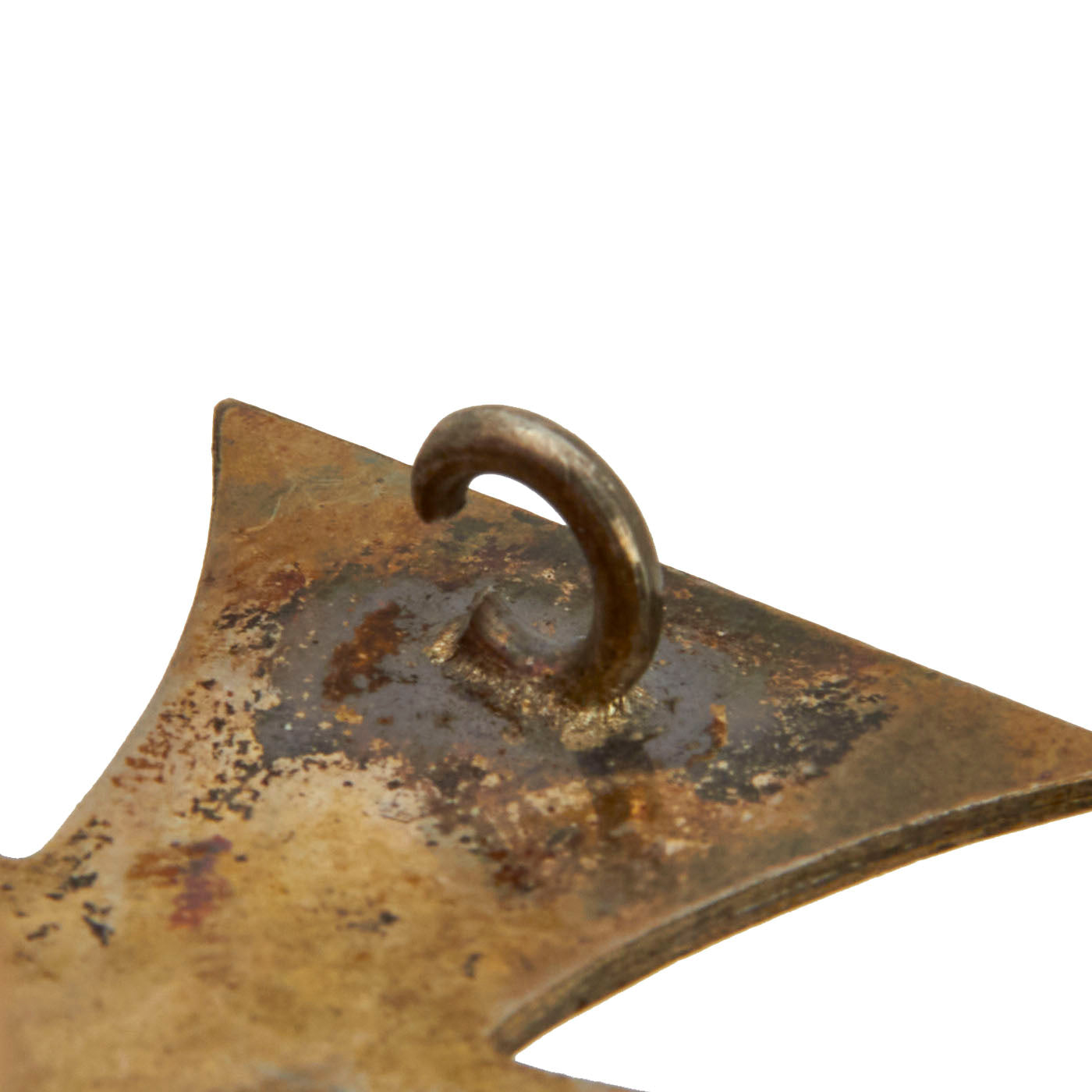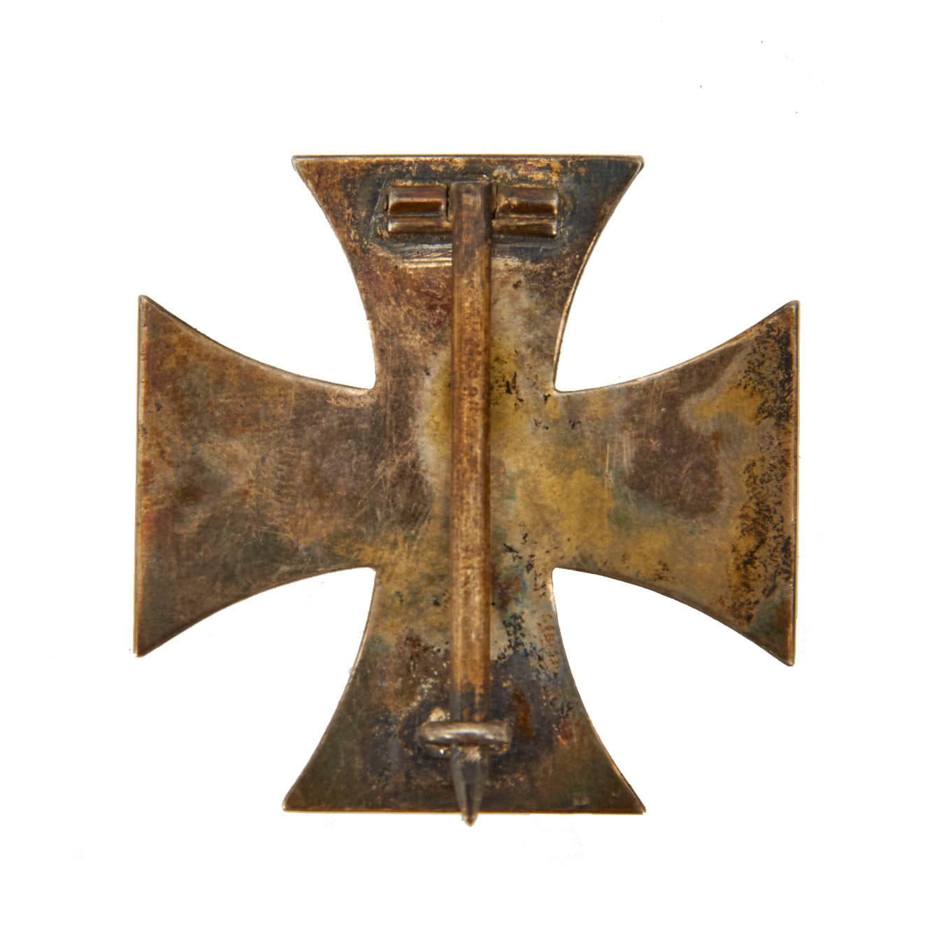 The medal is in excellent condition. The silver plate is retained quite well, and is still quite shiny on the front side, especially on the crenulated border. The black paint on the central cross is also excellent, with no flaking or oxidation we can see. There is a lovely light oxidized patina on the silver areas, showing it is indeed genuine silver.