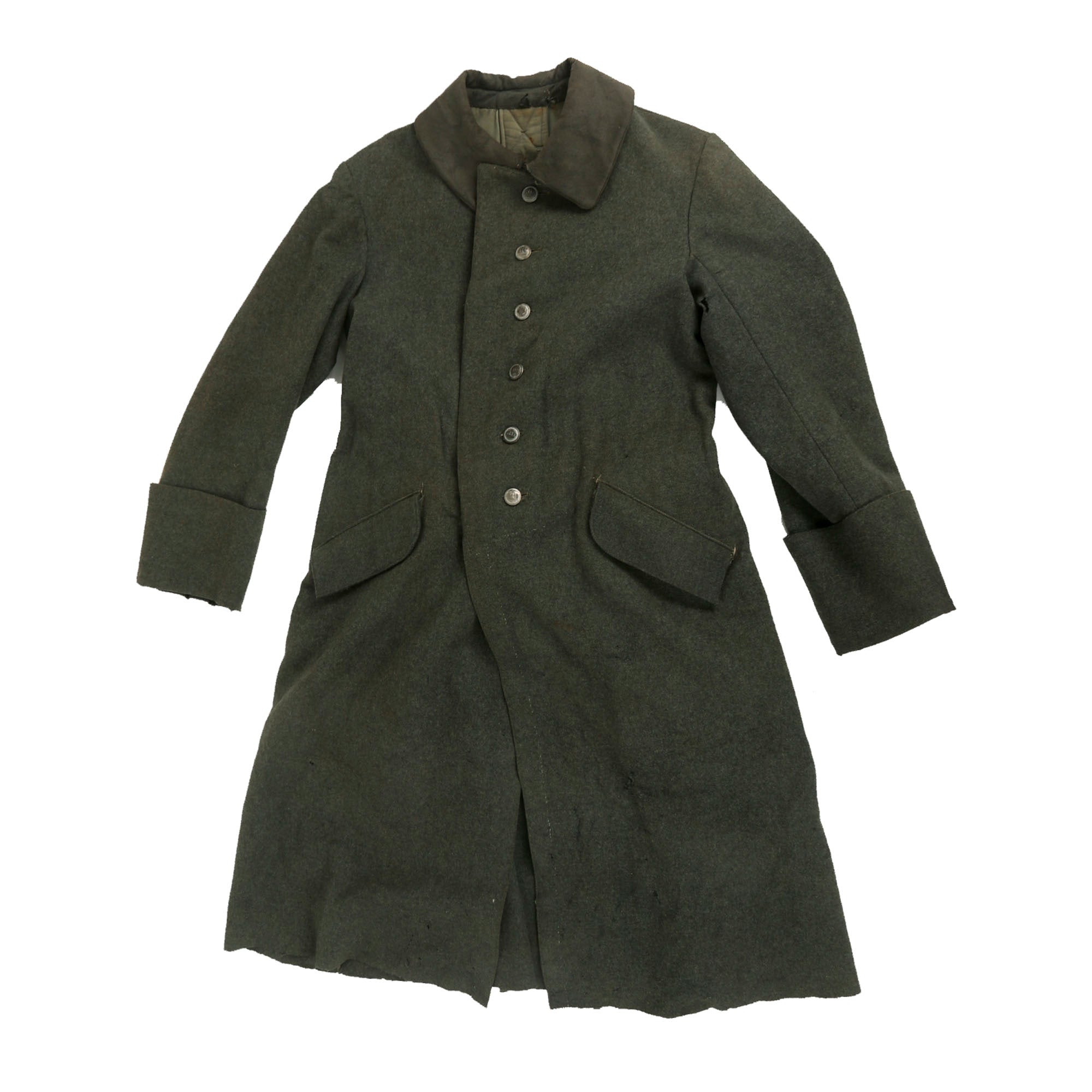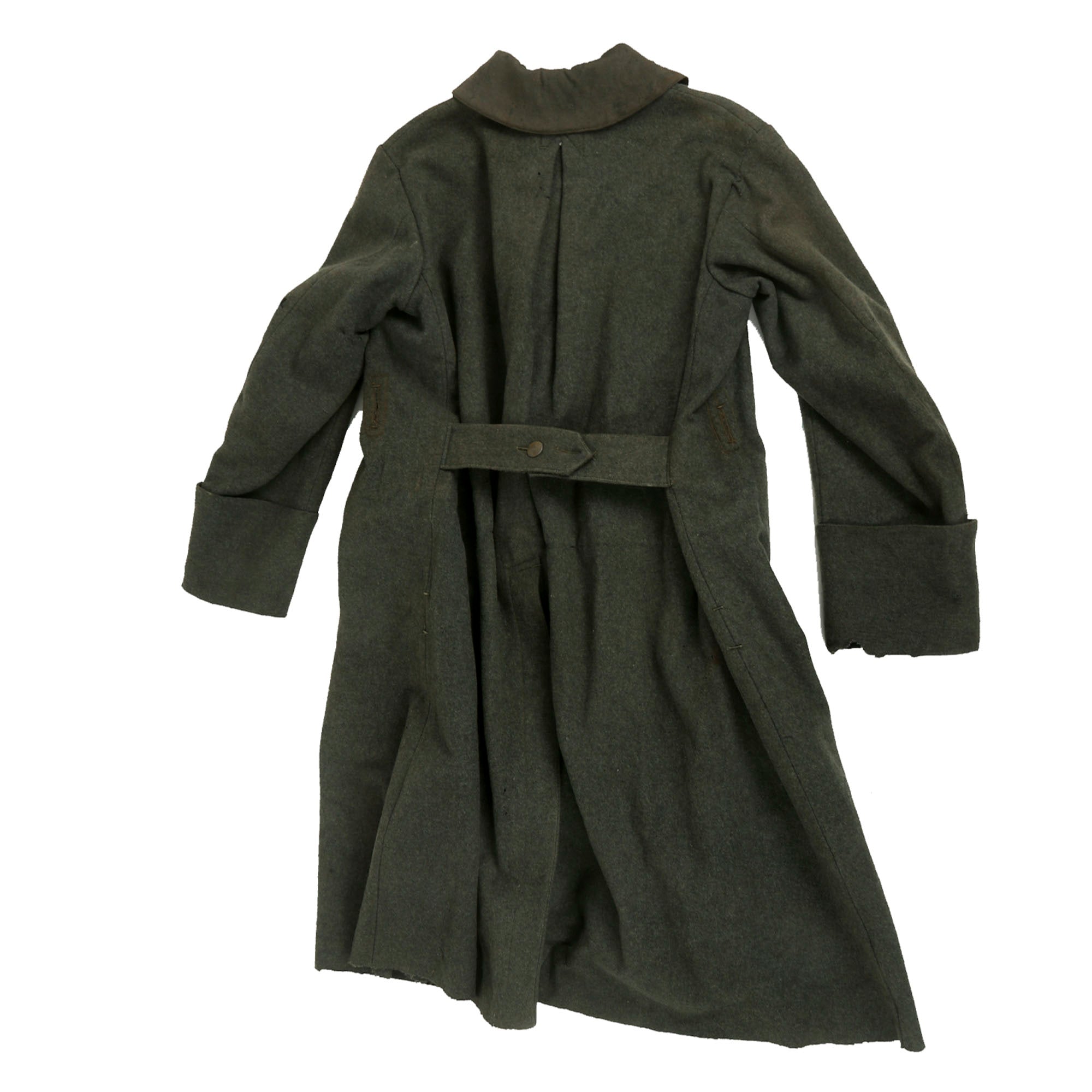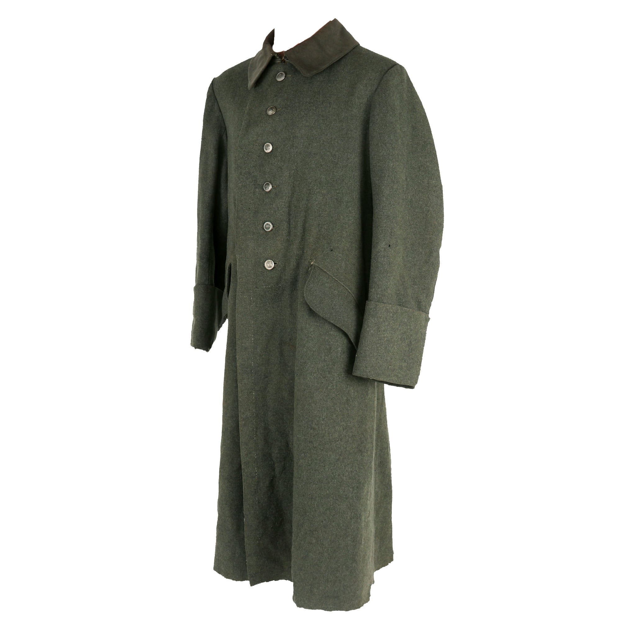 Original Item: Only One Available. This is a very nice service used example of a Prussian Model 1915 EM/NCO Greatcoat in Feldgrau. We very rarely get in examples of EM/NCO uniforms from Imperial Germany, and this example has a great "salty" look that is impossible to duplicate.