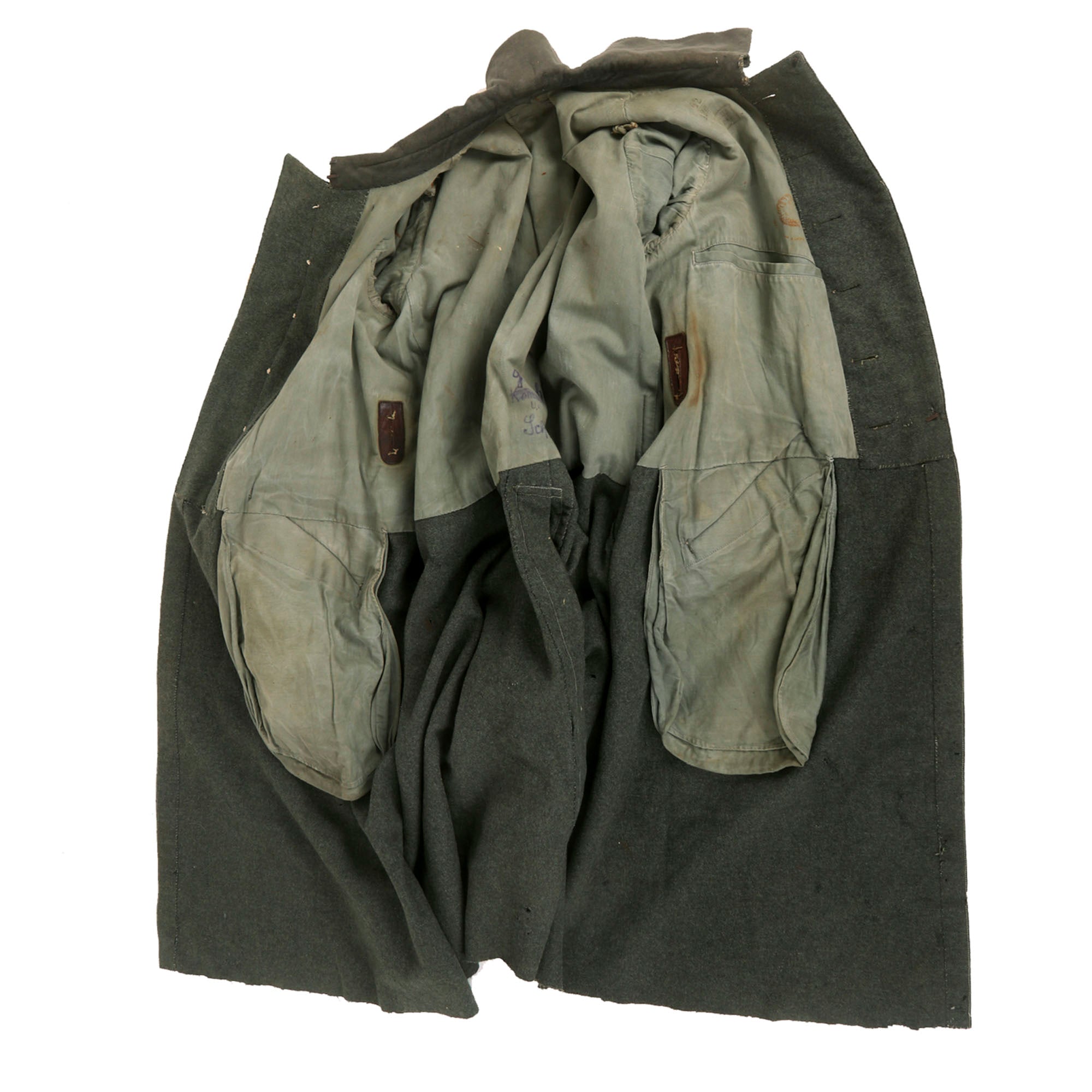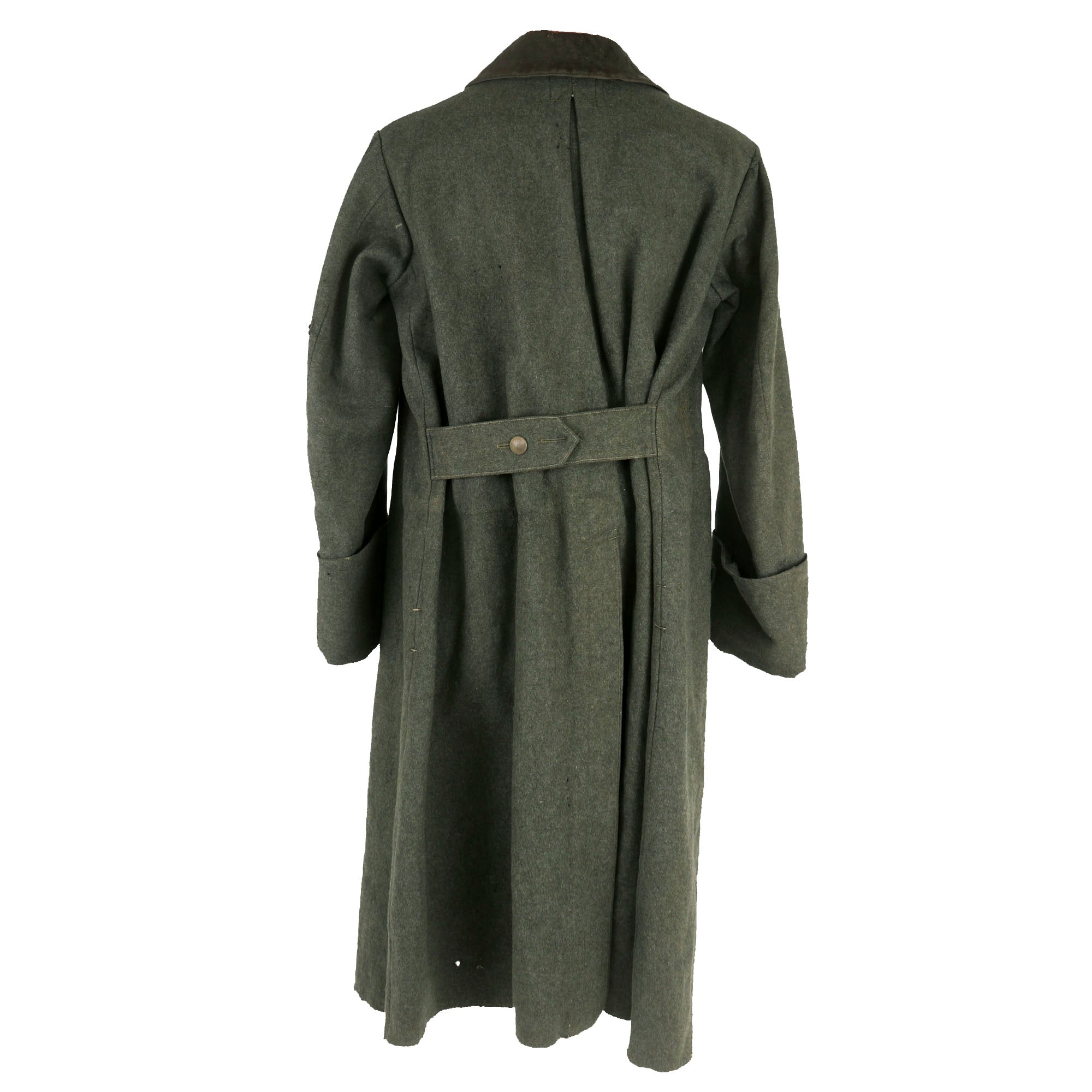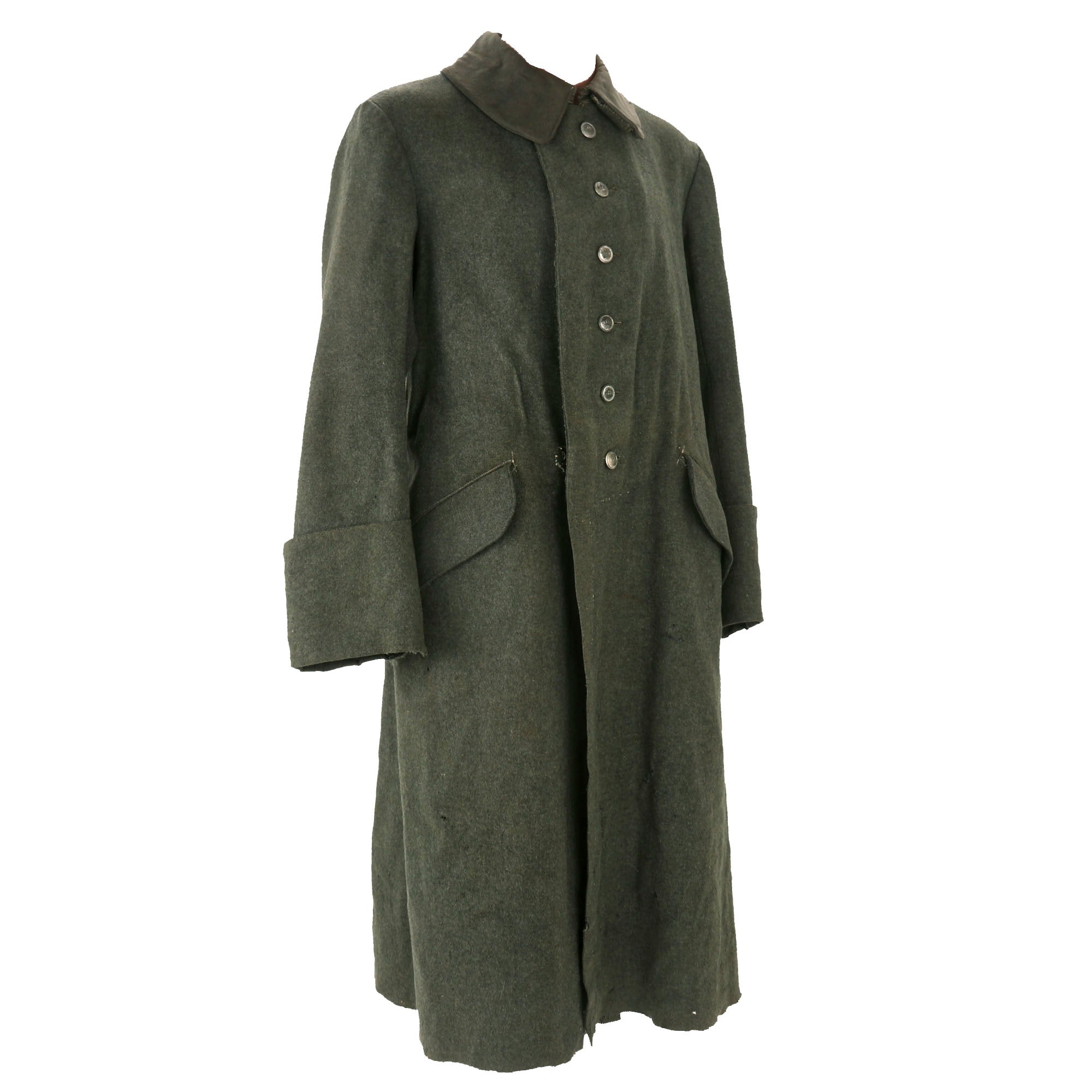 Original Item: Only One Available. This is a very nice service used example of a Prussian Model 1915 EM/NCO Greatcoat in Feldgrau. We very rarely get in examples of EM/NCO uniforms from Imperial Germany, and this example has a great "salty" look that is impossible to duplicate.
