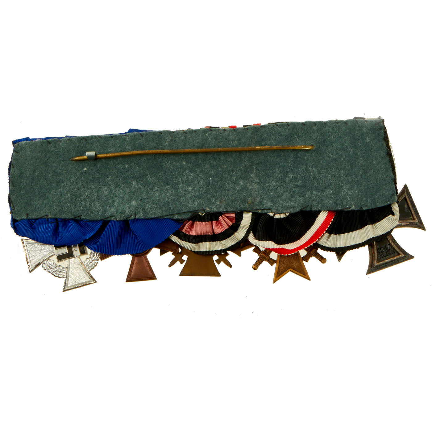 Original Imperial German WWI to WWII Era Medal Bar Featuring EKII, Hindenburg Cross and WWII 2nd Class 25 Year Service Award - 5 Awards