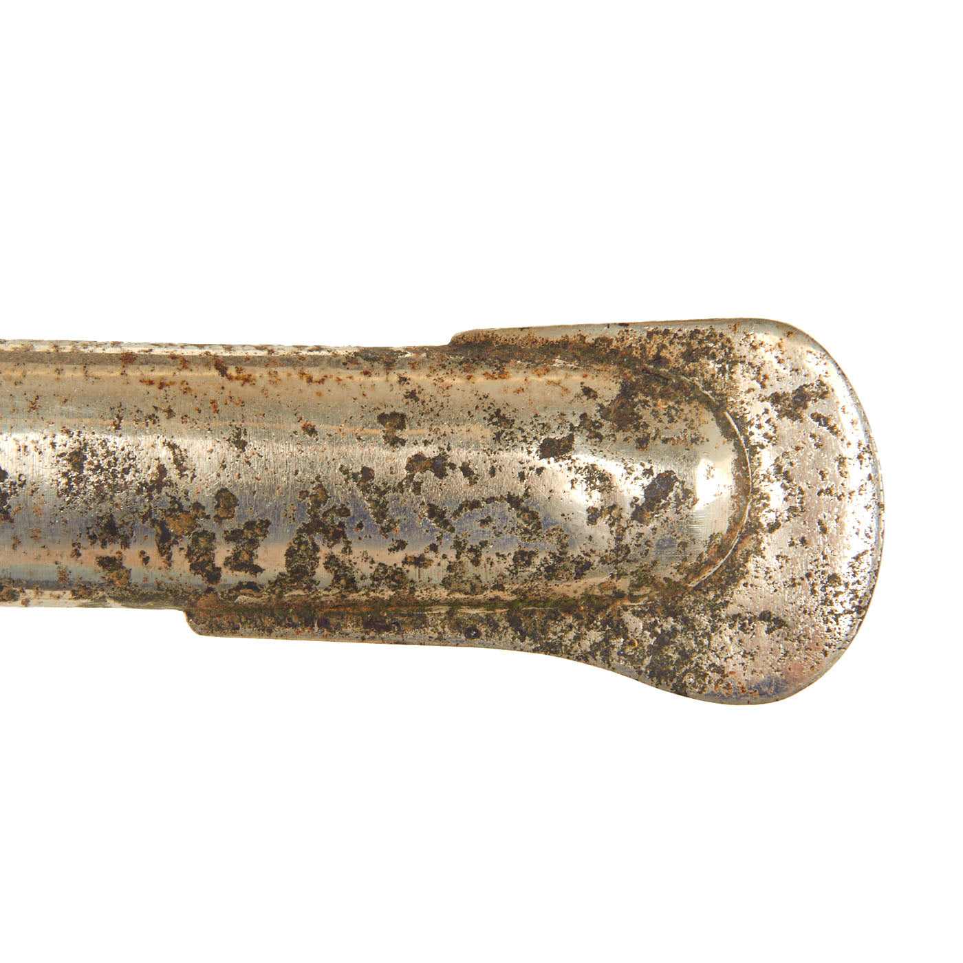 The sword comes with the original all steel scabbard, which is in good condition. The nickel plating is retained throughout but there are areas where the plating has bubbled up and is flaking.