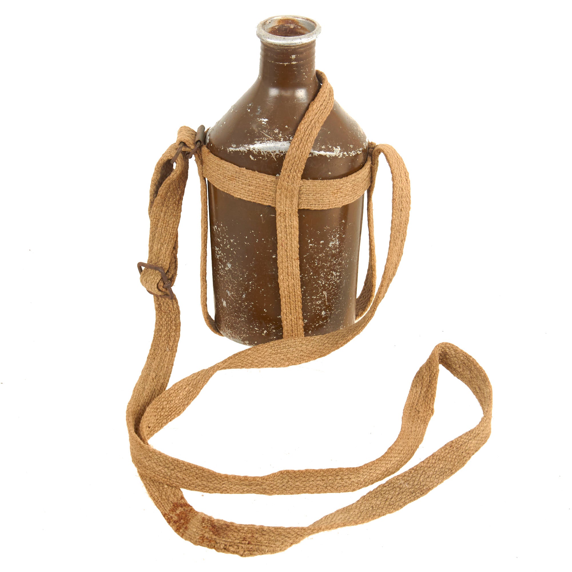 - Canteens; WWI era and Naval Landing Forces: This is a nice example of an Original WWI Era Japanese Issue Canteen. This is the Pattern 1905 Canteen, with the updated canvas suspension harness which dates from the WWI era. This example is in wonderful condition. The other canteen is a WWII Special Naval Landing Forces Canteen. Enlisted pattern canteen with a light khaki canvas cover and a screw-off aluminum cap. Complete with its adjustable canvas shoulder strap. The coth cover has Japanese markings.