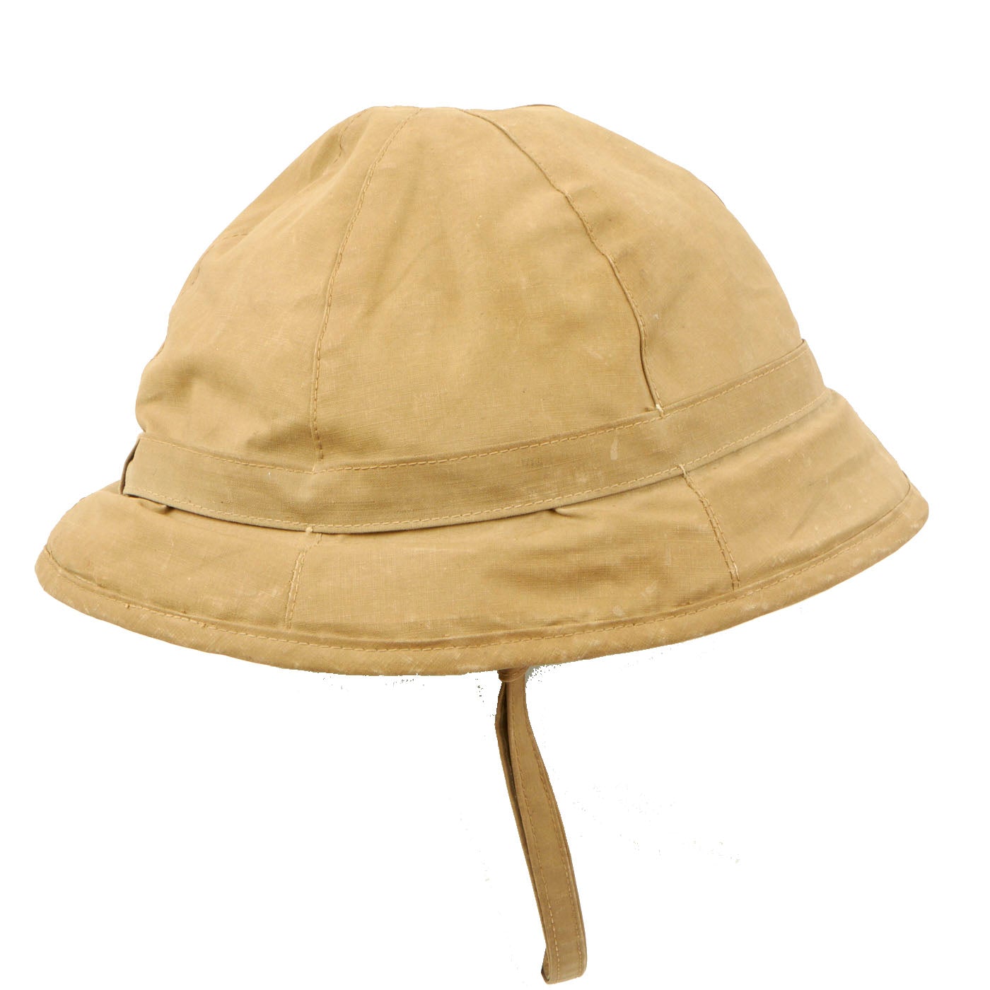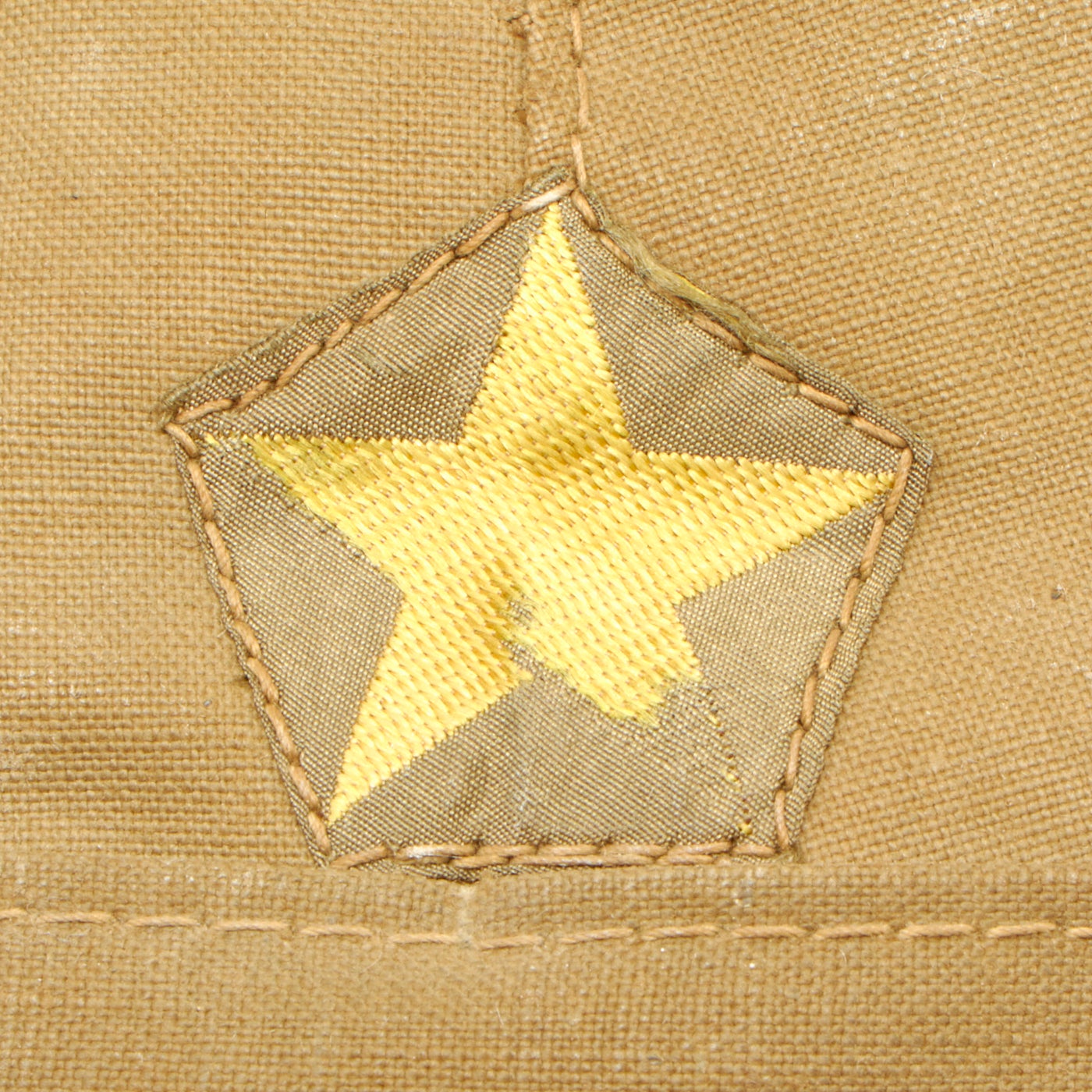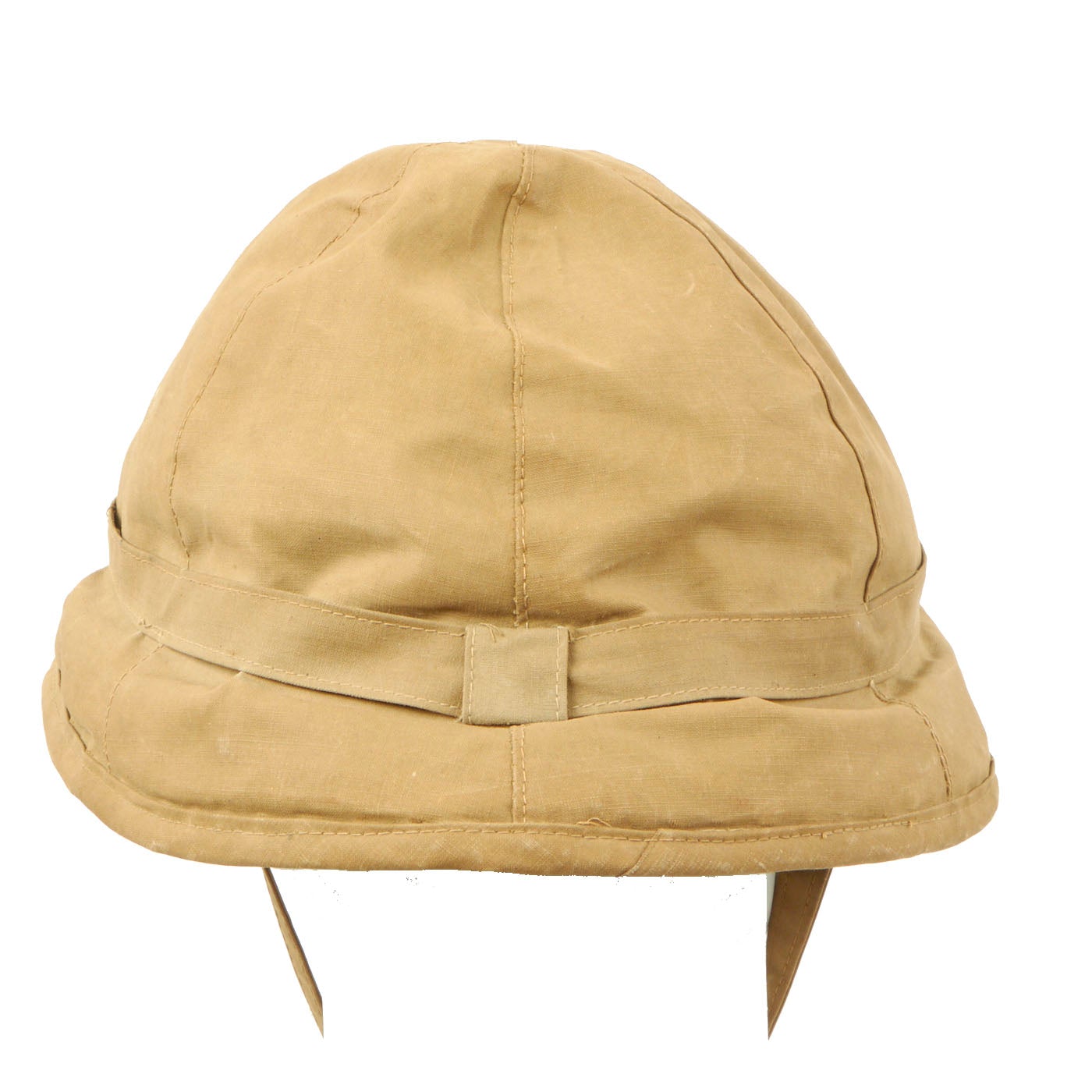 Original Item: Only One Available. This is a very nice original WWII Japanese Army type 98 tropical sun pith helmet. It no longer retains its internal wicker form, unfortunately it was crushed at some point. Comes with original pentagonal bevo style cloth embroidered army star insignia to the front. Helmet has part of the original suspension system and original chinstrap.