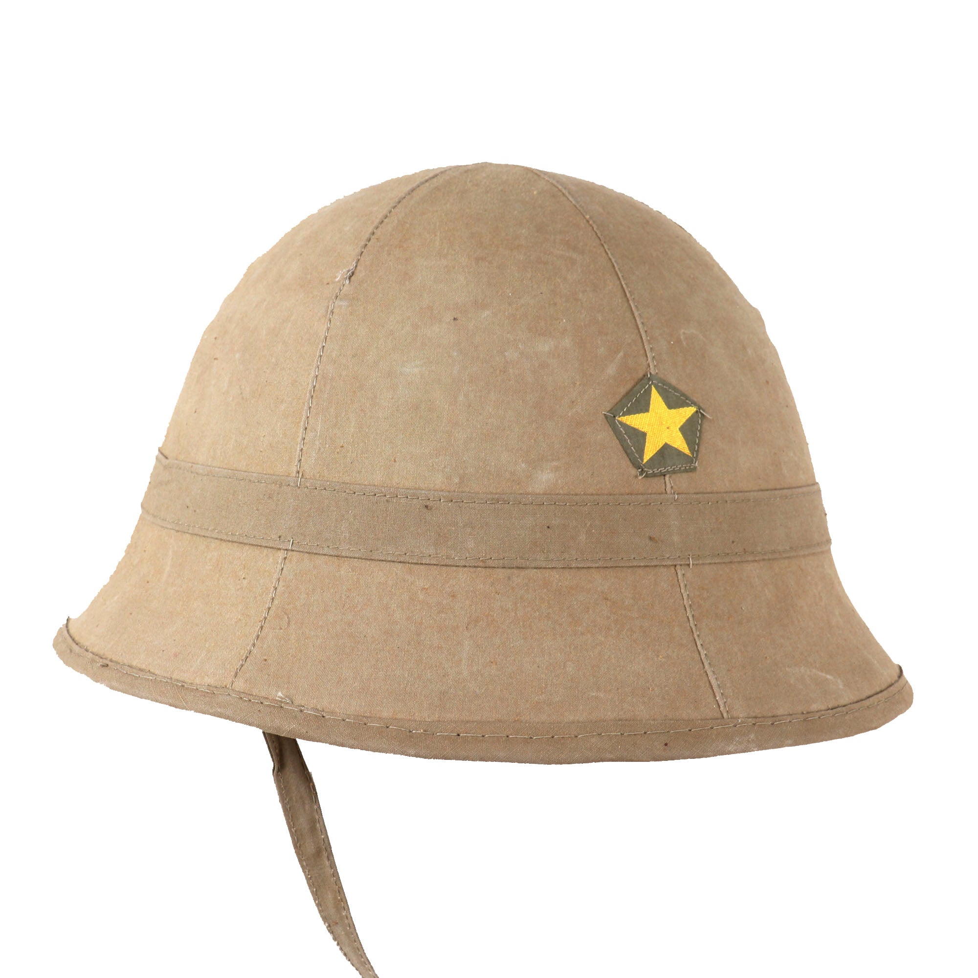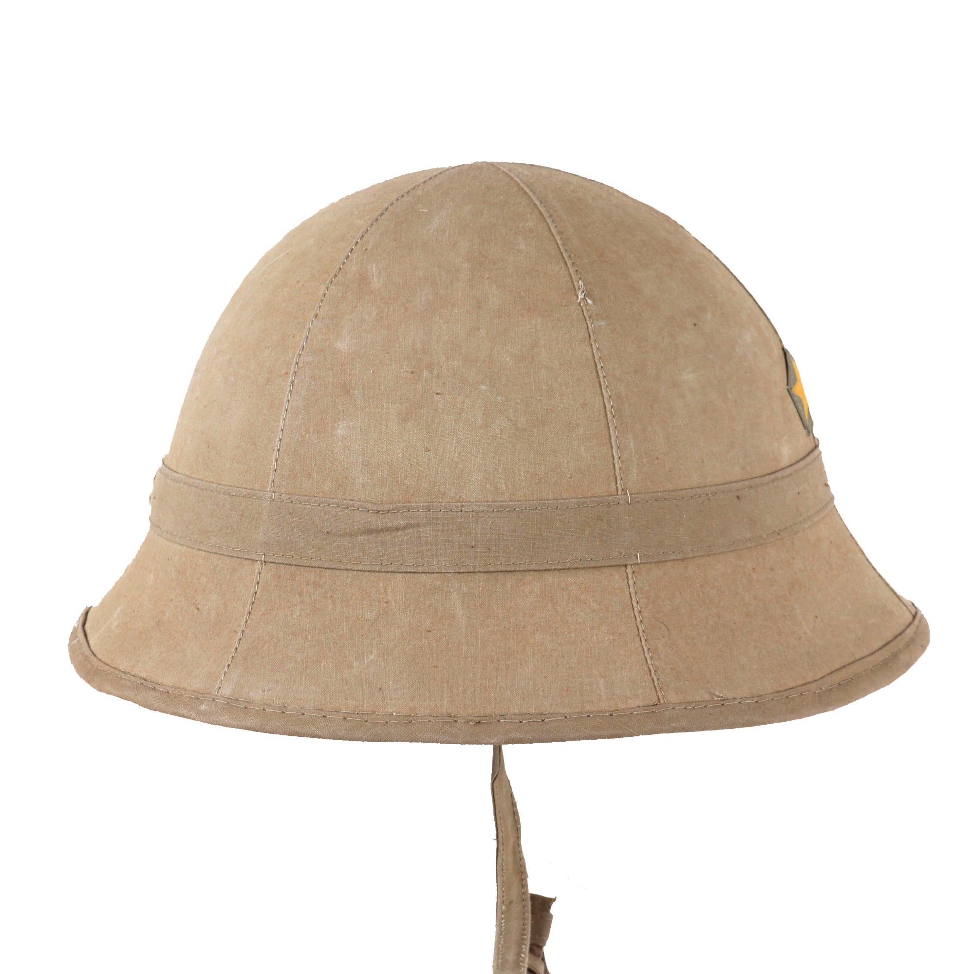 Original Item: Only One Available. This is a very good condition original WWII Japanese Army type 98 tropical sun pith helmet. It still retains a wonderful form with internal bamboo wicker construction. Comes with original pentagonal bevo style cloth embroidered army star insignia to the front, which is in impeccable condition. The helmet has the original suspension system and original chinstrap.