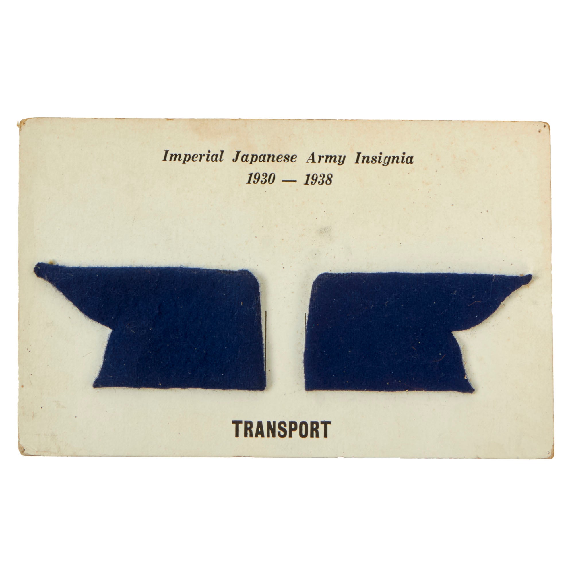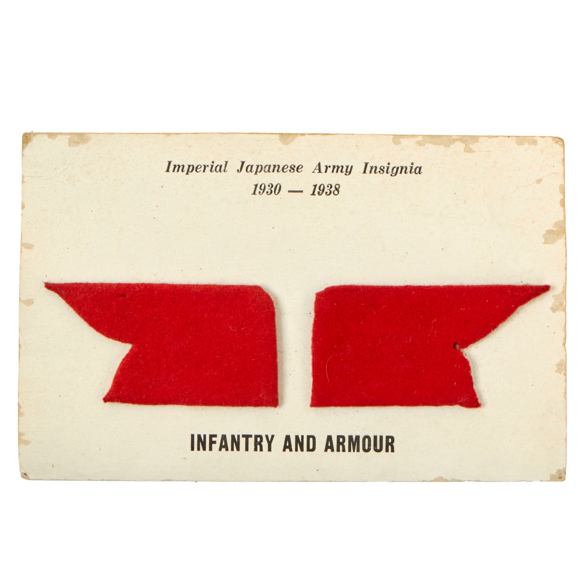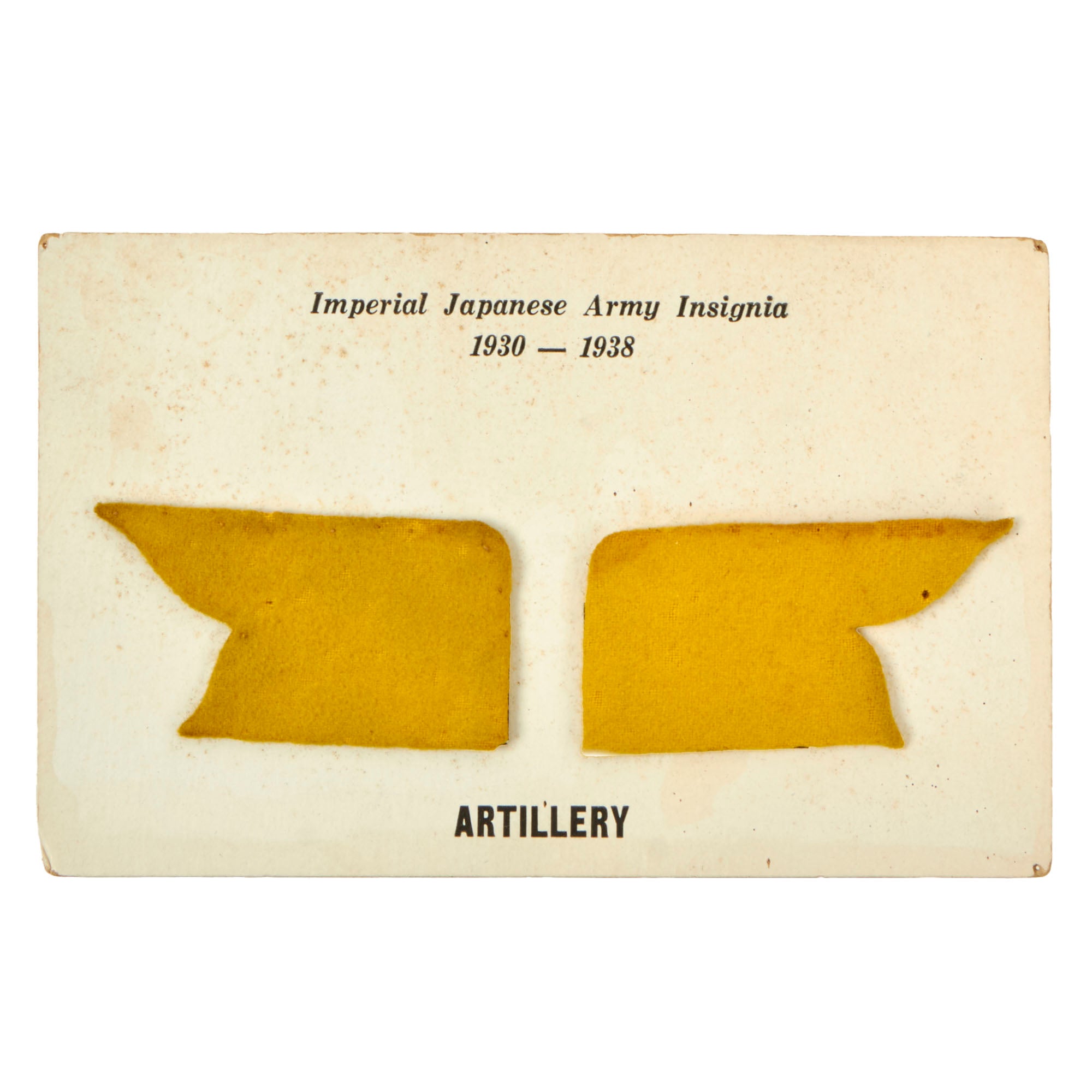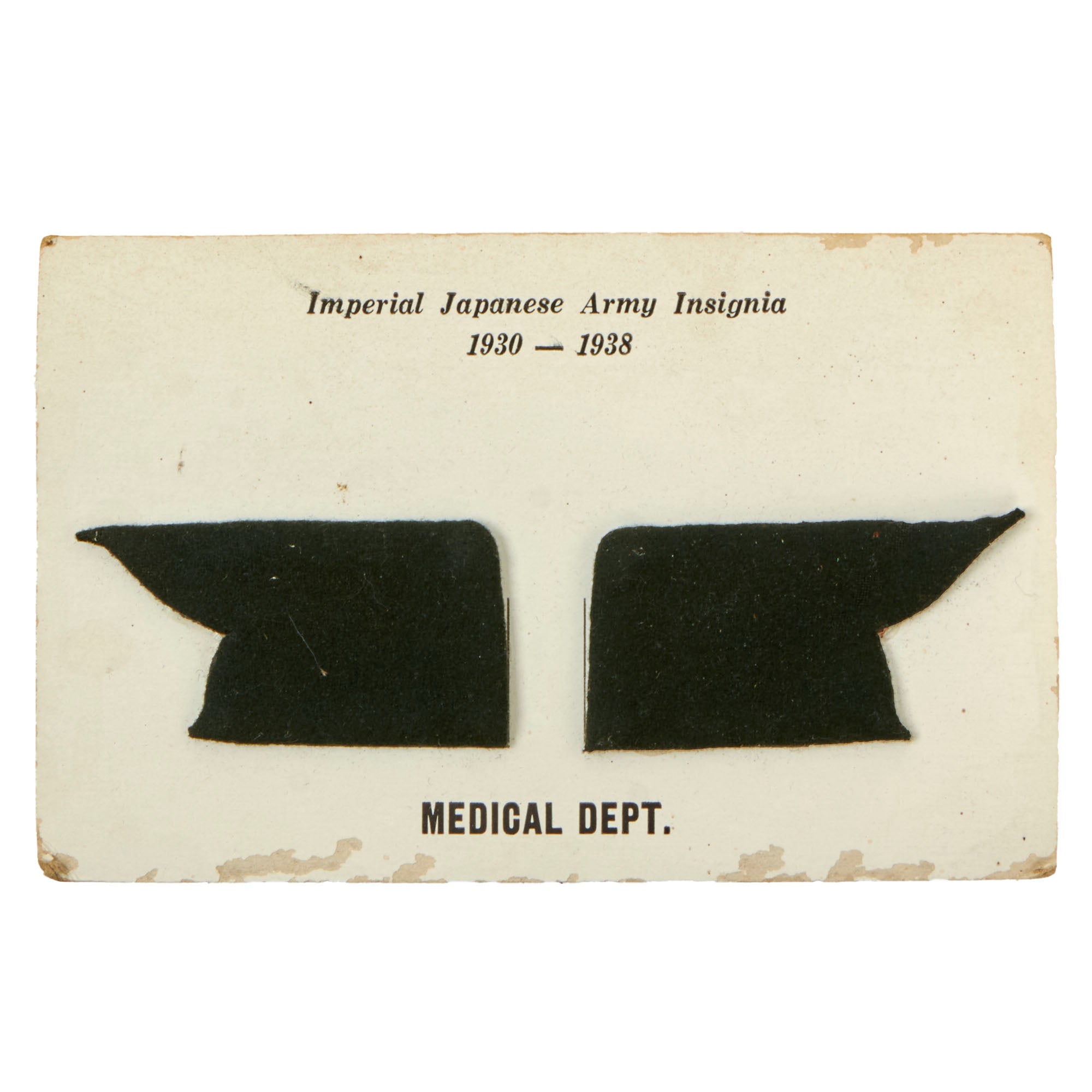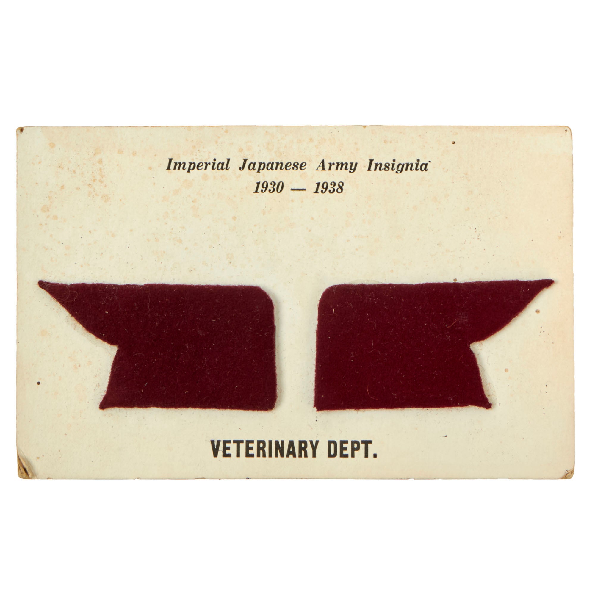 Original Items. Only One Available. This is a tremendous set of display boards with collar insignia for six branches of the Imperial Japanese Army in use from 1930-1938. These were likely on display in a museum at one point considering their mounting. Each board measures 7 x 4½”.