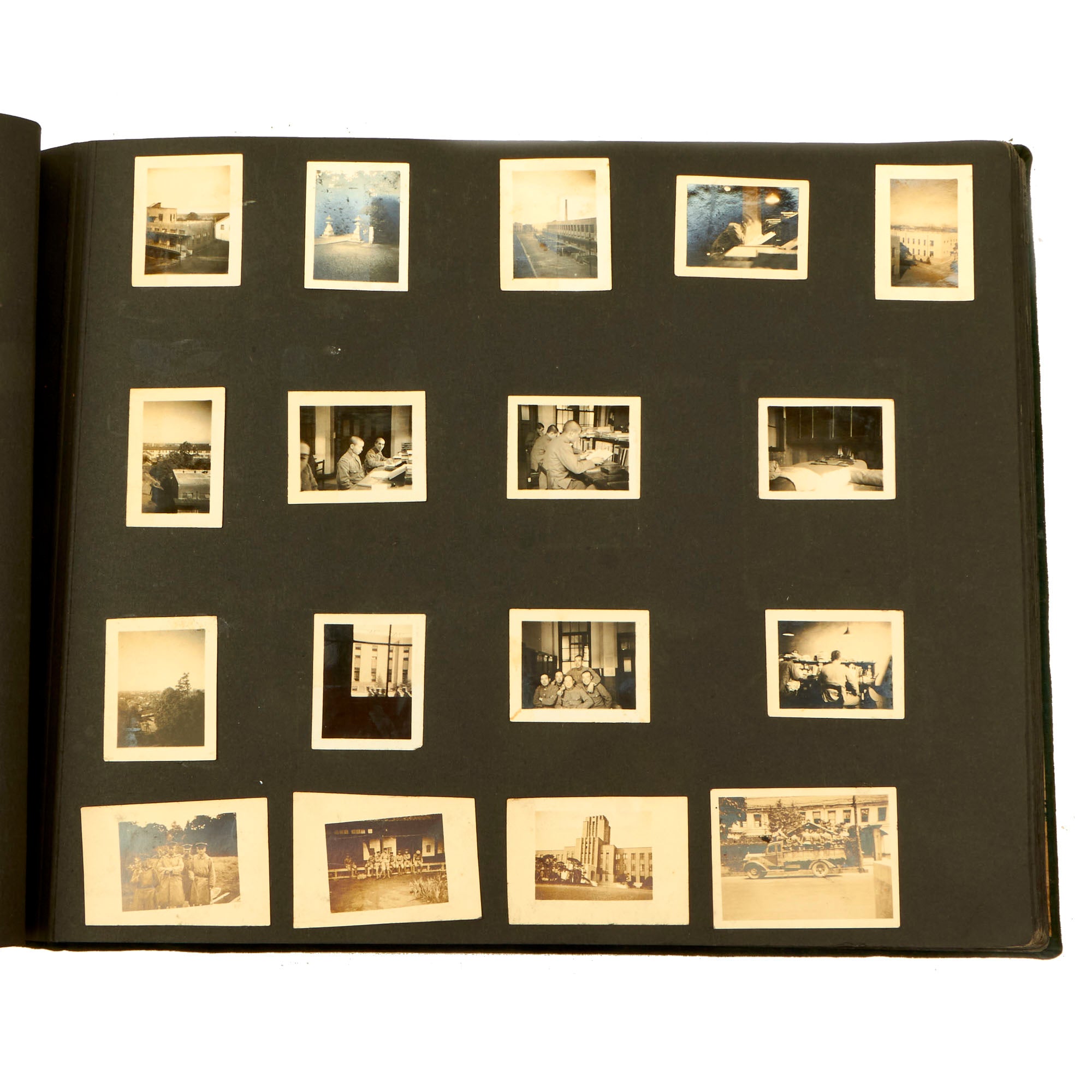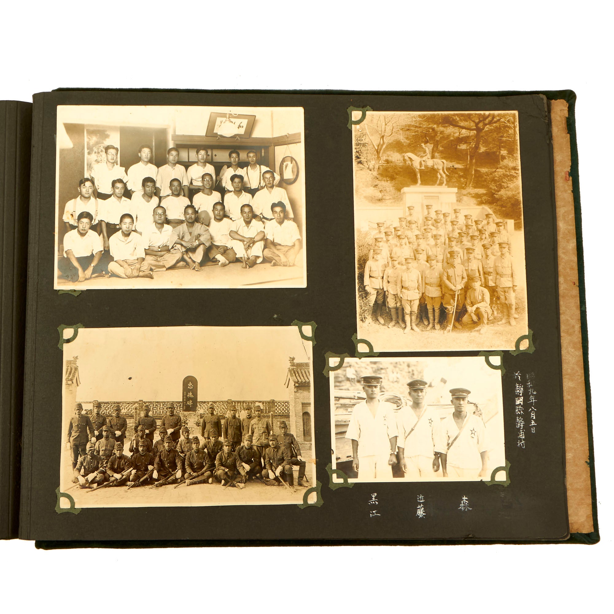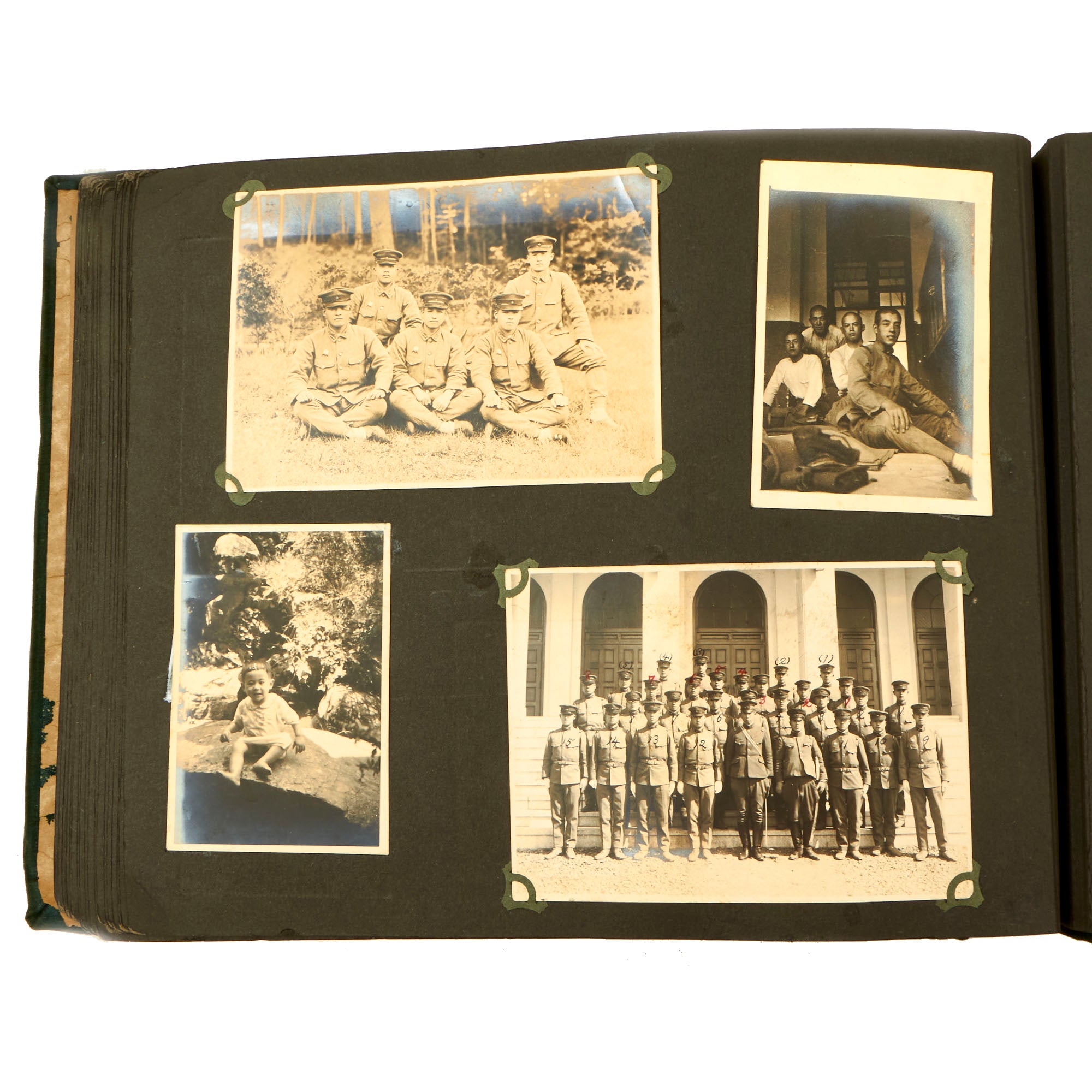 Original Item: Only One Available. This is an incredible photo album featuring exactly 300 pictures of a young soldier’s time serving with the 78th Infantry Regiment in the years leading up to WWII and possibly into WWII. The Second Sino-Japanese War (1937–1945) or War of Resistance (Chinese term)[a] was a military conflict primarily between the Republic of China and the Empire of Japan. The war made up the Chinese theater of the wider Pacific Theater of the Second World War. The beginning of the war is conventionally dated to the Marco Polo Bridge Incident on 7 July 1937, when a dispute between Japanese and Chinese troops in Peking escalated into a full-scale invasion. Some Chinese historians consider the start of the war as the Japanese invasion of Manchuria on 18 September 1931. China was aided by the Soviet Union, the United Kingdom, the United States, and NSDAP Germany before its alliance with Japan. Around 20 million people, mostly civilians, were killed.