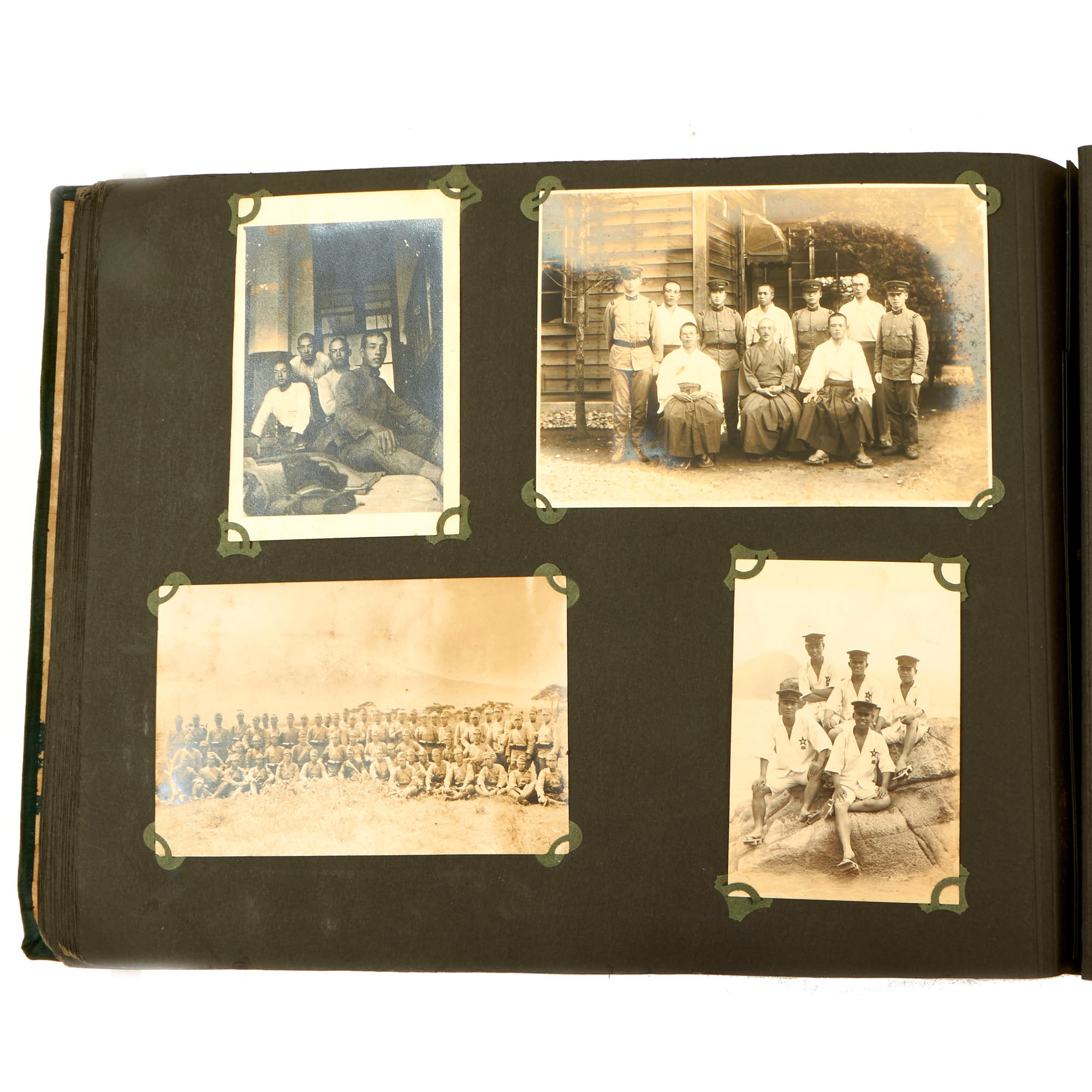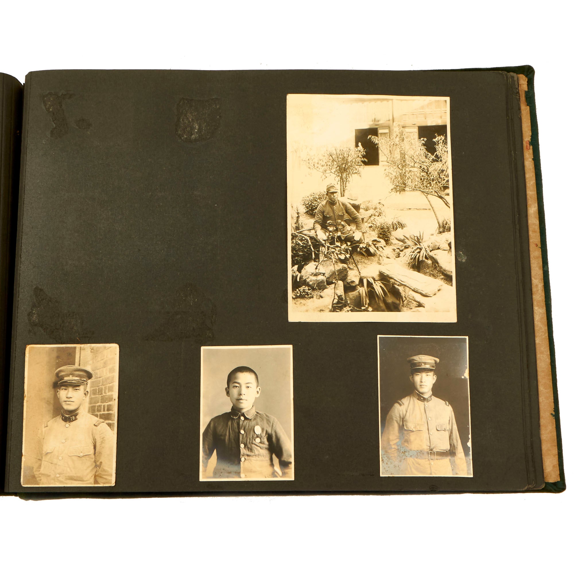 The 78th Infantry Regiment was an infantry regiment in the Imperial Japanese Army. The regiment was attached to the 39th Infantry Brigade of the 20th Division. The regiment participated during the Second Sino-Japanese War and during the later stages of World War II, the regiment was in New Guinea, as part of the Japanese Eighteenth Army. The album consists mainly of individual portraits of Japanese soldiers wearing the “Showa Type 5” uniforms, also called the M90 or 1930 uniform all with the same regiment collar tabs. All photos are in wonderful condition and still very clear. They mainly consist of portraits but there are various group pictures, training photos and troop movement photos.