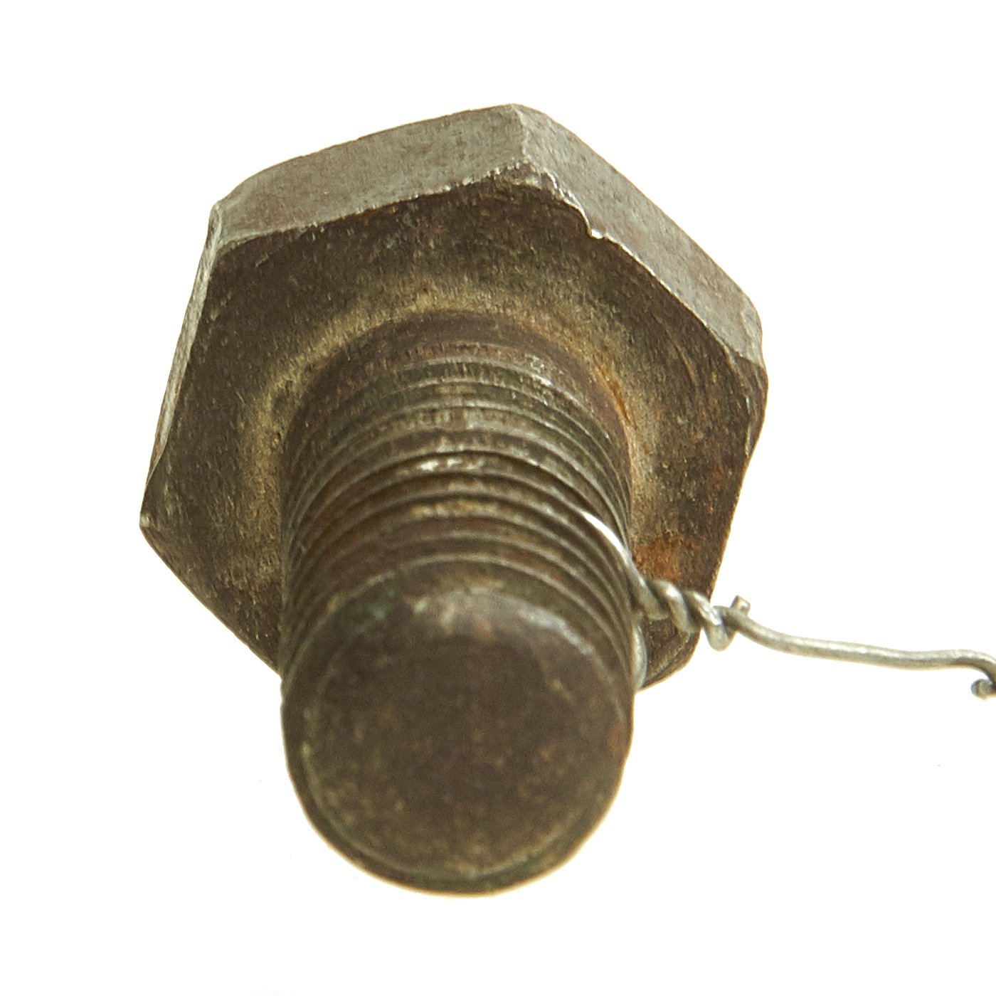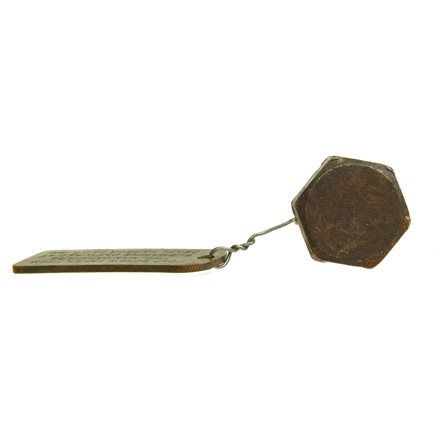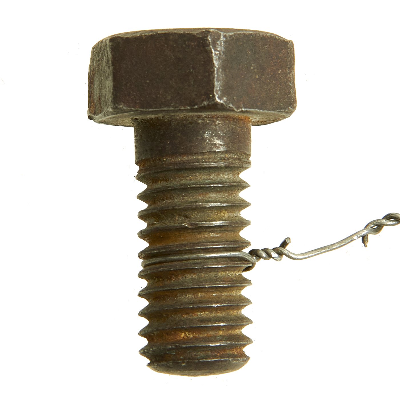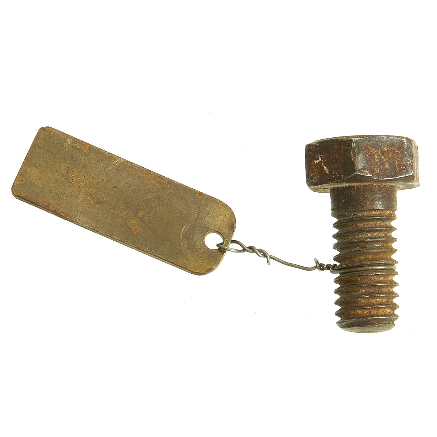 This is reportedly a bolt taken from the submarine Japanese Midget Submarine "C". It measures 3/4" wide and 1 1/2" long. Attached to it is a small engraved brass plaque that reads:
