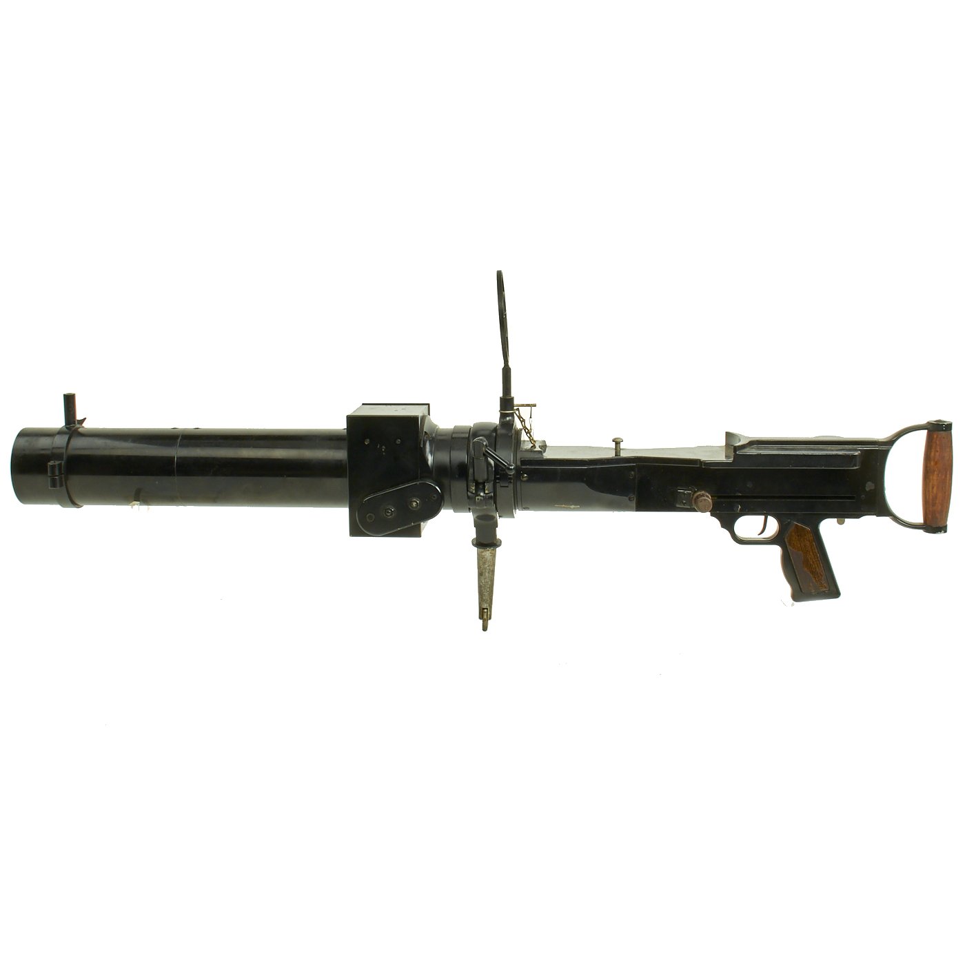 As far as camera hardware, the film canister and exposure area was located in the square box at the rear of the cooling jacket. It used 120mm film, and could hold 12 or 16 frames worth (sources vary on this point). A shutter and lens were located near the muzzle end of the device.