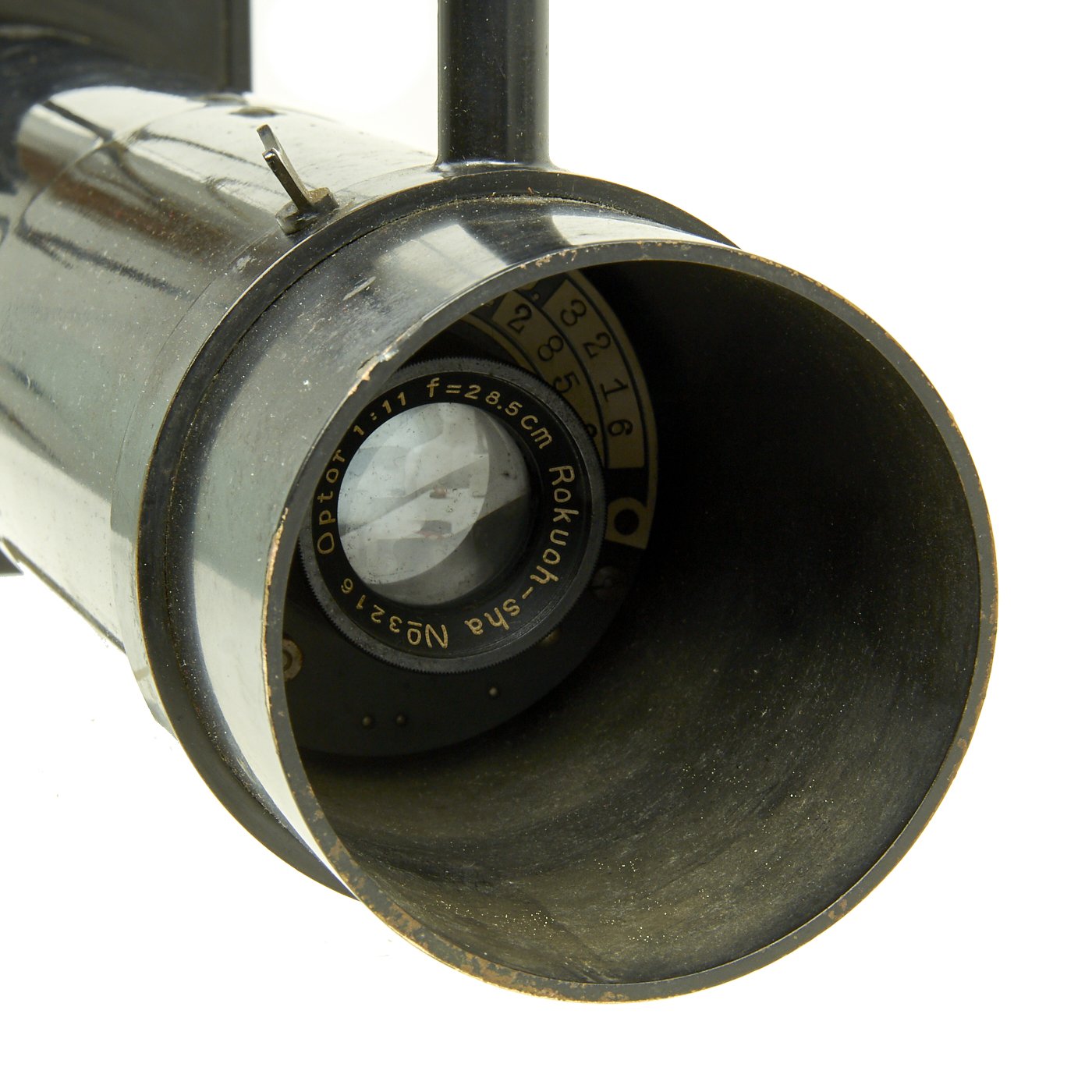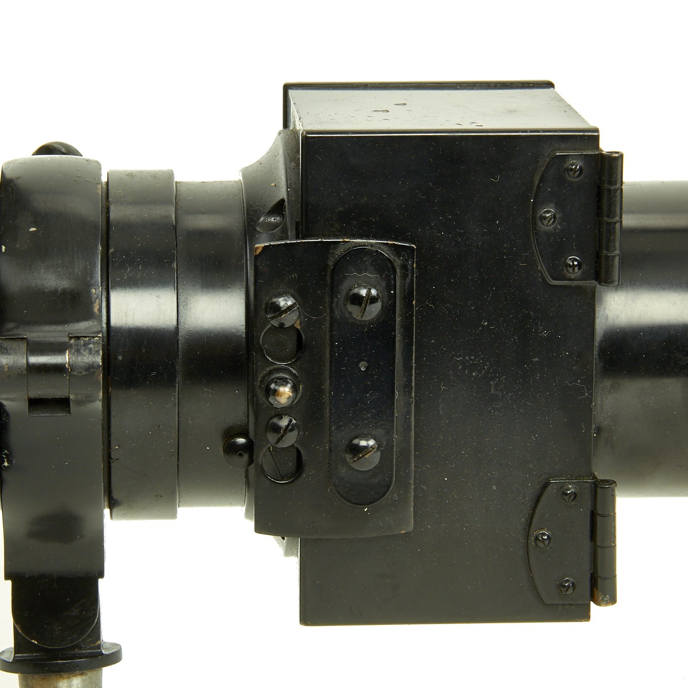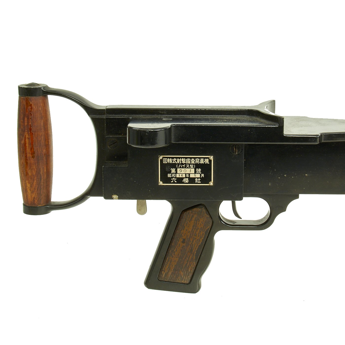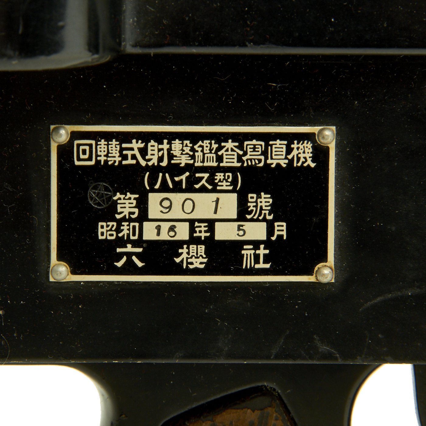 • Original Item: Only One Available. This is an exceptionally rare excellent condition Imperial Japanese WWII Katsura Seisakusho Machine Gun Training Camera which is dated on the data plate with 昭 和 16 年 5 月 - Showa 16 (1941) 5th Month (May). Katsura Seisakusho copied the Hythe Mk III Gun Camera. This example is in mint condition and comes with the cross head mount and two spider sights. Very few examples are known to exist, in fact, this may very well be the best condition most complete example in the world.