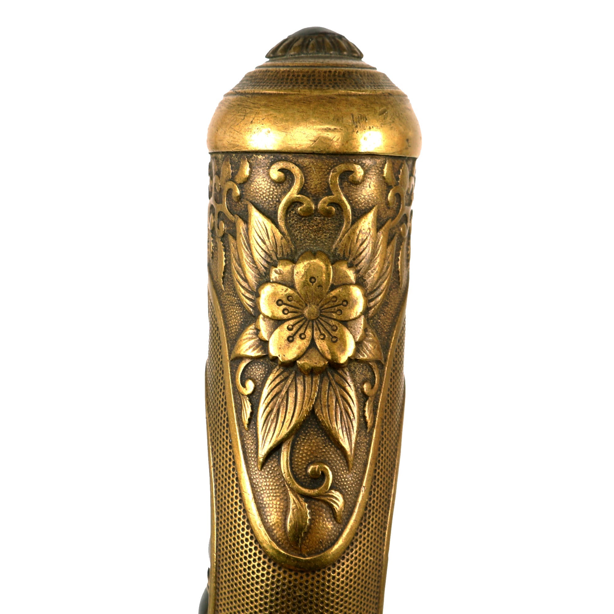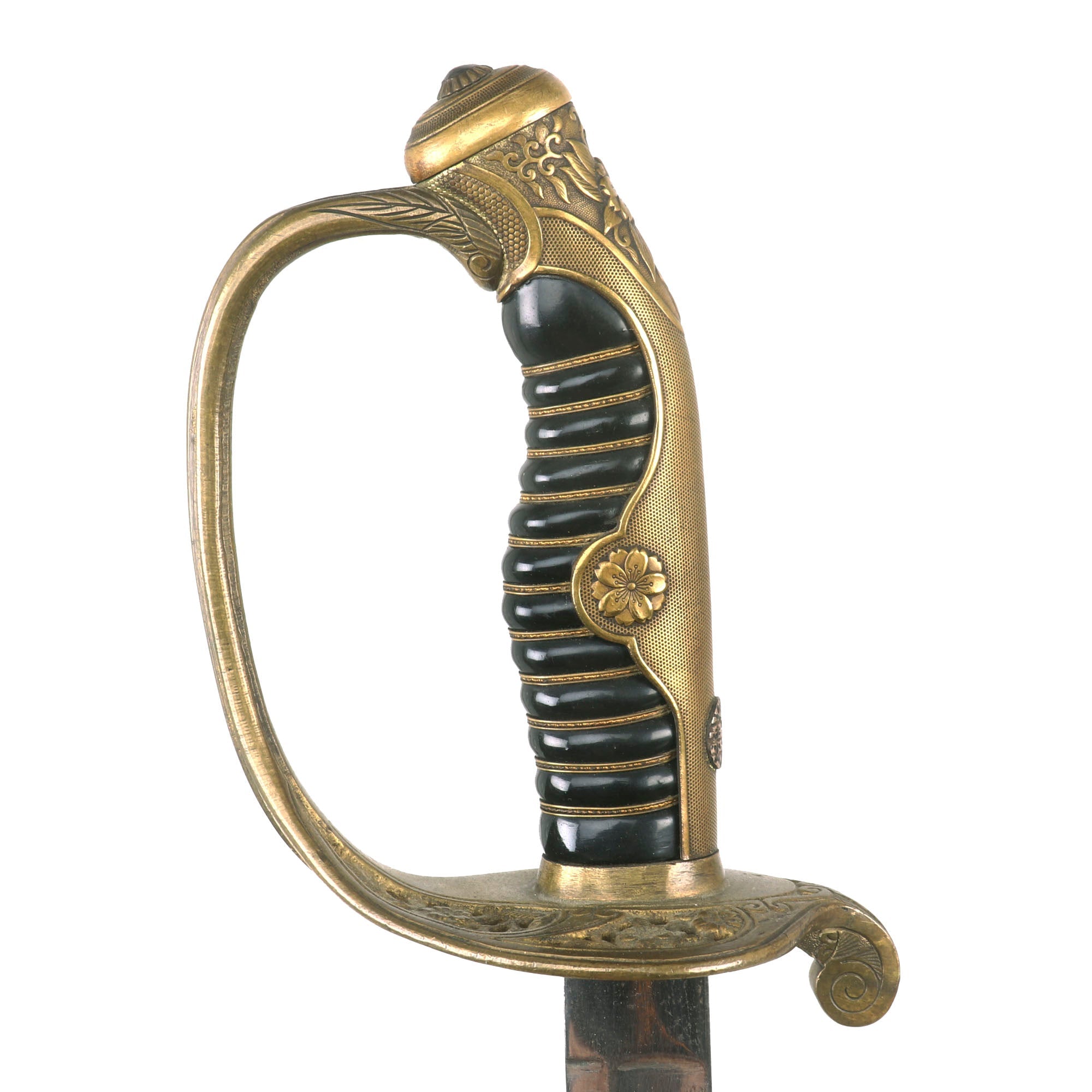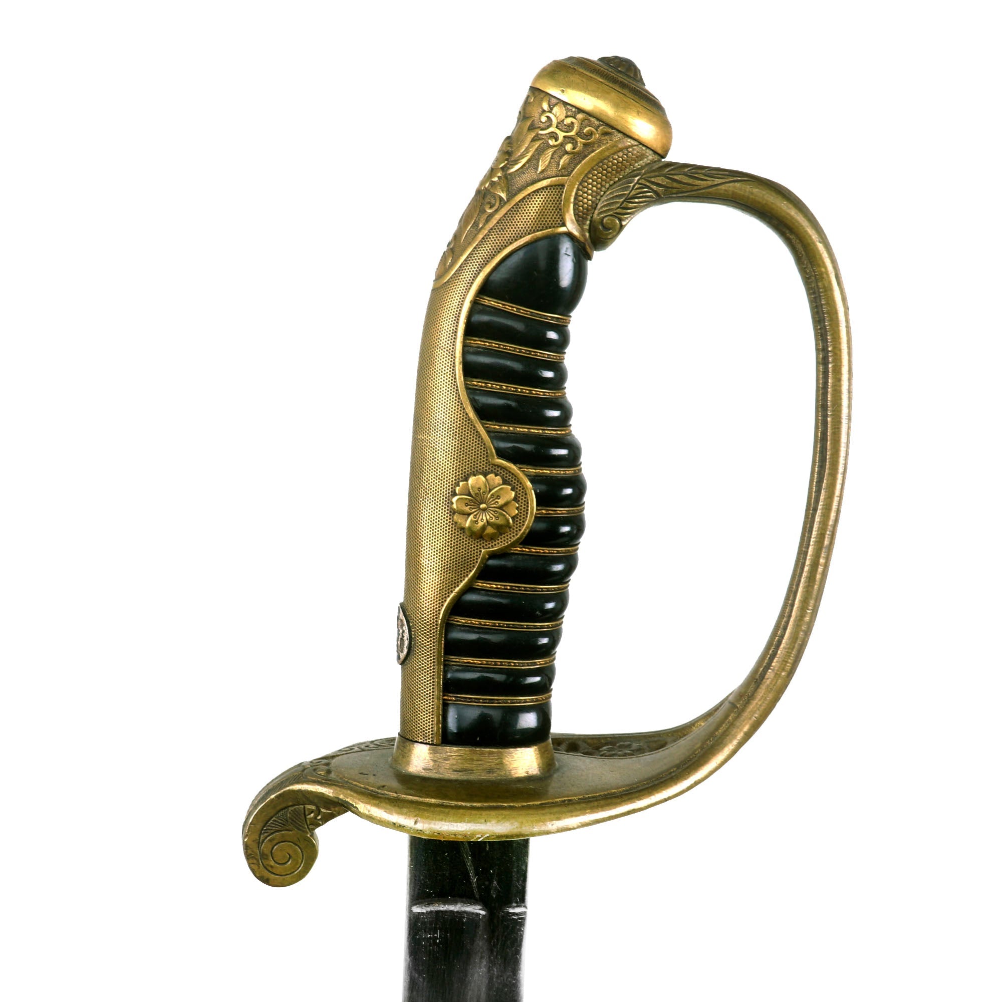 The kyu gunto was used from 1875 until 1934, it closely resembled European and American swords of the time, with a wraparound hand guard (also known as a D-Guard) and chrome plated scabbard (saya), the steel scabbard is said to have been introduced around 1900.