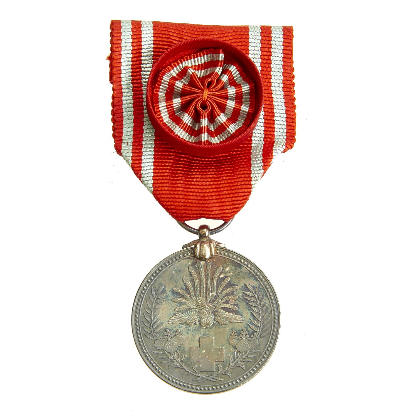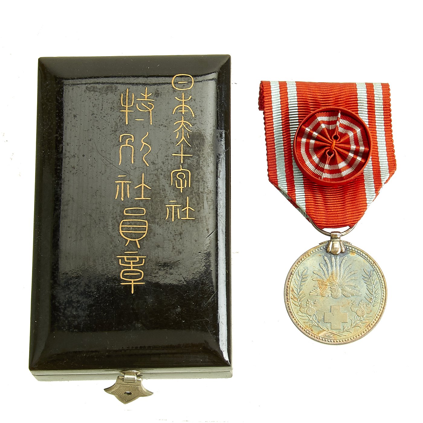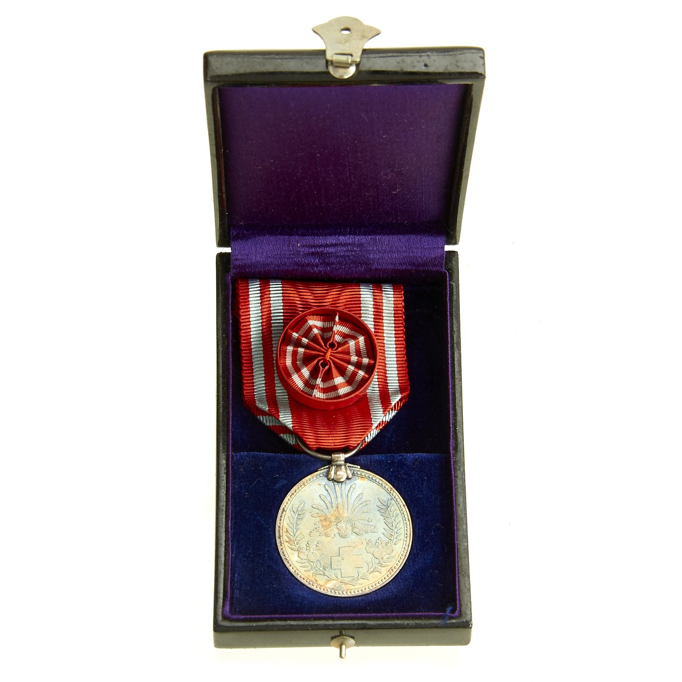 - WW2 Japanese Red Cross Workers Silver Medal with rosette and case