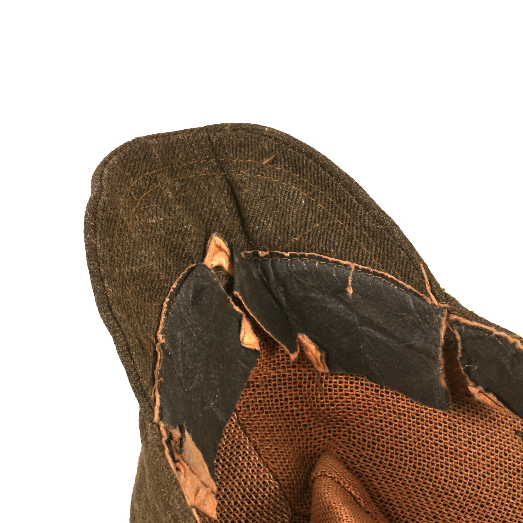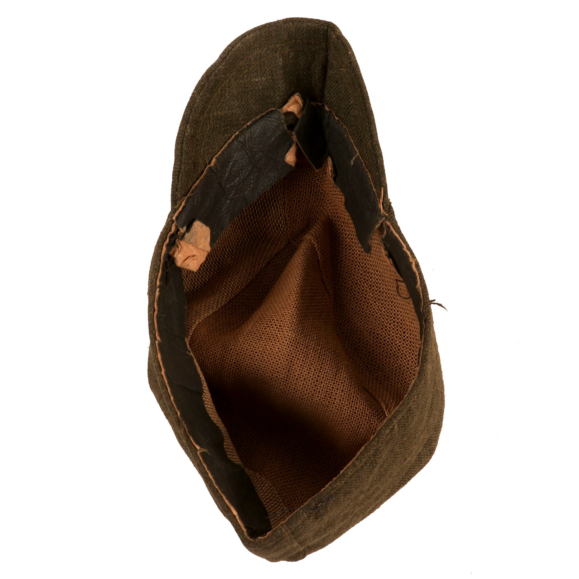 Original Item: Only One Available. This is a lovely, worn example of a wool officer's forage cap. Fully lined with a heavily worn leather sweatband. This example has no string closure eyelets to the back and is just closed and sewn. This example has very heavy service wear.