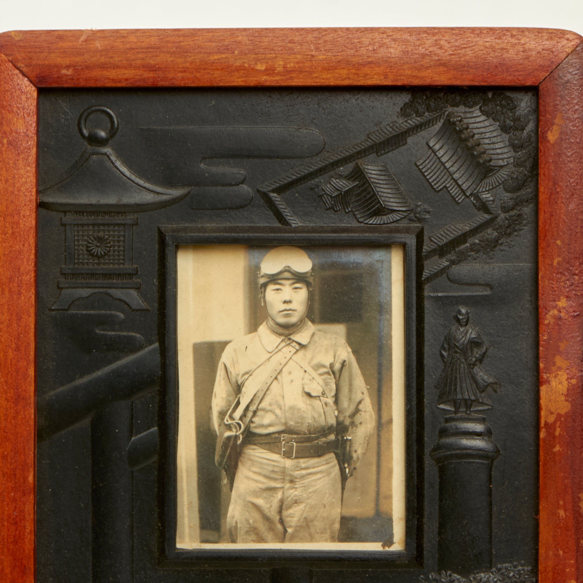 Original Item. One-of-a-Kind. This is a very nice framed photograph of a Japanese tanker during World War II in full tanker gear, including his helmet & goggles. The frame measures 5¼ x 7⅝”.