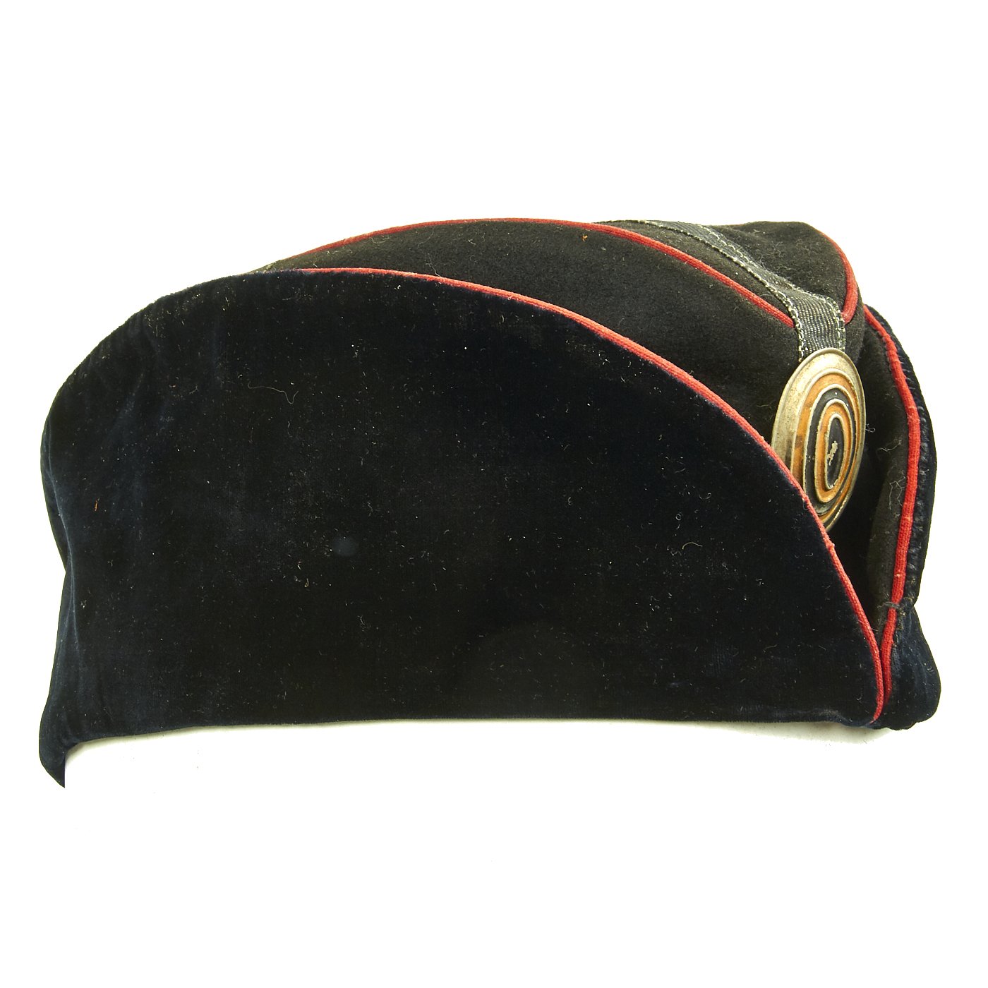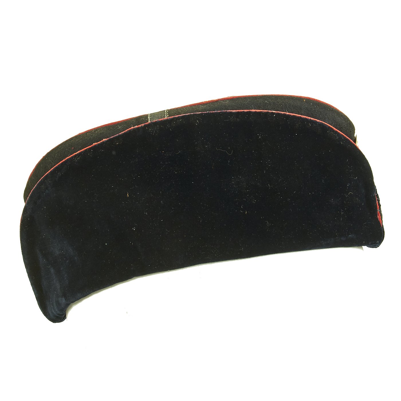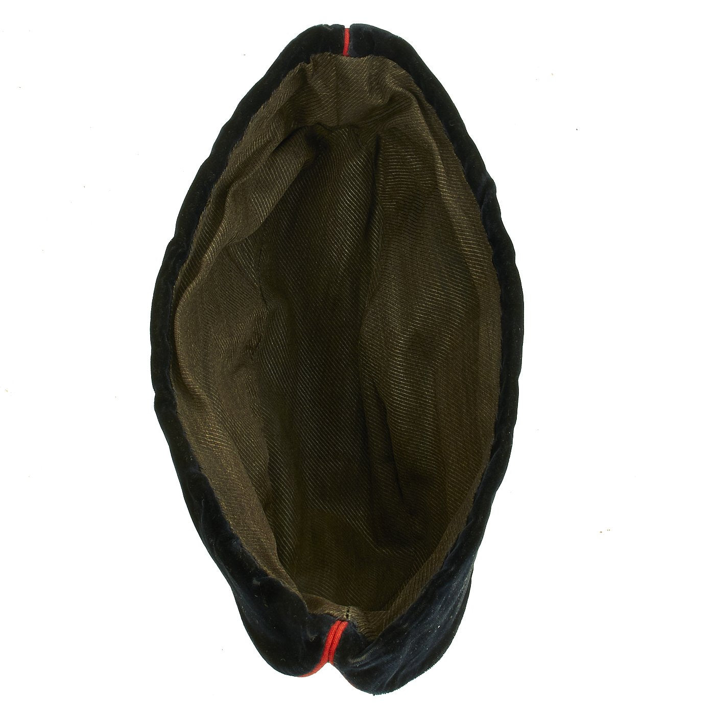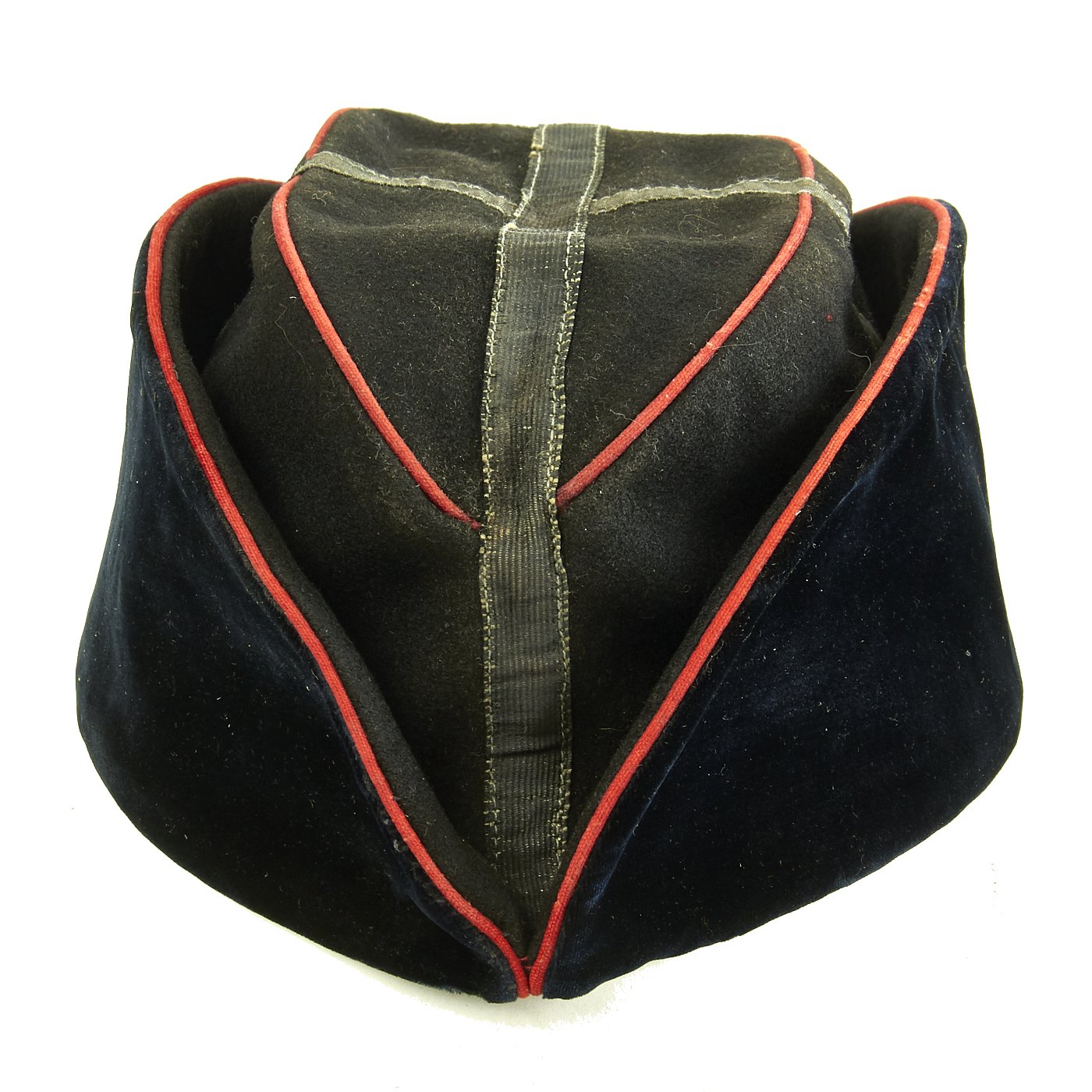 Original Item: Only One Available. This is an extremely rare Imperial Russian Air Service Great War Other Ranks overseas side cap. It is construed of wool with velvet type outer flaps and red piping. The top of the cap has a cross constructed from ribbon. The center front of the cap features a metal other ranks cockade. The interior is lined in gray cotton and bears a faint manufactures ink stamp. Overall condition is excellent. Size is approximately a US 6 3/4 (54 cm).