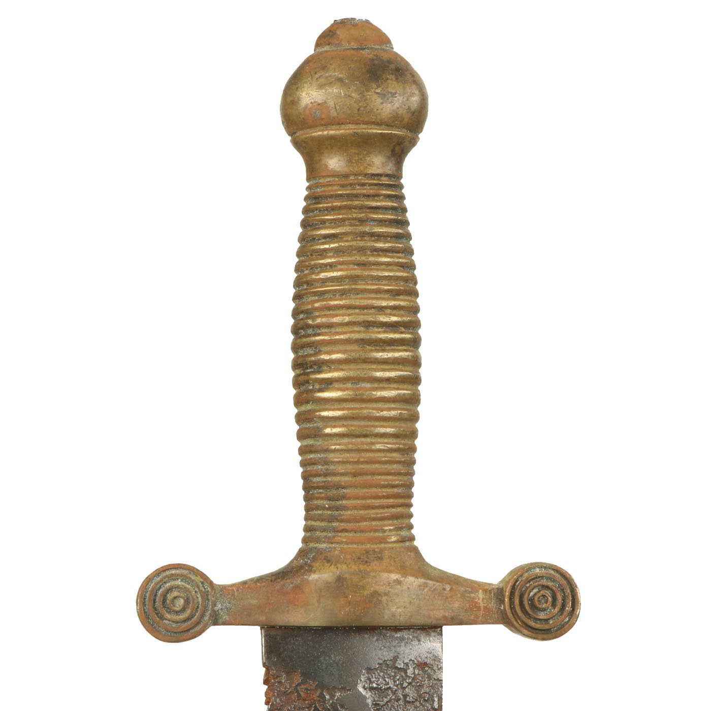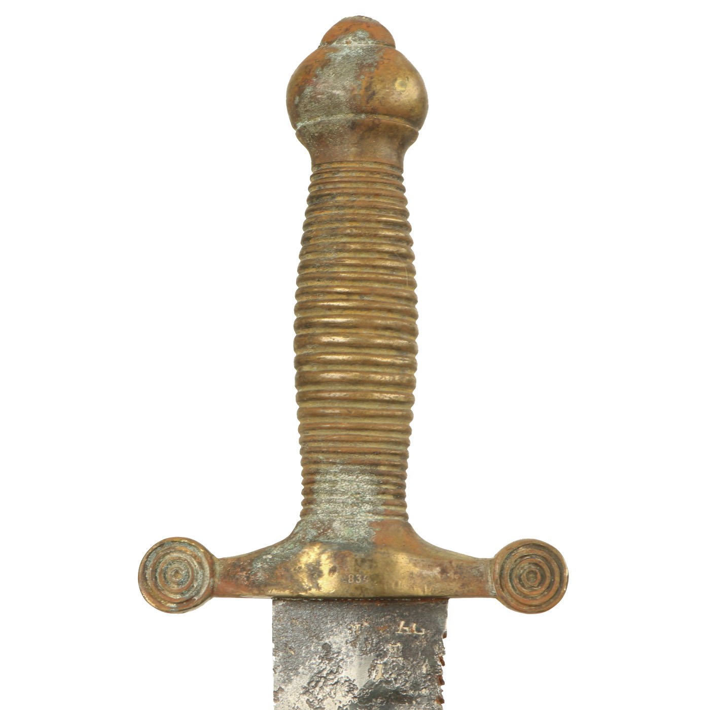 Condition is good, though the blade definitely has rust issues on much of the surface. The brass handle also shows some oxidation and patination. This is the first example we have seen in some time, and these have become very hard to find.