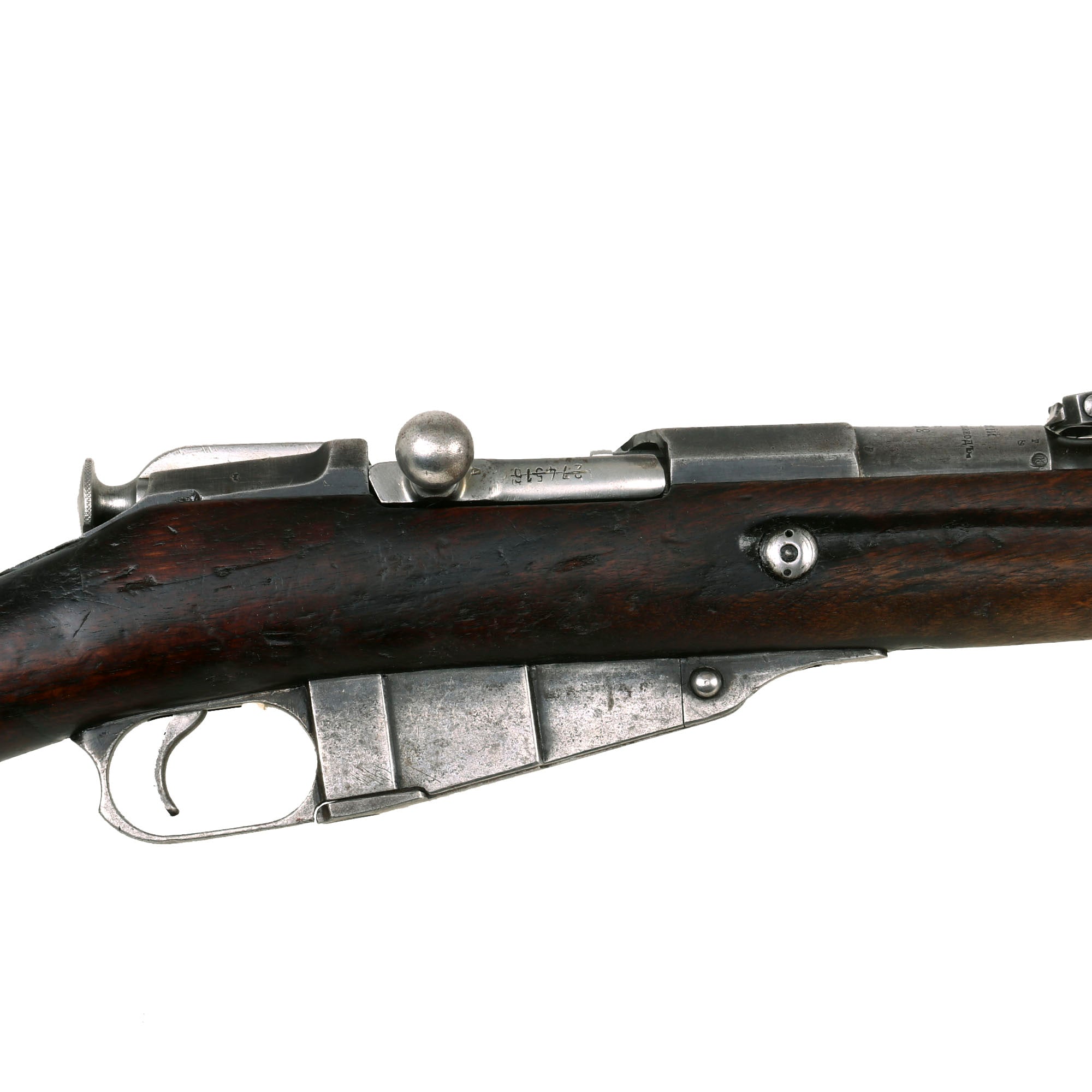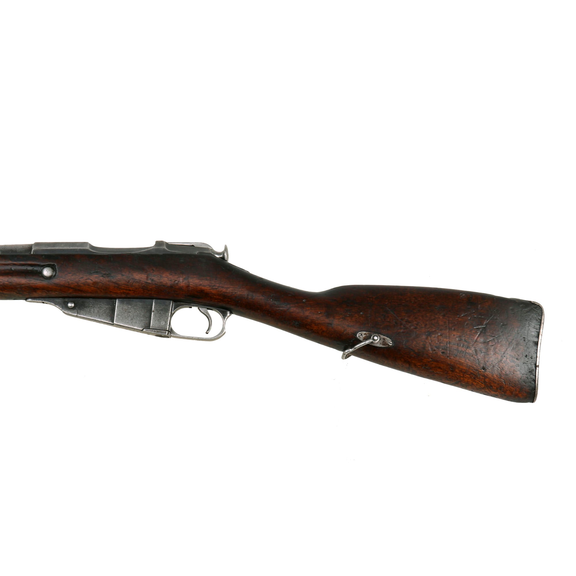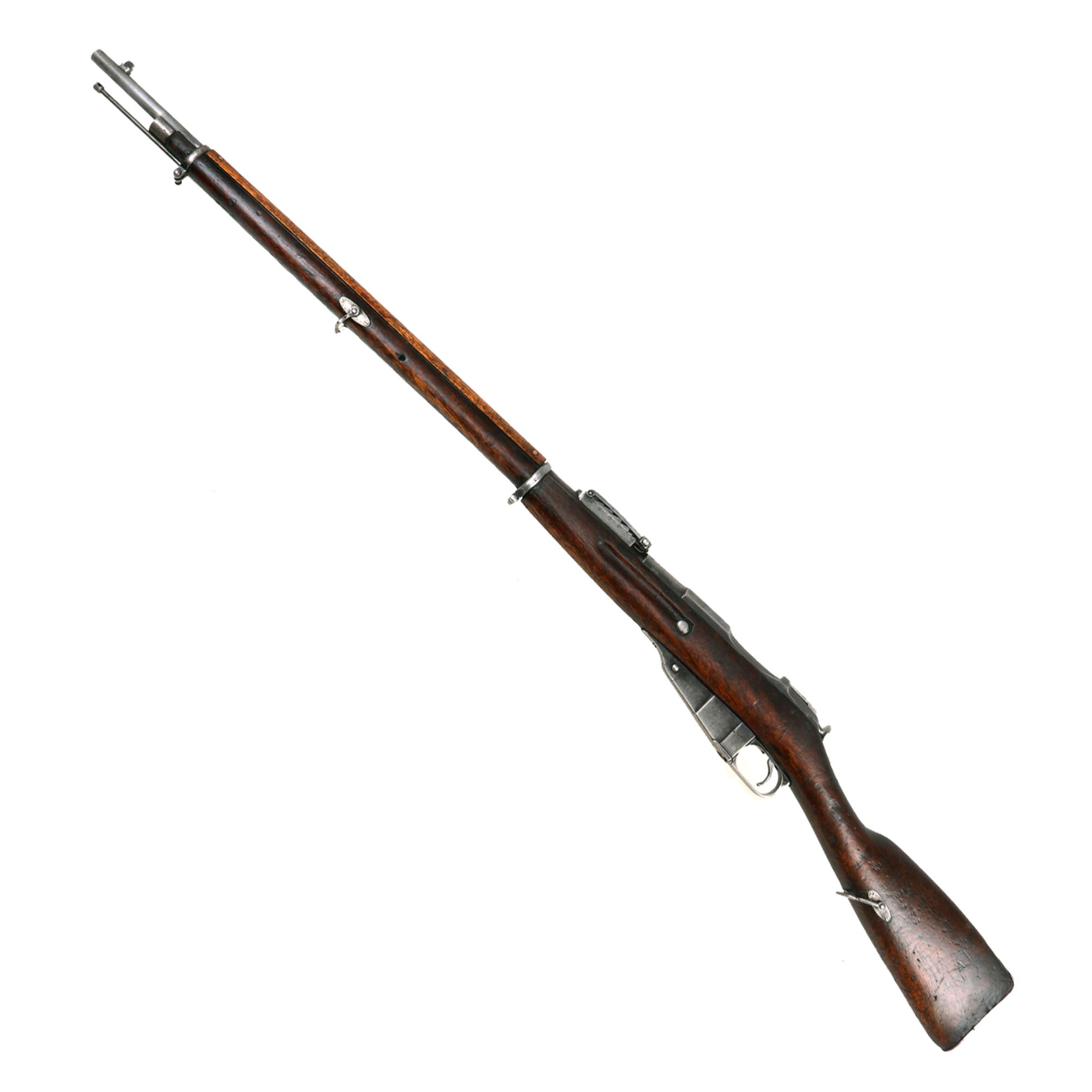 Original Item: Only One Available. These are so very rare, and one of a very few examples that we have had in decades. A real pre-1899 Antique Russian Mosin-Nagant M1891 Full Length Rifle, more officially referred to as the "Three Line Infantry Rifle, Model of 1891." This example was never converted to the 91/30 standard, and is still in the original full length. It does have the stock cross bolt for use with the heavier "Spitzer" bullets used, but otherwise it is still in the original issued configuration. It even still has the original early issue sling swivels on small oval fittings, which are almost always swapped out!