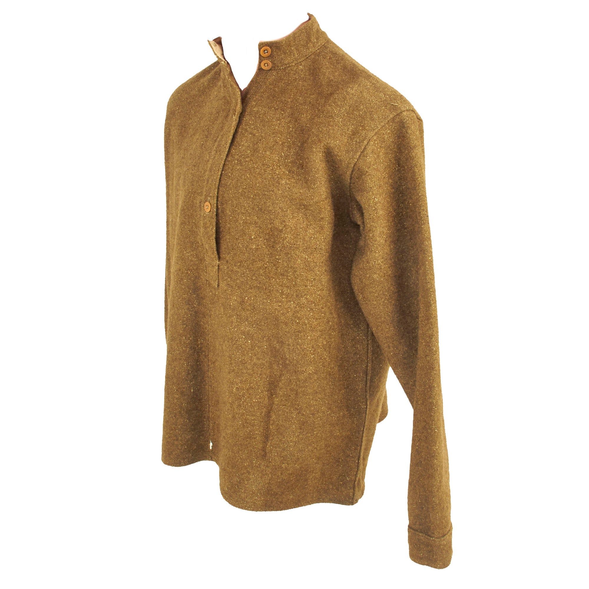 Gymnastyorka was a Russian military smock comprising a pullover-style garment with a standing collar having double button closure. Additionally, one or two upper chest pockets, with or without flaps, may have been worn. It had provision for shoulder boards and sometimes reinforced elbows and cuffs. The Tsarist version had the standing collar while the M35 version had a stand-and-fall collar which was replaced with the standing collar in the M43 version. The Soviet Military M35 version usually had hidden buttons. A double breasted version (kitel) for officers of all ranks existed during the Tsarist period.