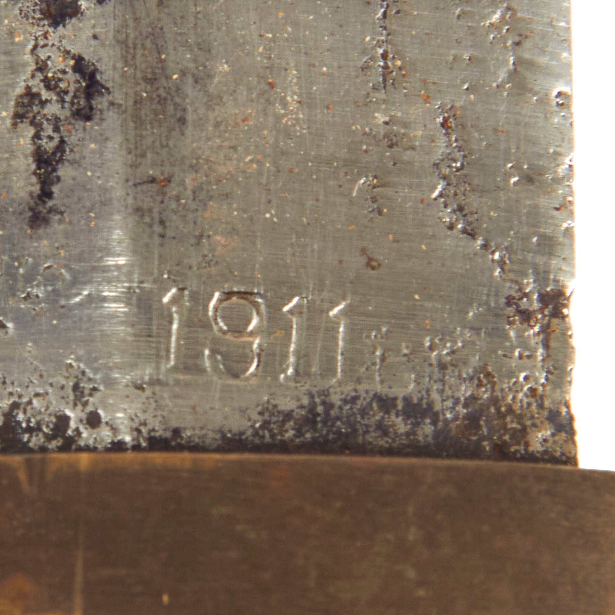 This example measures 23 1/4” in overall length, with a 17 1/4” blade that is in good service used condition. It shows past sharpening and polishing, as well as some oxidation being cleaned away. This has unfortunately removed the maker marking, however it is still dated by the minimal crossguard with 1911г (год or year), indicating manufacture in 1911.