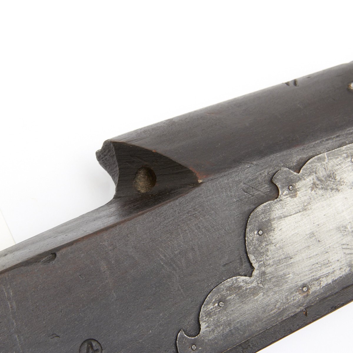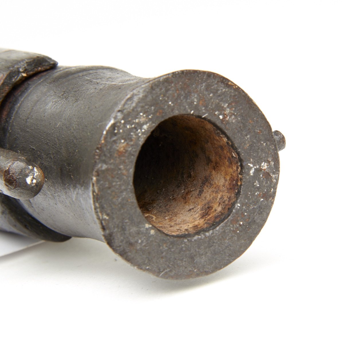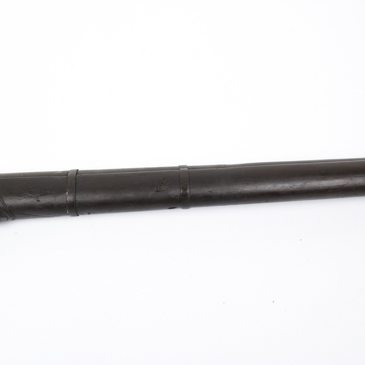 By massive we mean in terms of NINE feet in length, actually measuring 107" overall has a bore size of THREE QUARTERS OF AN INCH. It is marked with the appropriate original Indian Government reference numbers and codes from the time of Export signifying that it is a 250 year old primitive Wall Gun officially exported from India which is very strict on the release of it's Antiquities.