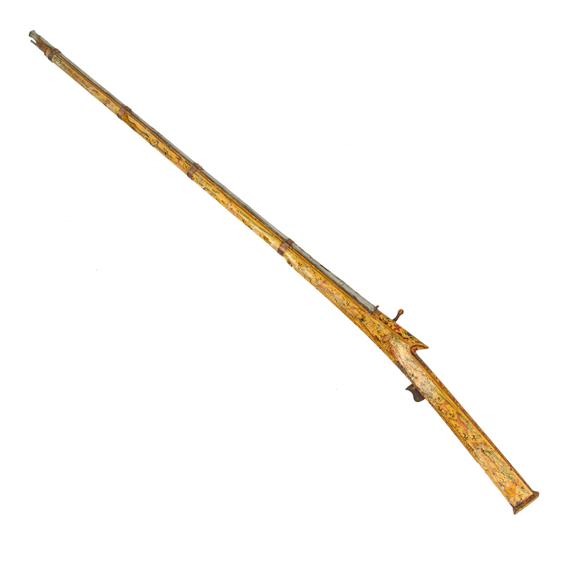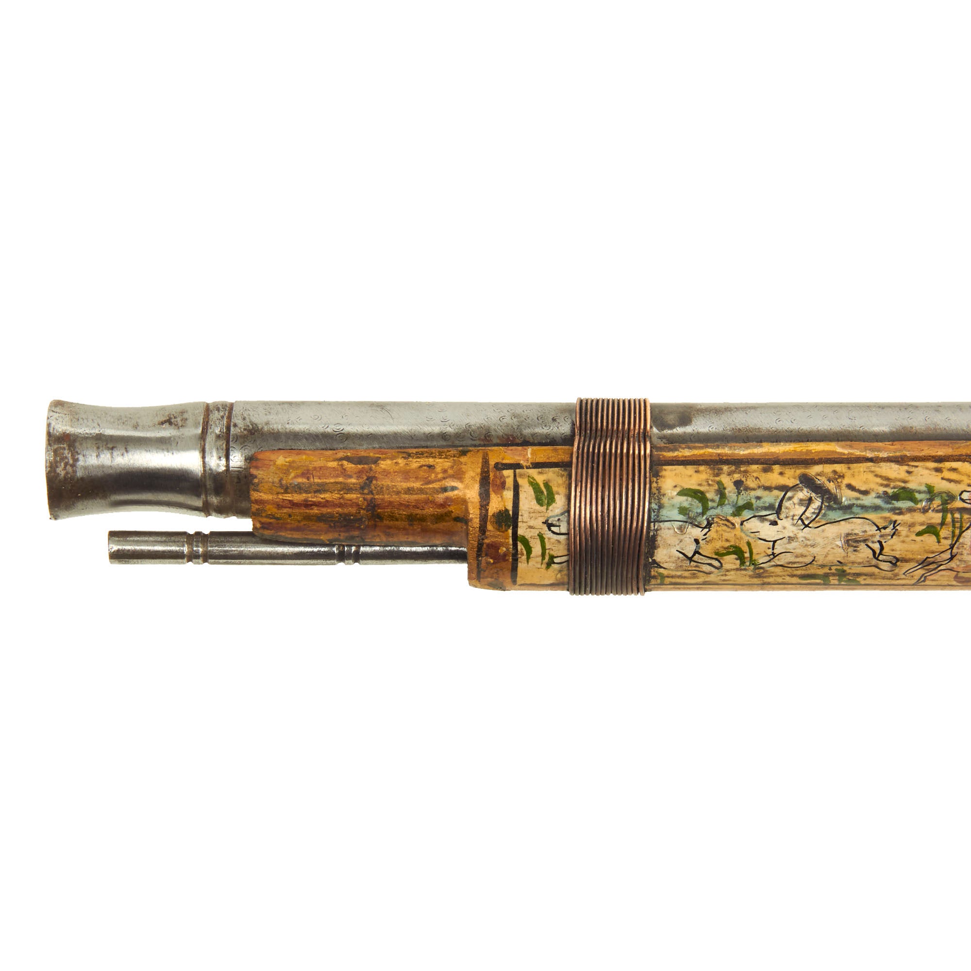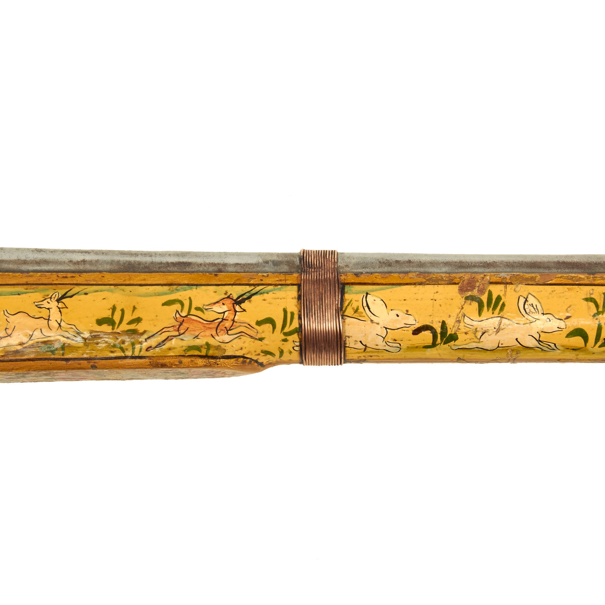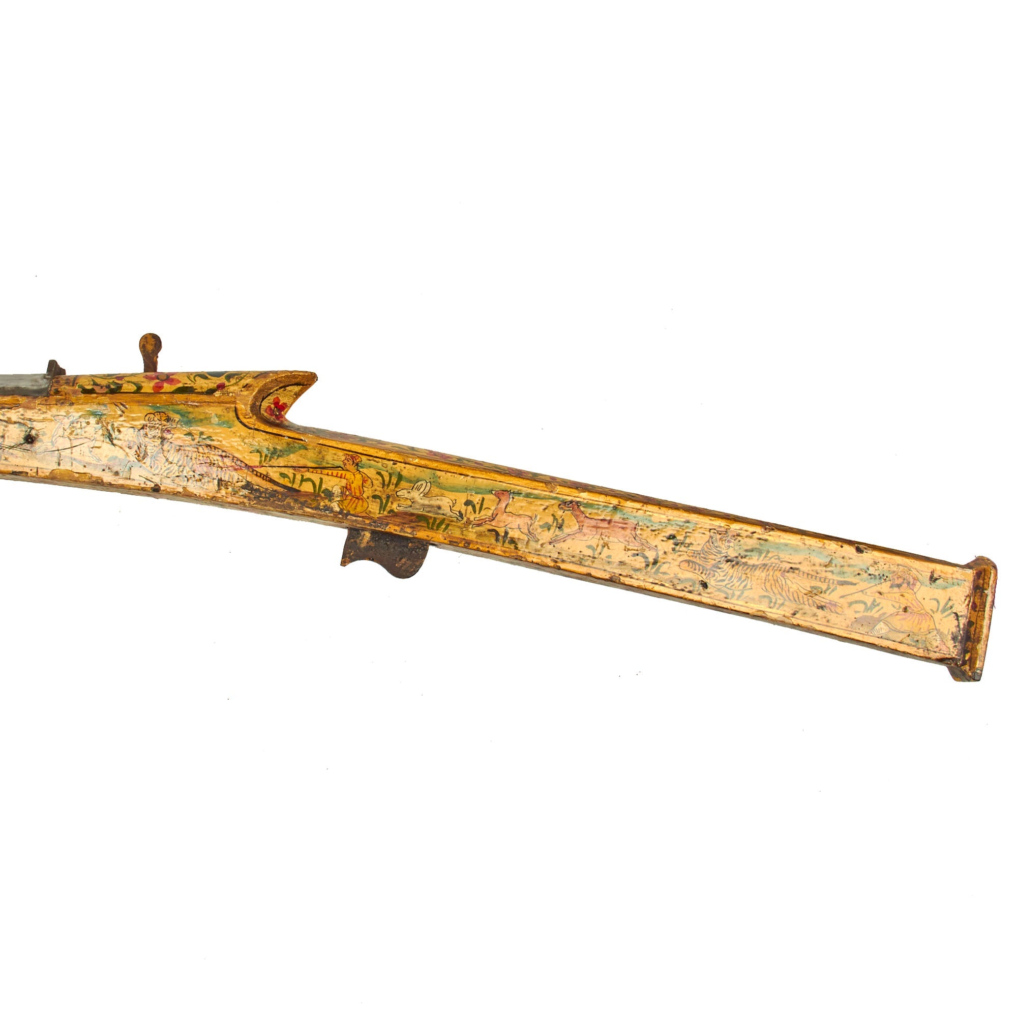 Original Item: One of a Kind. This is extraordinary, a fantastic Indian matchlock "TORADOR" musket, hand painted top to bottom with Tiger hunting scenes and other ornate designs. This almost certainly came from JODHPUR or JAIPUR, both legendary cities of the Rajasthan region of India. The name literally means “Land of Kings”, and this region in Northern India is full of magnificent palaces and other ornate locations, such as the Amber / Amer Fort (Palace) outside of Jaipur.