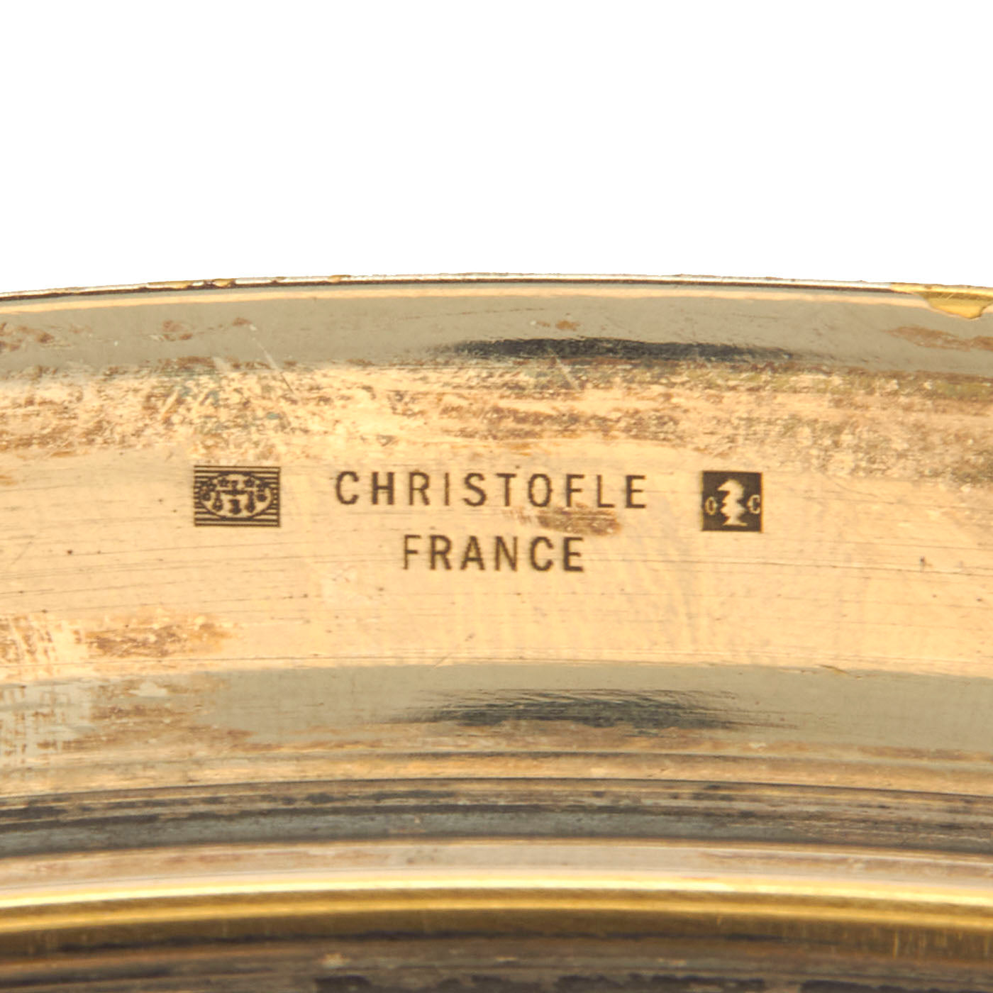 The bottom edge of the tray has Christofle's stamping and hallmarks, which read: