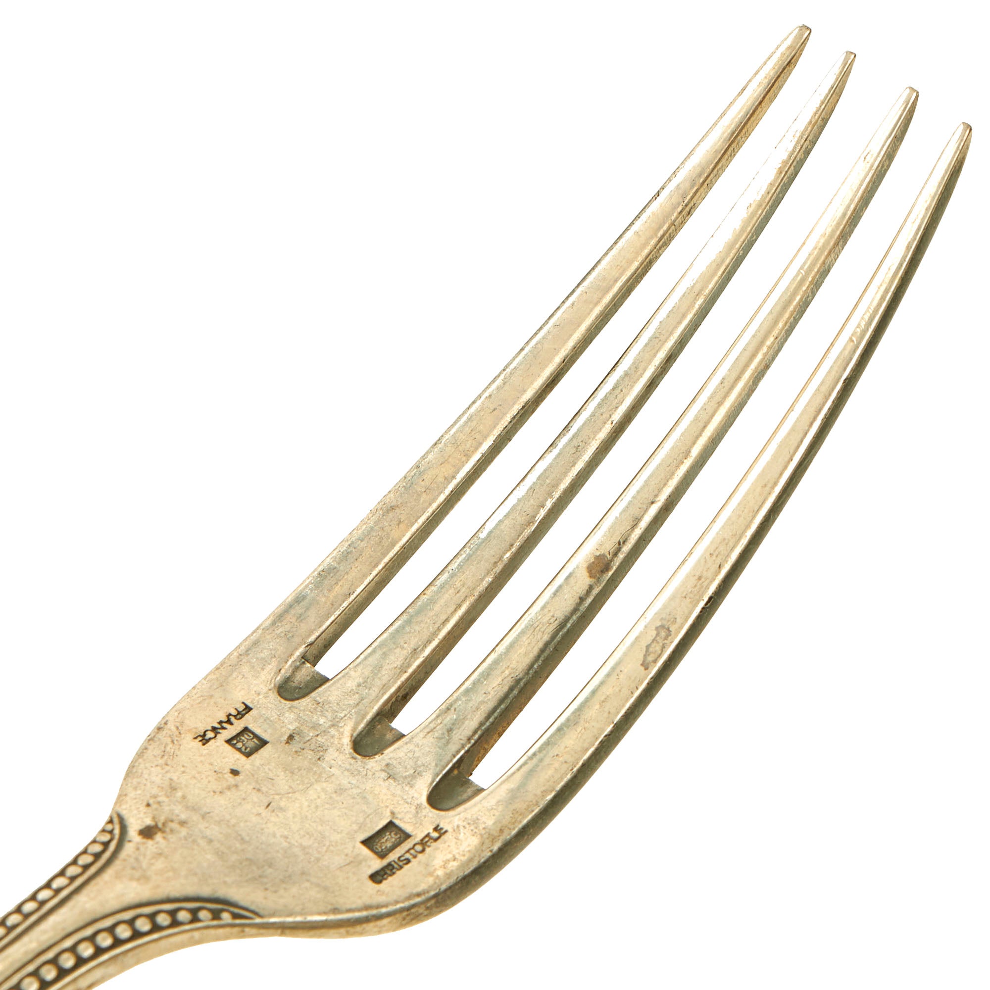 The bottom root of the forks have Christofles stamping and hallmarks. The stampings read: