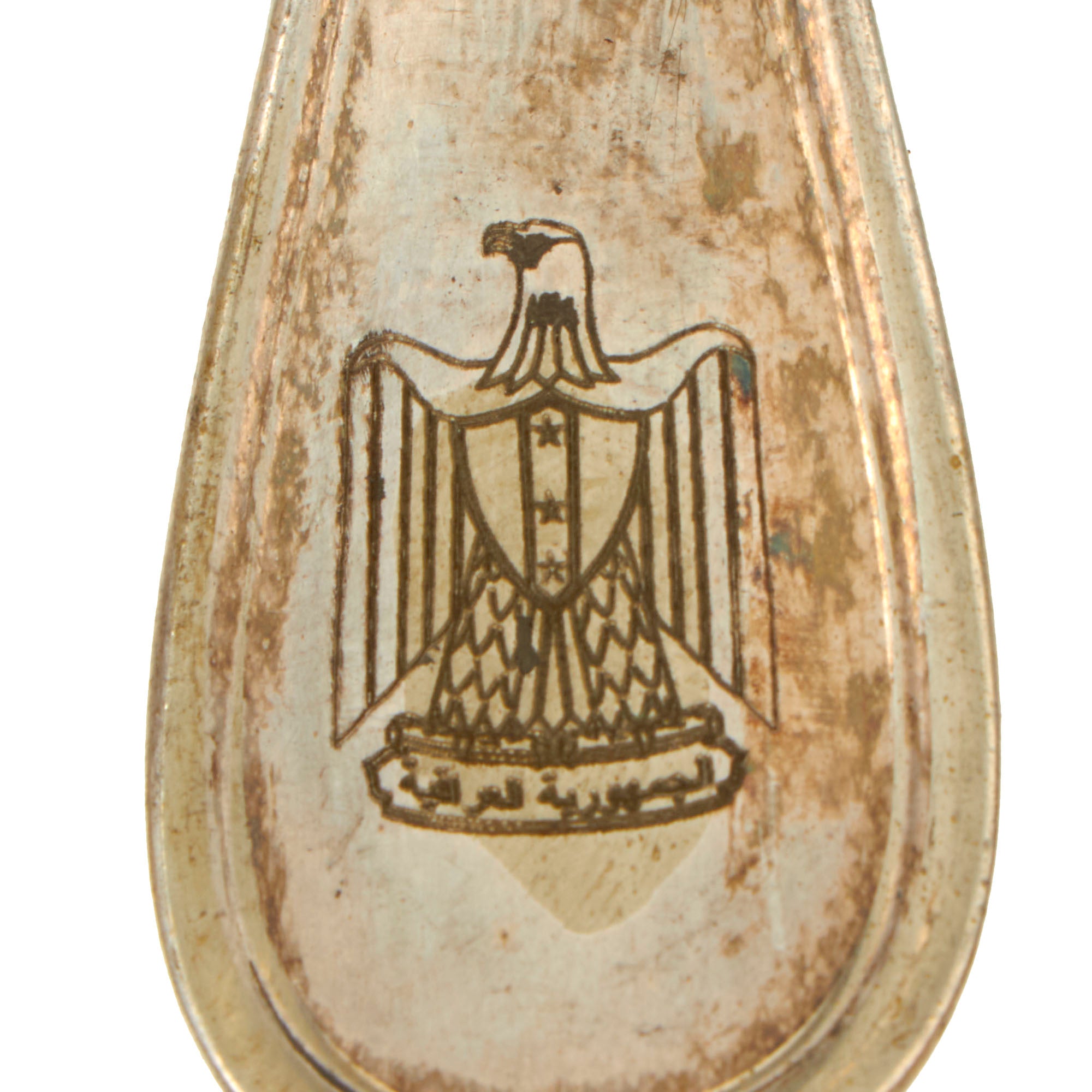 Original Item: Only One Available. During the invasion of Iraq in 2003, U.S. soldiers captured and occupied Saddam Hussein's palaces. Much of the State Silver was taken by soldiers as "spoils of war" and brought back to the United States. However, some of it remained in Iraq, some was later returned, and those pieces were auctioned off by the Iraqi government many years later.