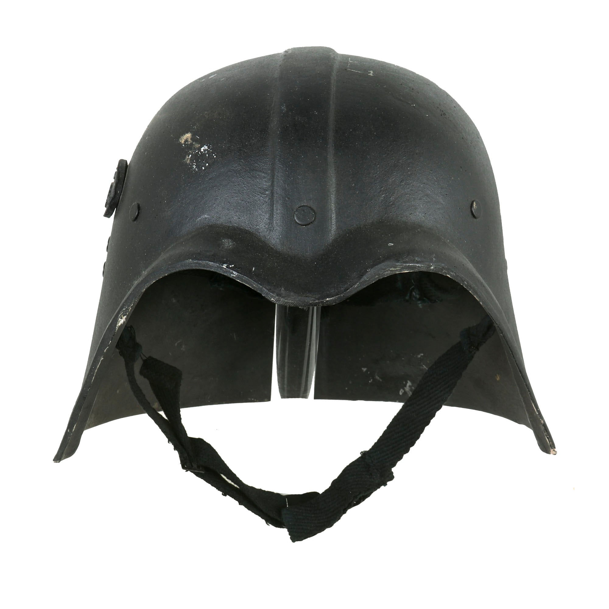 These helmets were issued to members of the Fedayeen Saddam elite fighting force between 1995 and 2003 in Iraq. The unit was commanded by Saddam's son Uday, who was - legend has it - a massive Star Wars fan. Which is why their uniform was all black (no capes, sadly) and the helmets were clearly modeled on Darth Vader's, despite them being next to no use on the battlefield.
