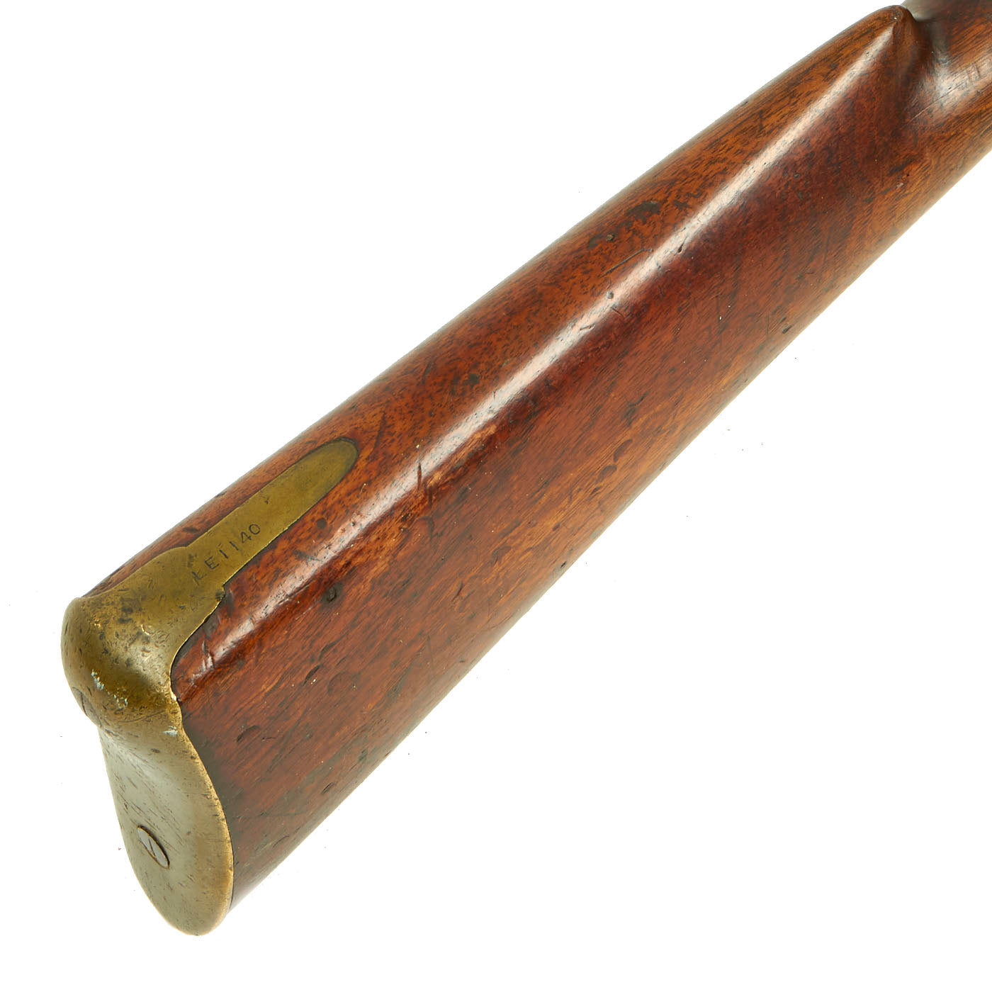 The Butt plate tang is correctly bearing the Irish Government marking of LE 1140, required by the Irish registration Act of 1843. Weapons all had to be taken to the local constabulary and registered, and were marked with two letters for the district / county, followed by a number. "LE" is the code for Leitrim county in north west Ireland. This was realized to be mostly a waste of time and lasted only until August 1846, which really helps set the timeframe for this carbine.