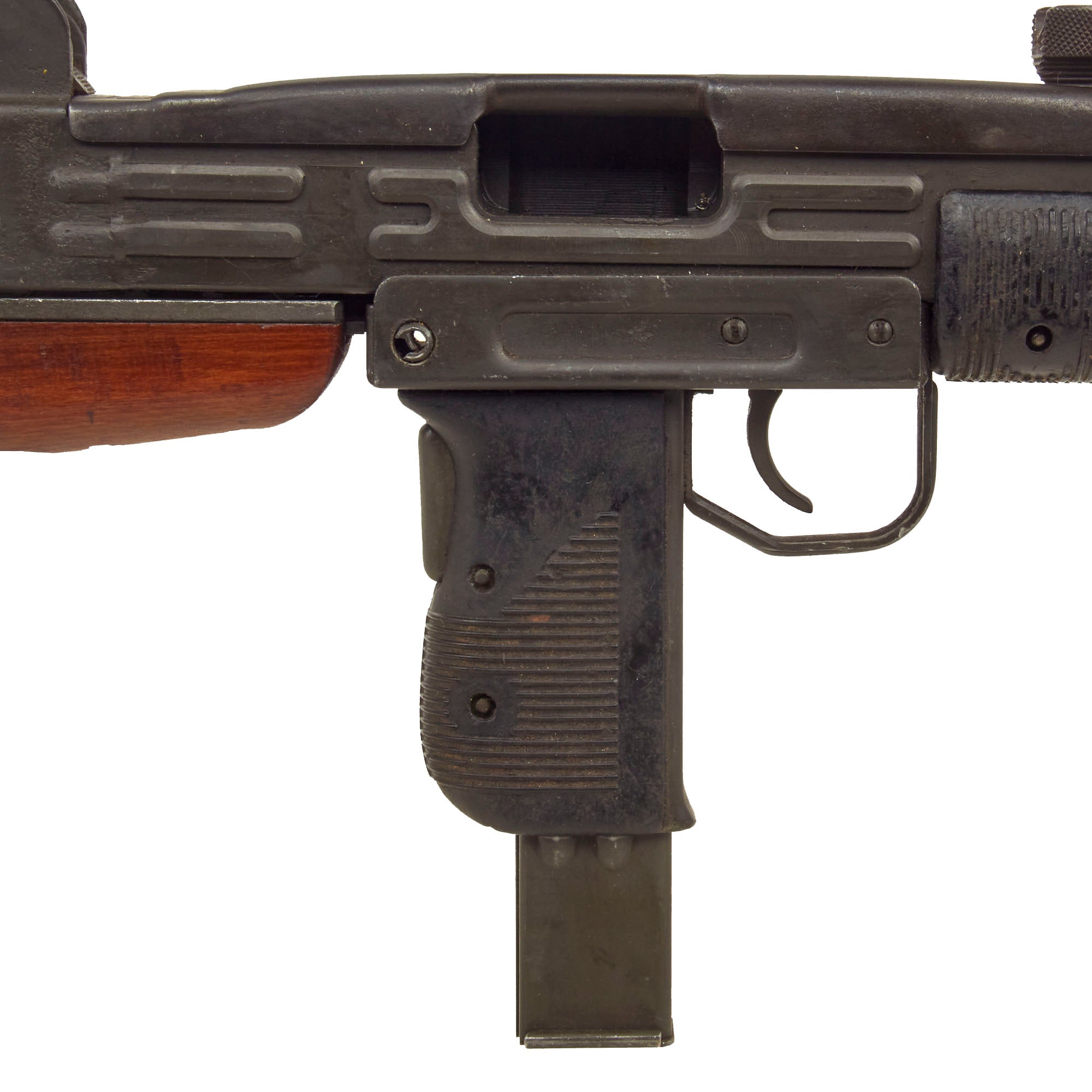 Original Item: Only One Available. IMA is proud to offer this original IMI manufactured UZI display gun constructed of original parts built into non-firing Dummy gun on our all steel BATF compliant new made non-firing dummy receiver. The ends of the receiver are original but the center 8 inches are totally newly manufactured.