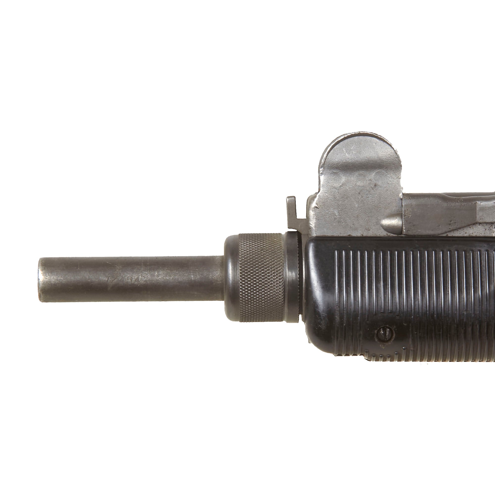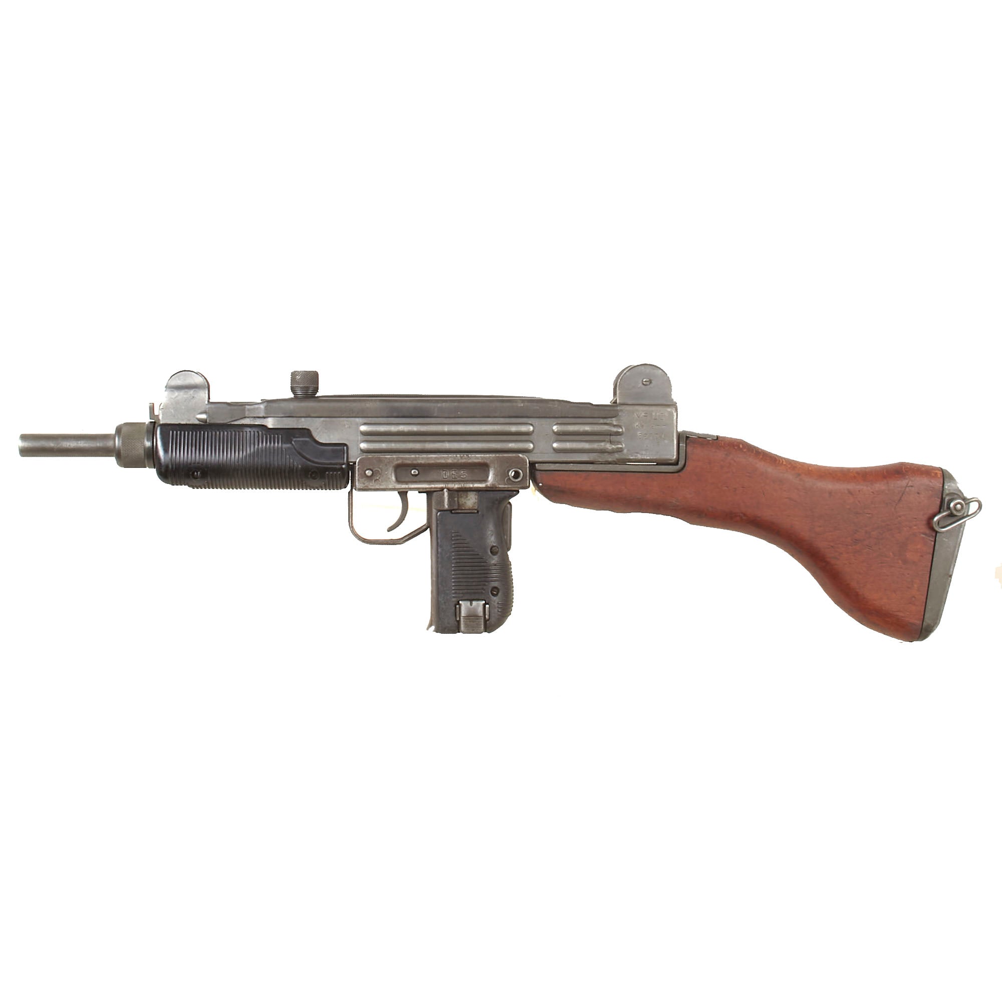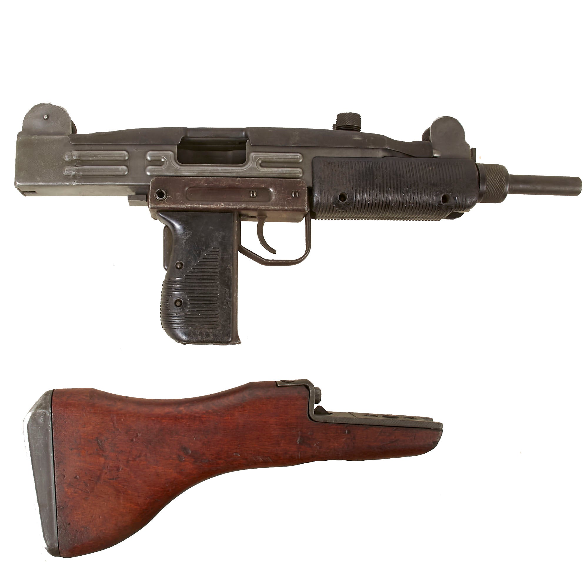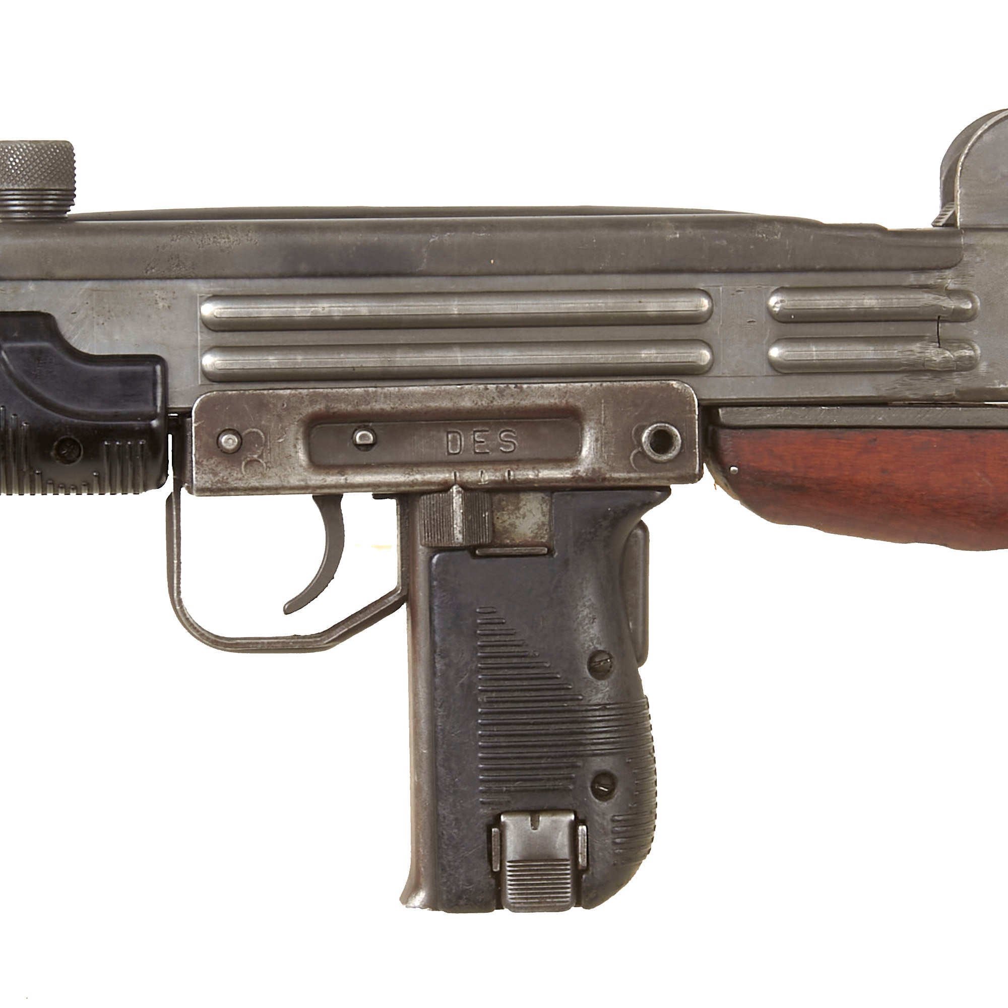 Original Item: Only One Available. IMA is proud to offer this original IMI manufactured UZI display gun constructed of original parts built into a non-firing Dummy gun on our all steel BATF compliant non-firing dummy receiver. The ends of the receiver are original but the center 8 inches are totally newly manufactured, and areas are made with solid bar stock as required. The barrel is only a 4 inch section, held in place by the barrel bushing. Meaning over 50% of the total length of the receiver has been replaced, making this totally legal to own without a license of any kind. Every part on this display gun is original 1960s manufacture other than the receiver as required by BATF.