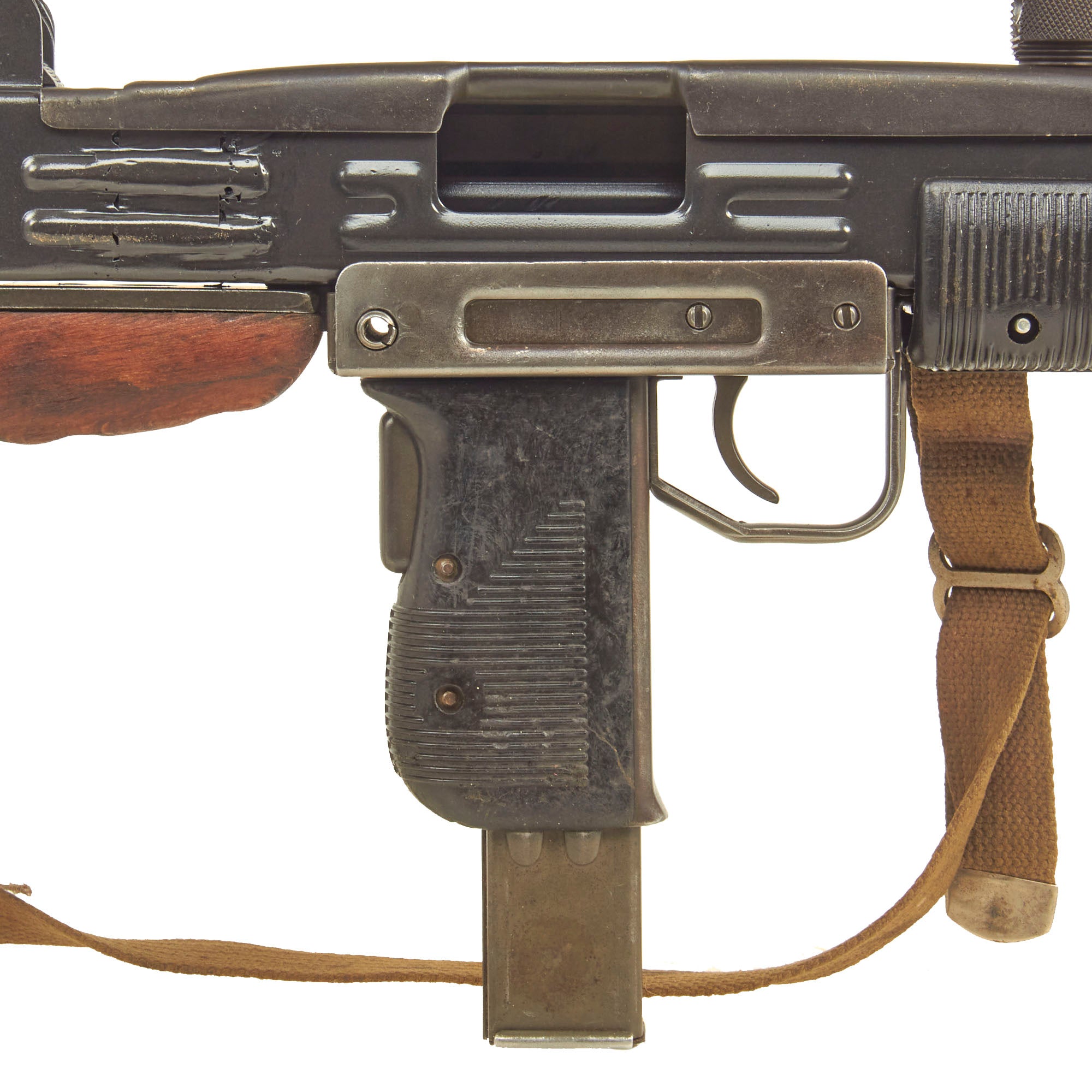 Original Item: Only One Available. IMA is proud to offer this original IMI manufactured UZI display gun constructed of original parts built into non-firing Dummy gun on our all steel BATF compliant new made non-firing dummy receiver. The ends of the receiver are original but the center 8 inches are totally newly manufactured, and areas are made with solid bar stock as required. The barrel is only a 4 inch section, held in place by the barrel bushing.