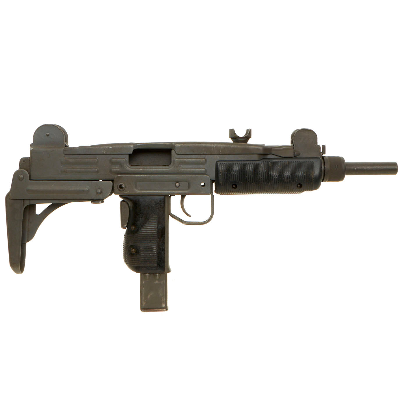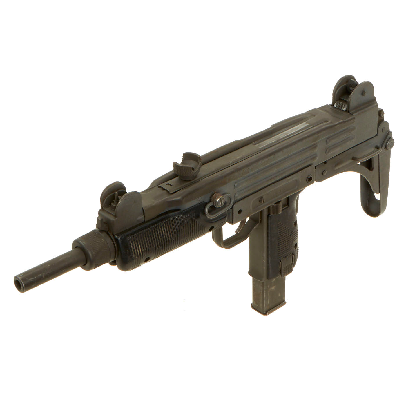 Original Item: Only One Available. The Uzi is an open bolt, blowback-operated submachine gun. Smaller variants are considered to be machine pistols. The Uzi was one of the first weapons to use a telescoping bolt design which allows for the magazine to be housed in the pistol grip for a shorter weapon, a design not seen since the Japanese Type II machine pistol.