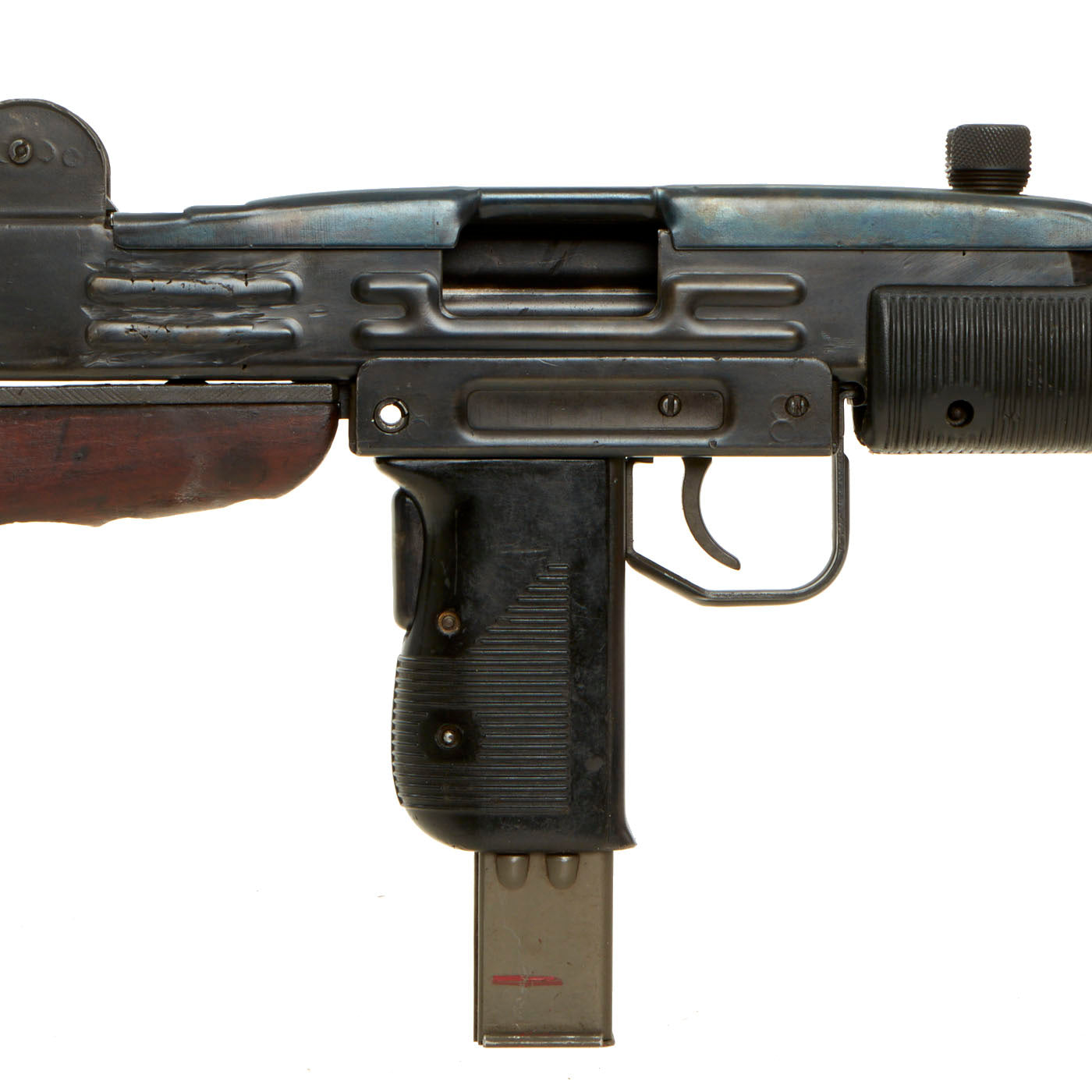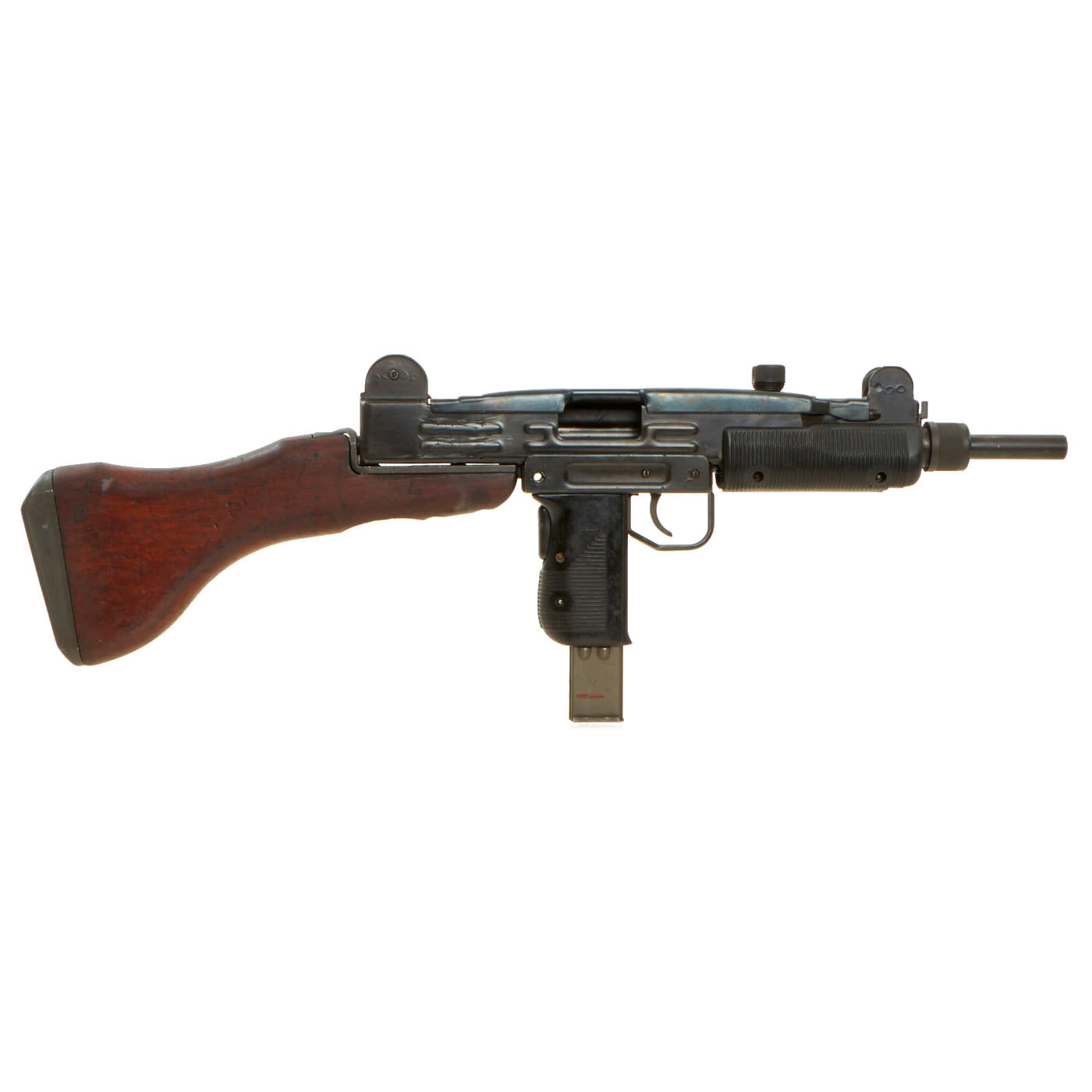 Original Item: Only One Available. The Uzi is an open bolt, blowback-operated submachine gun. Smaller variants are considered to be machine pistols. The Uzi was one of the first weapons to use a telescoping bolt design which allows for the magazine to be housed in the pistol grip for a shorter weapon, a design not seen since the Japanese Type II machine pistol.