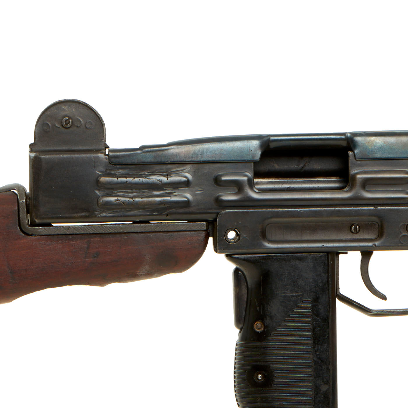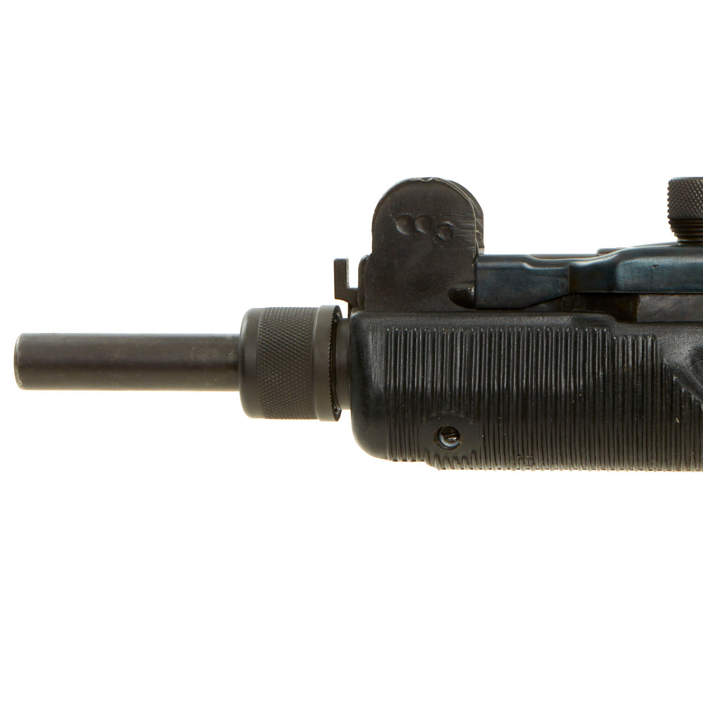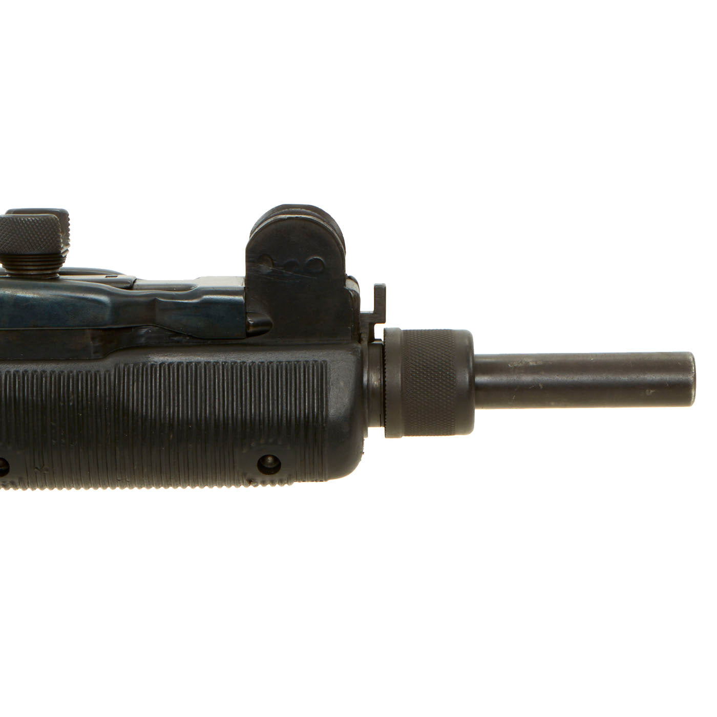IMA is proud to offer this original IMI manufactured UZI display gun constructed of original parts built into non-firing Dummy gun on our all steel BATF approved new made non-firing dummy receiver. The ends of the receiver are original but the center 8 inches are totally newly manufactured.