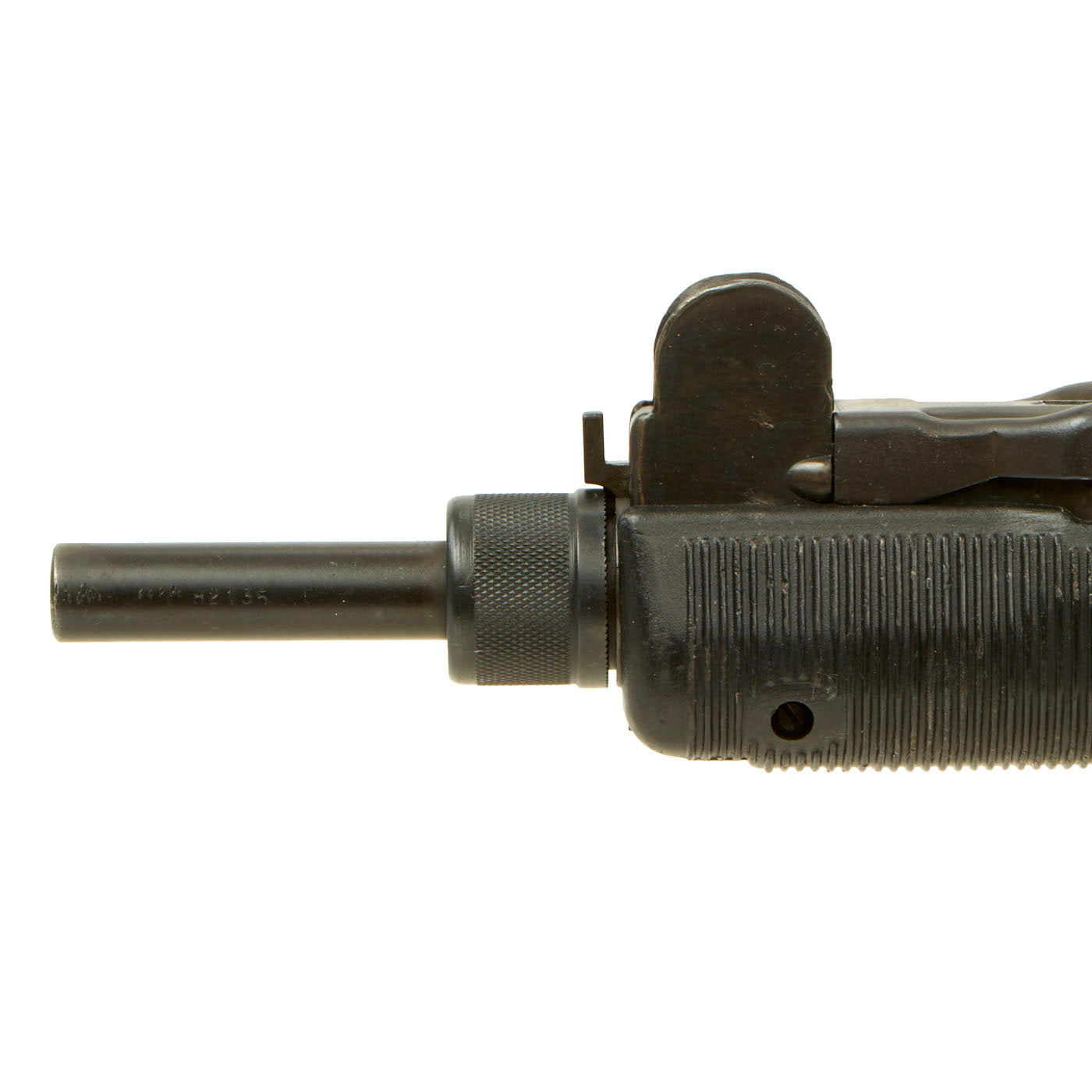 IMA is proud to offer this original IMI manufactured UZI display gun constructed of original parts built into non-firing Dummy gun on our all steel BATF approved new made non-firing dummy receiver. The ends of the receiver are original but the center 8 inches are totally newly manufactured. The original markings are still present on the receiver rear: