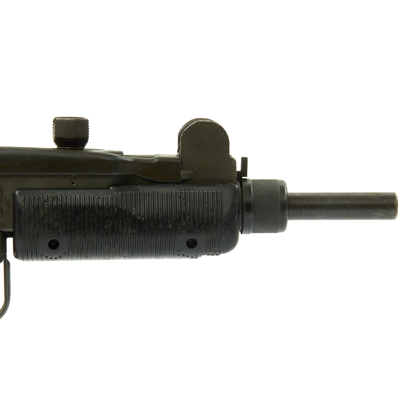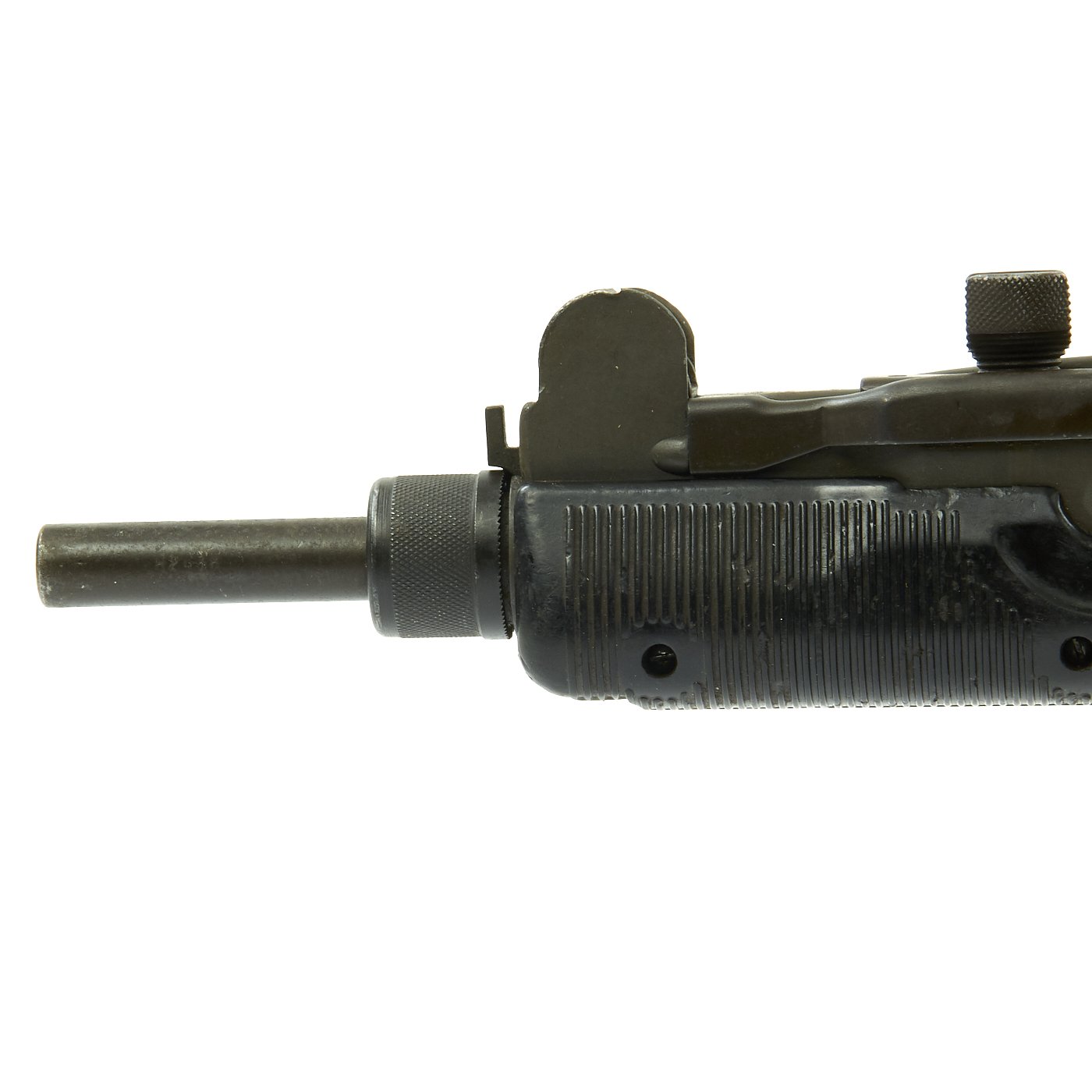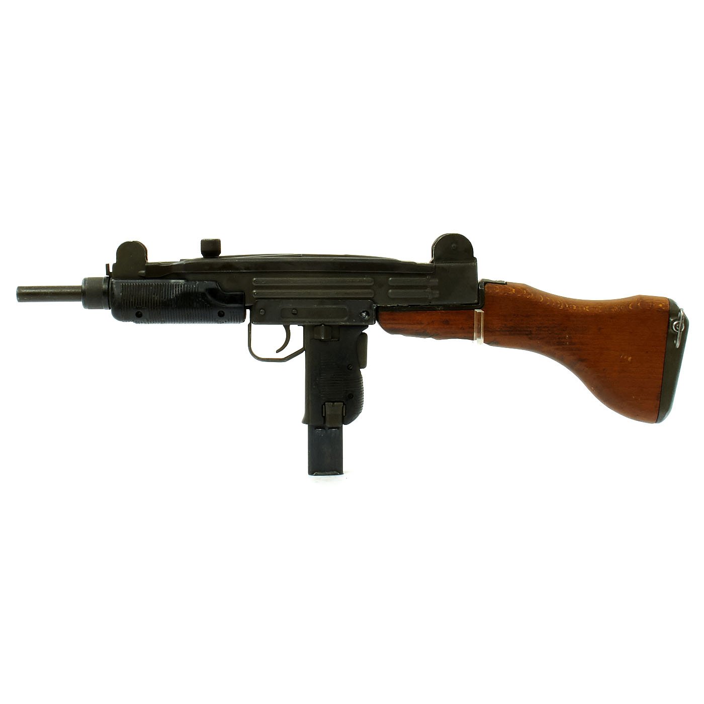 IMA is proud to offer this original IMI manufactured UZI display gun constructed of original parts built into non-firing Dummy gun on our all steel BATF approved new made non-firing dummy receiver. The ends of the receiver are original but the center 8 inches are totally newly manufactured. Complete with detachable wood shoulder stock and magazine.