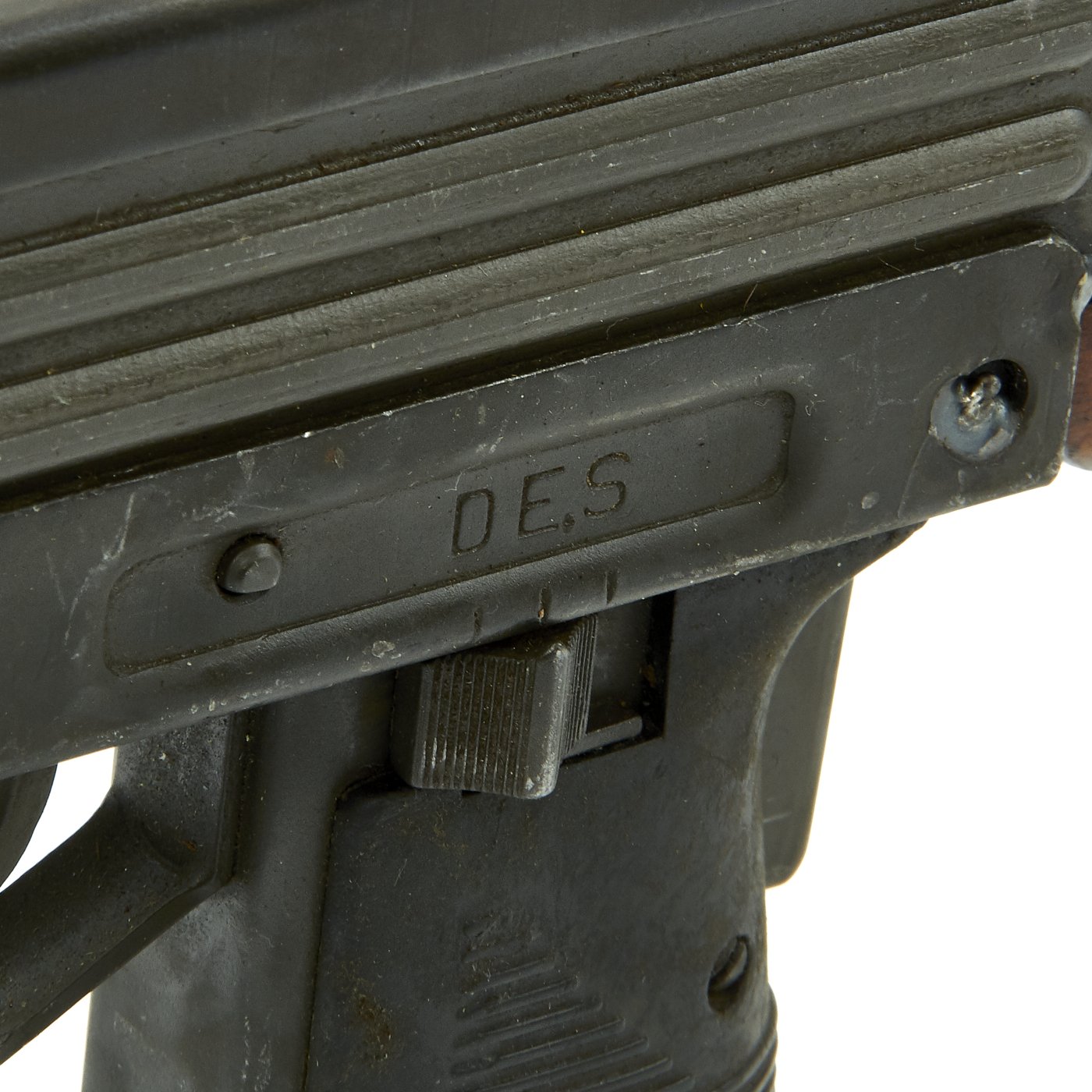 Original Item: Only One Available. The Uzi is an open bolt, blowback-operated submachine gun. Smaller variants are considered to be machine pistols. The Uzi was one of the first weapons to use a telescoping bolt design which allows for the magazine to be housed in the pistol grip for a shorter weapon, a design not seen since the Japanese Type II machine pistol. The first Uzi submachine gun was designed by Major Uziel Gal in the late 1940s. The prototype was finished in 1950; first introduced to IDF special forces in 1954, the weapon was placed into general issue two years later. The Uzi has found use as a personal defense weapon by rear-echelon troops, officers, artillery troops and tankers, as well as a front line weapon by elite light infantry assault forces.