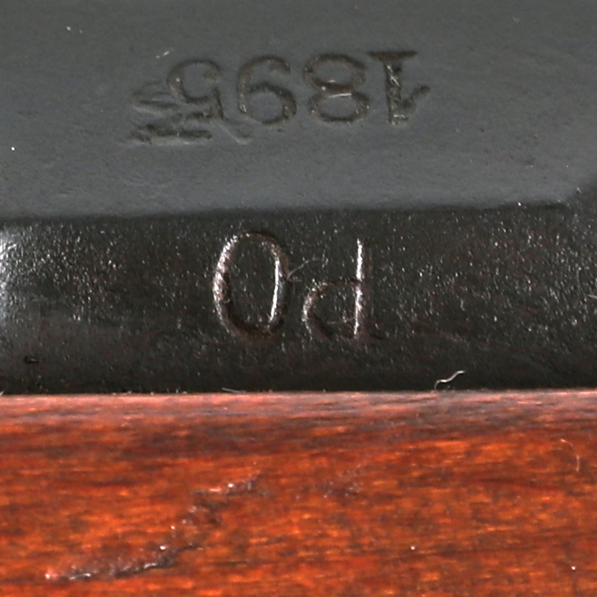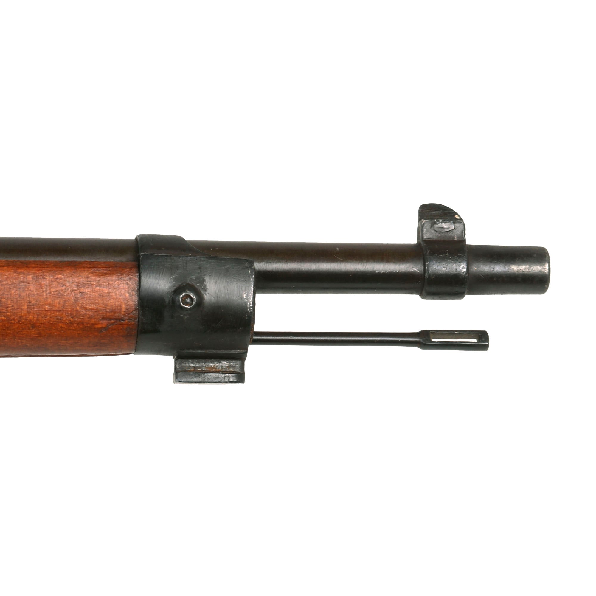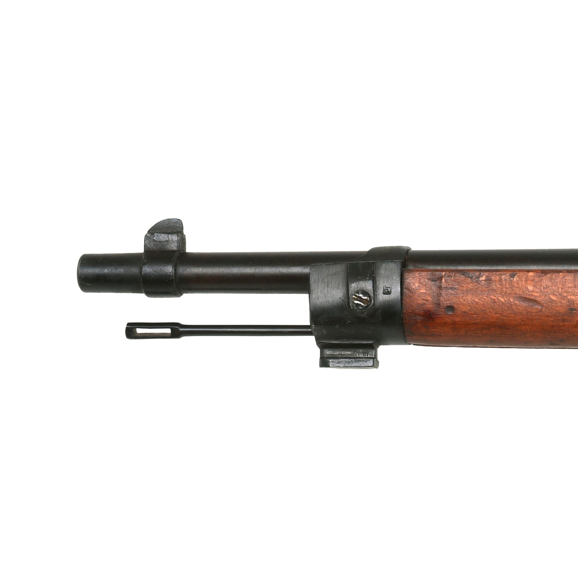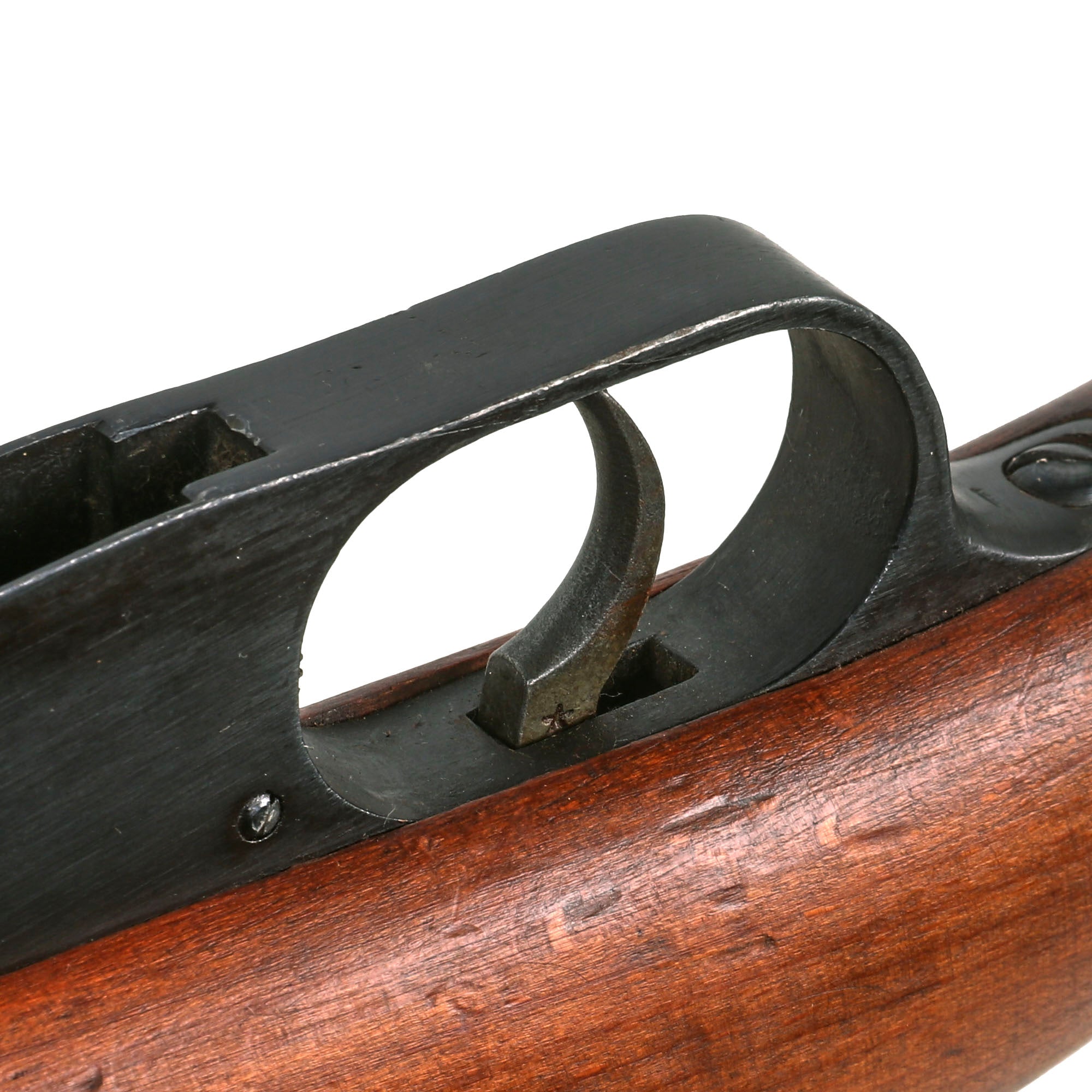 This is a fine example of the earliest version of the Carcano Rifle, the Fucile di Fanteria Modello 1891 (infantry rifle Model 1891), which used a standard detachable blade bayonet. Later versions would experiment with bayonets that had folding blades, with limited success. The barrel nocks form is marked on the left side with serial number SF 5683 7533, and on the top it is marked TORINO, indicating that the rifle was produced at Turin Arsenal in the mountains of Northwest Italy. The other side of the knoxform is marked with the date of manufacture, 1895.