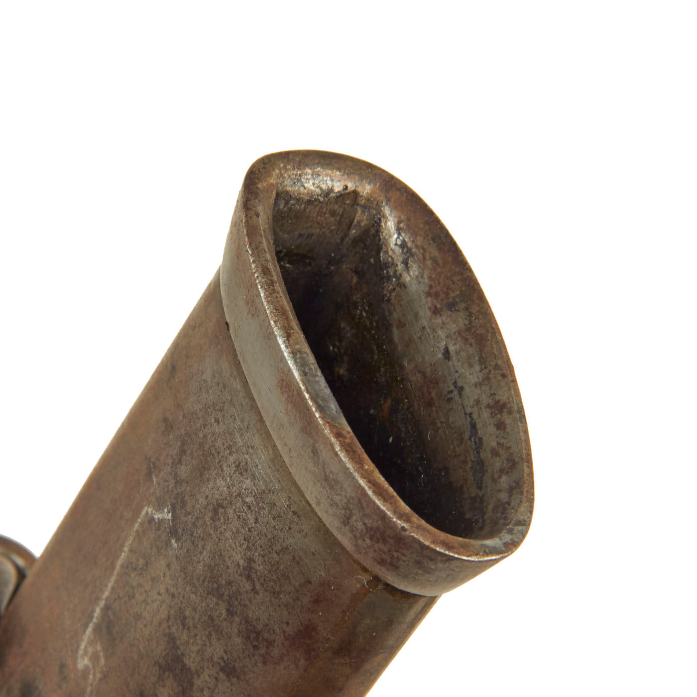 This example is in very good condition and shows little sign of having been used. The blade still has the factory blunt edge, and is in excellent condition, with just a few small dents on the unsharpened edge. The original factory final grind marks are fully visible, and there is just a bit of light staining keeping this blade from being mint.