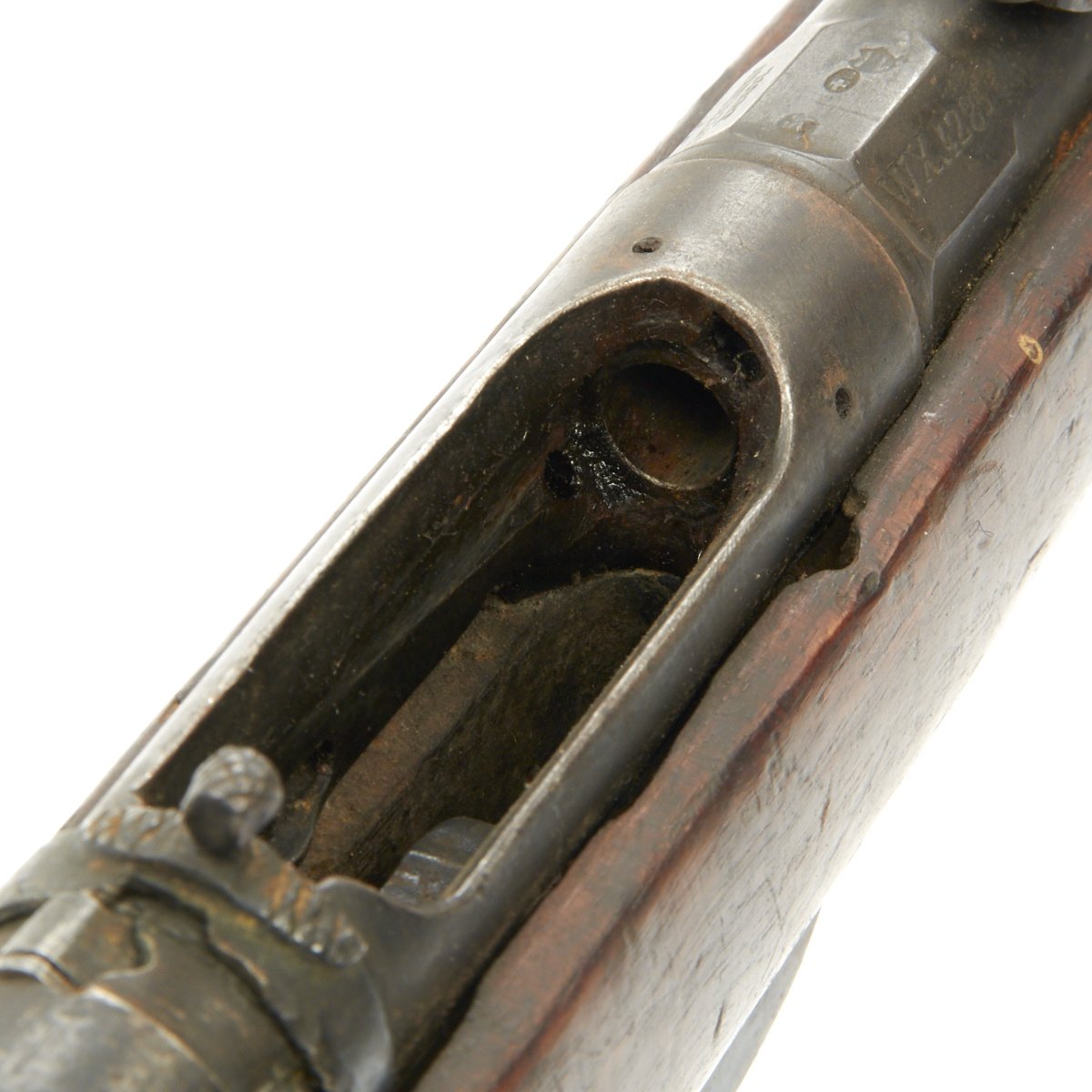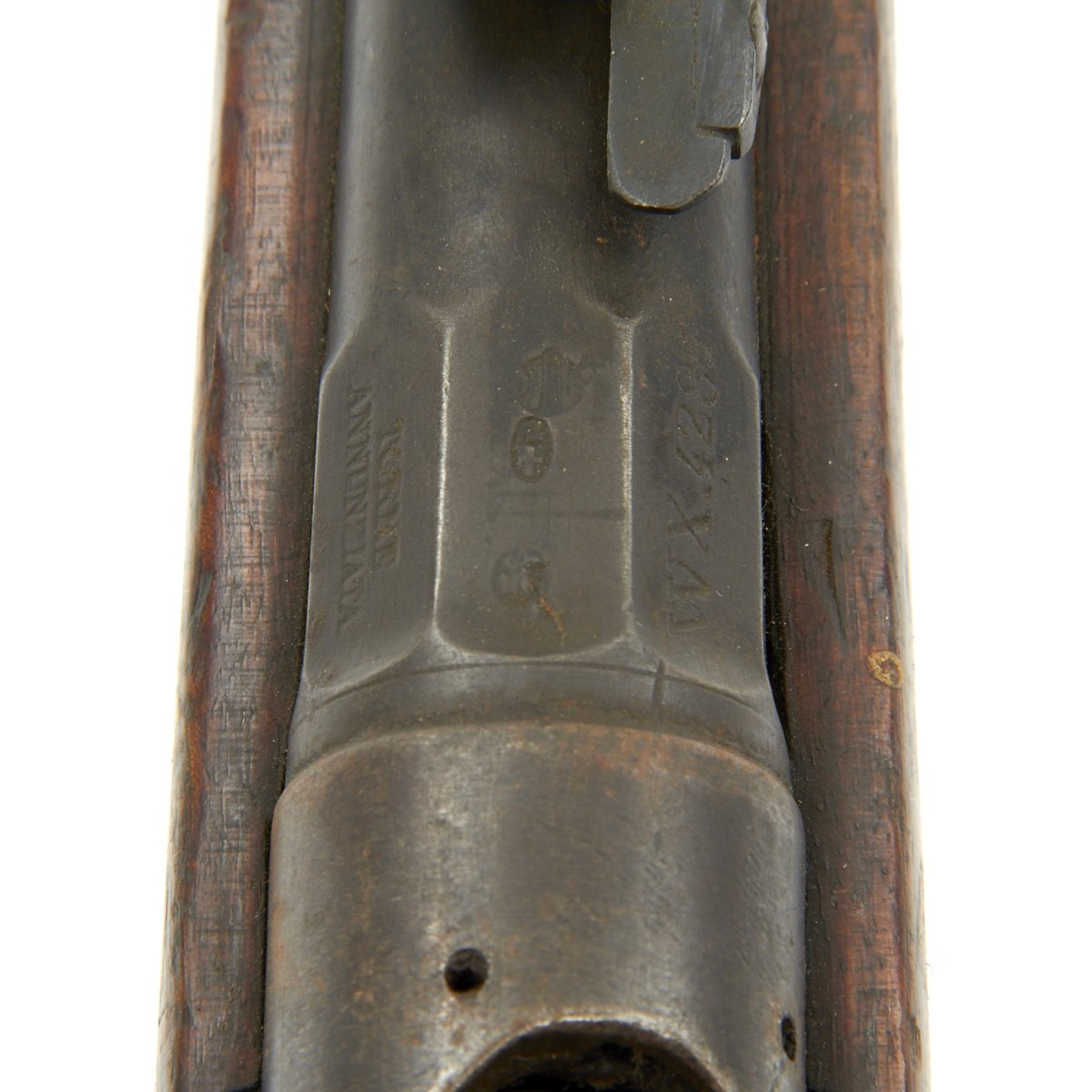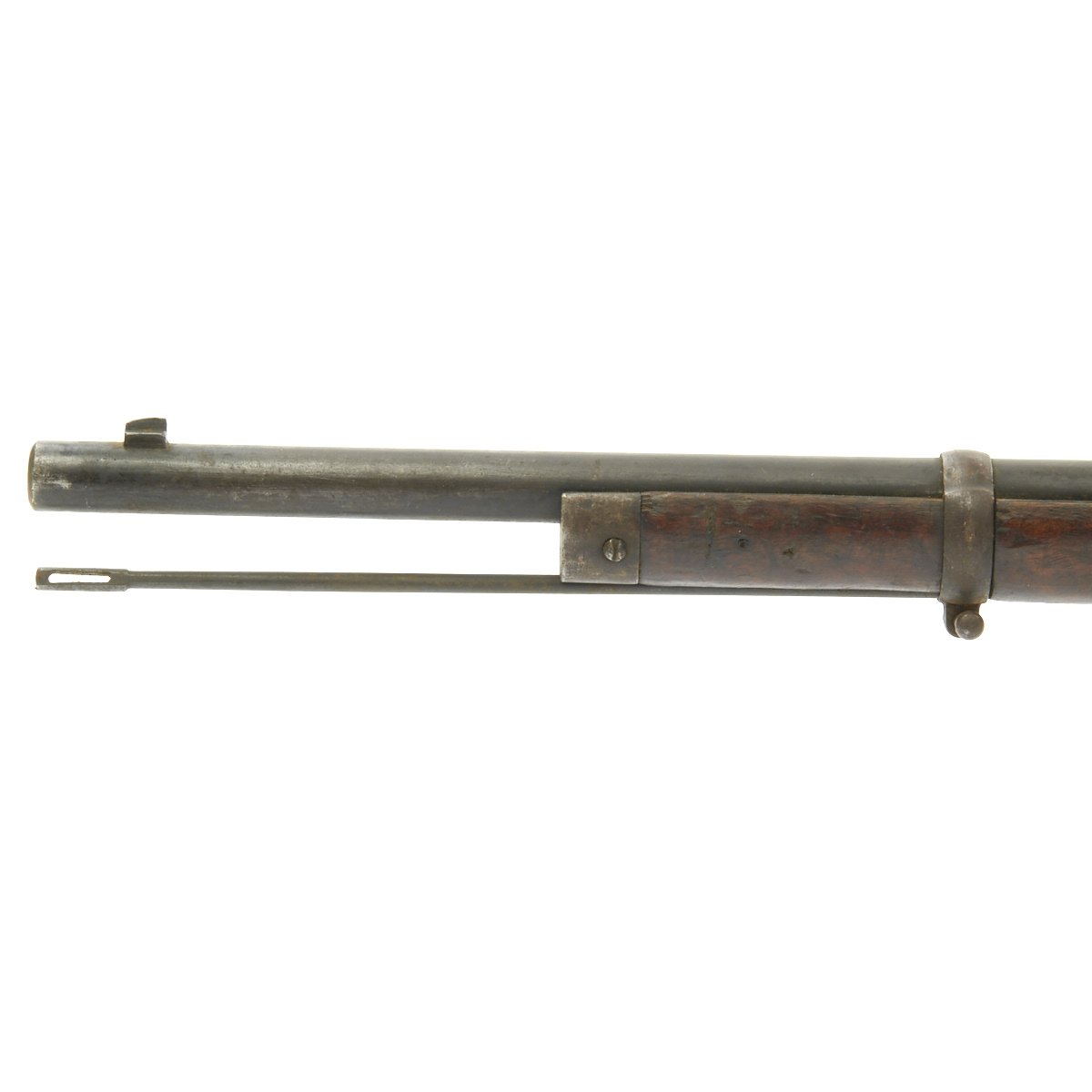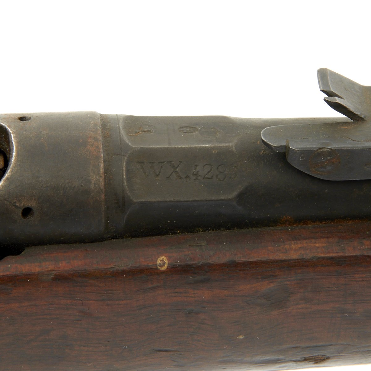This example bears serial number WX.4285 on the barrel and stock, and is offered in very good condition. It is marked TORRE / ANNUNZIATA over an 1882 date on the barrel, indicating manufacture in Naples in 1882. Mechanically in very good condition with a nice bore with clear lands and grooves, with some wear. Stock is in good shape, though it does have some the expected dents and wear from age. It does not appear to have been sanded down at arsenal, so the original markings are visible. Rifle still has the original cleaning rod present, though the upper sling swivel is broken off.
