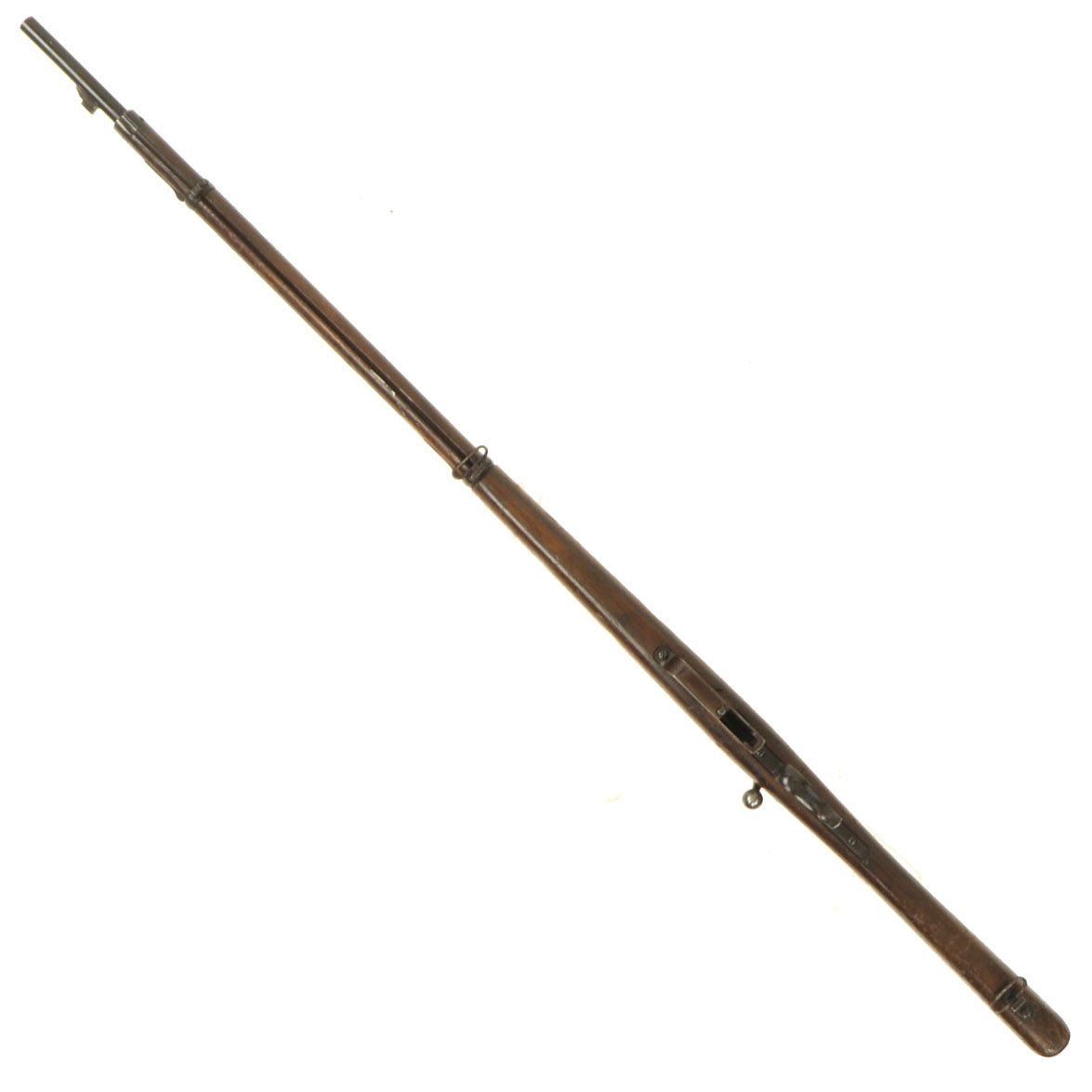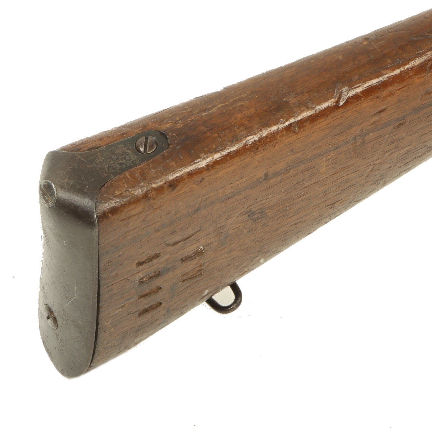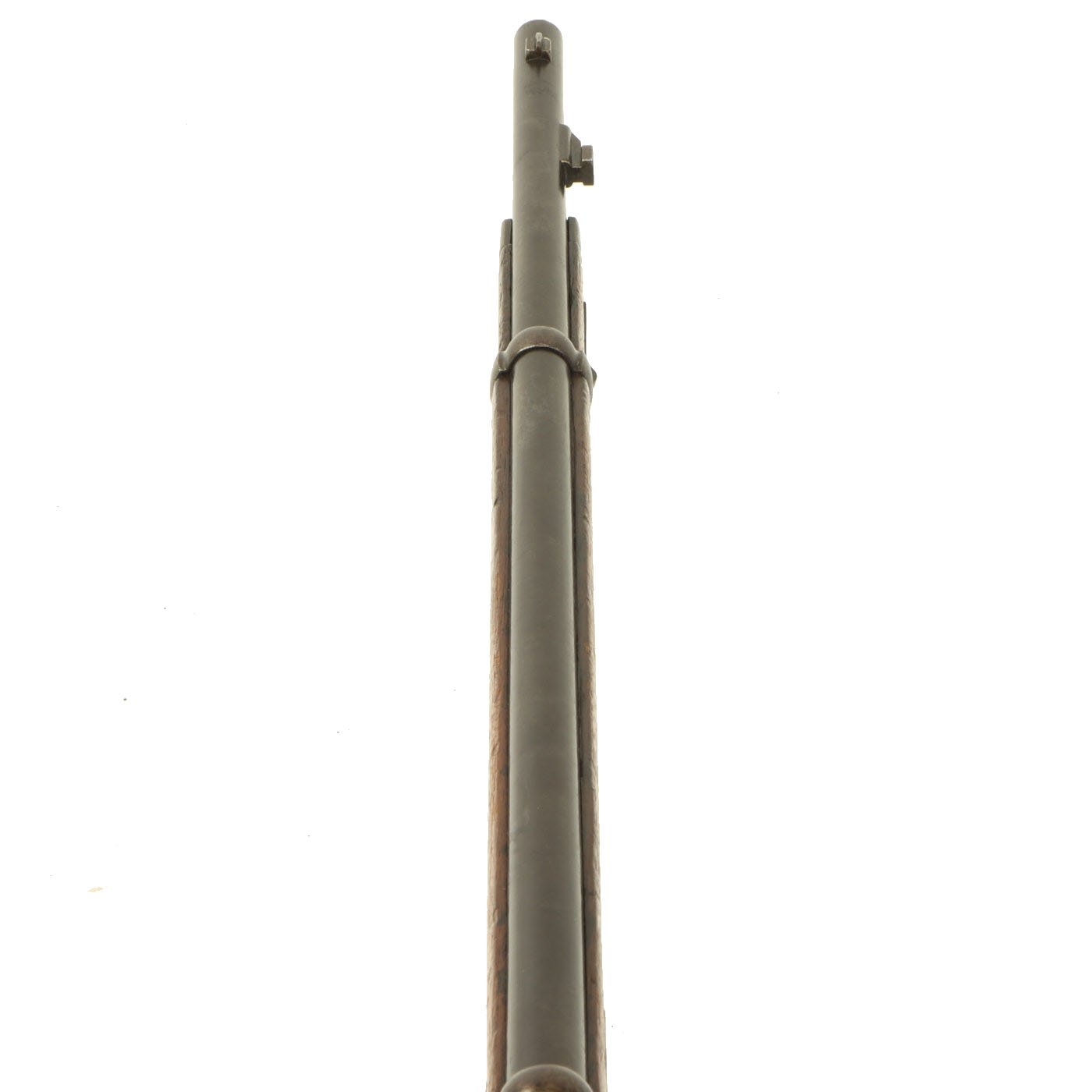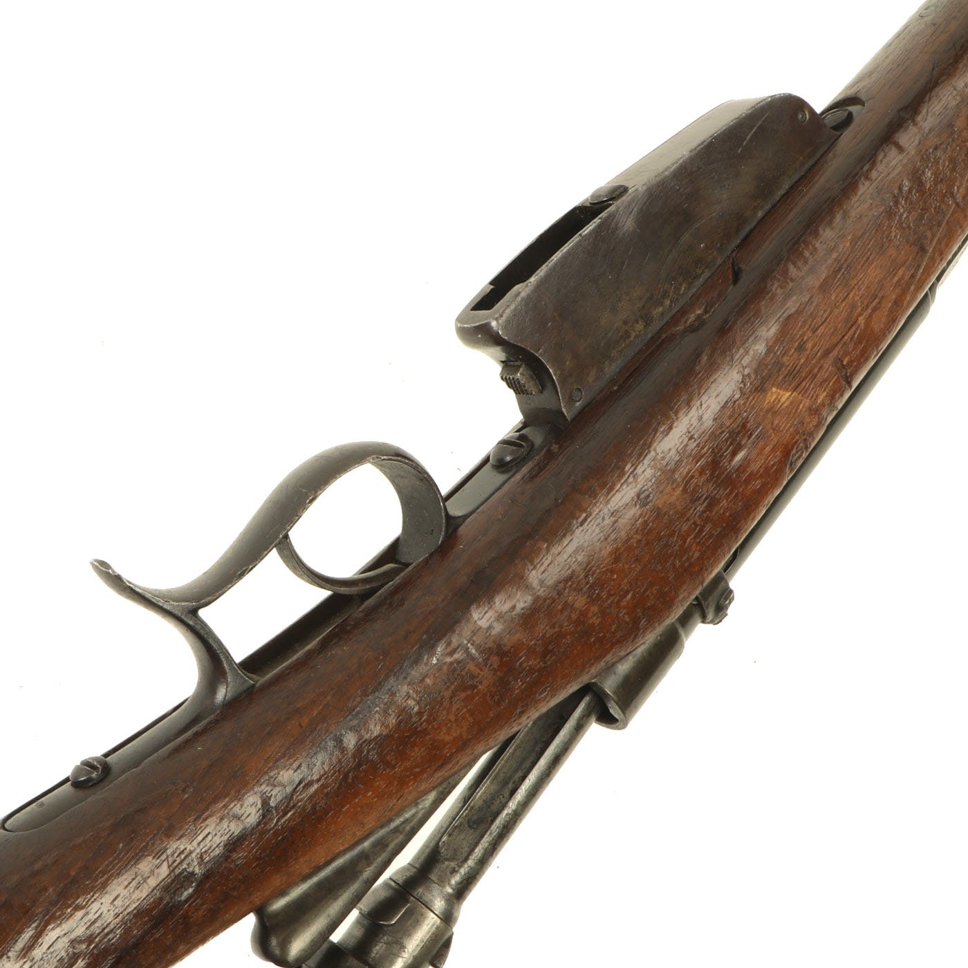 This example bears serial number YW.8238 on the barrel and right butt stock, and is offered in very good condition. It is marked TORRE / ANNUNZIATA over an 1890 date on the barrel, indicating manufacture in Naples in 1890. This is a somewhat rare maker, and most examples we see are made in Turin or Brescia. There is a maker symbol on the top of the nocks form, but it is unfortunately not one that we recognize. As this rifle was made in 1890, it was most likely originally manufactured in the M1870/87 configuration with a magazine. Mechanically in very good condition, this rifle has a good bore with clear lands and grooves, though the grooves are a bit dark. As usual for these rifles, there is a bit of slop with the bolt action, though the bolt handle itself is rather stiff.